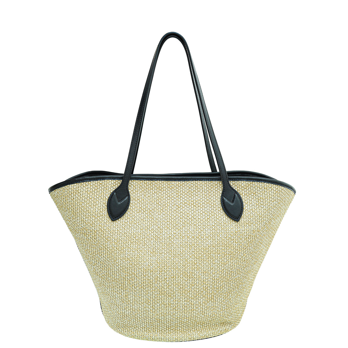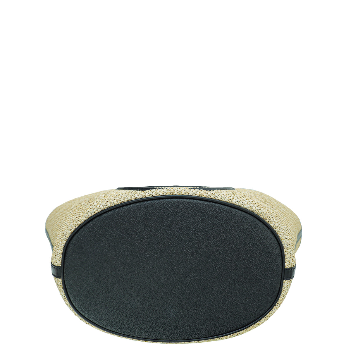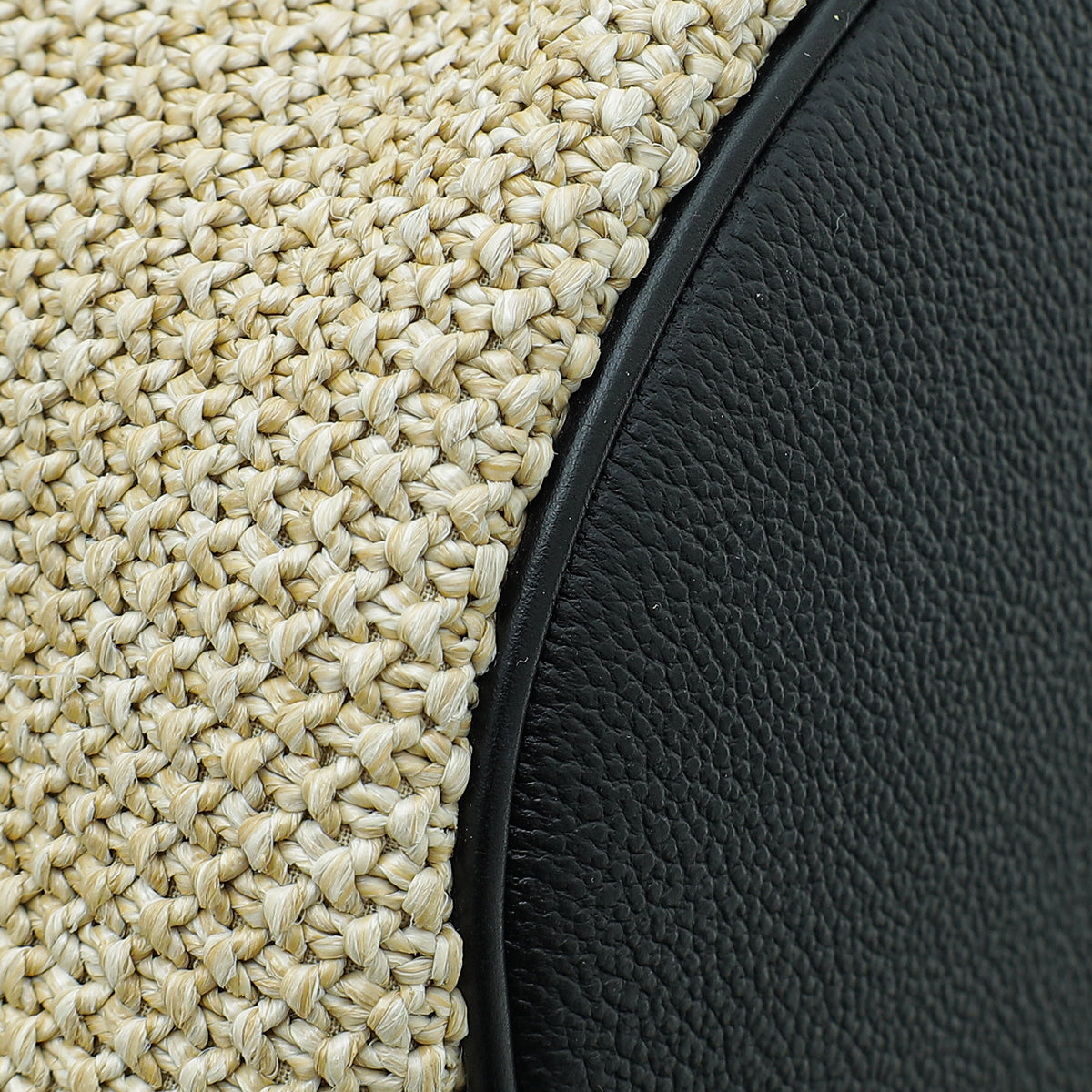 Material: Natural Knitted Raffia with Black Leather Trim