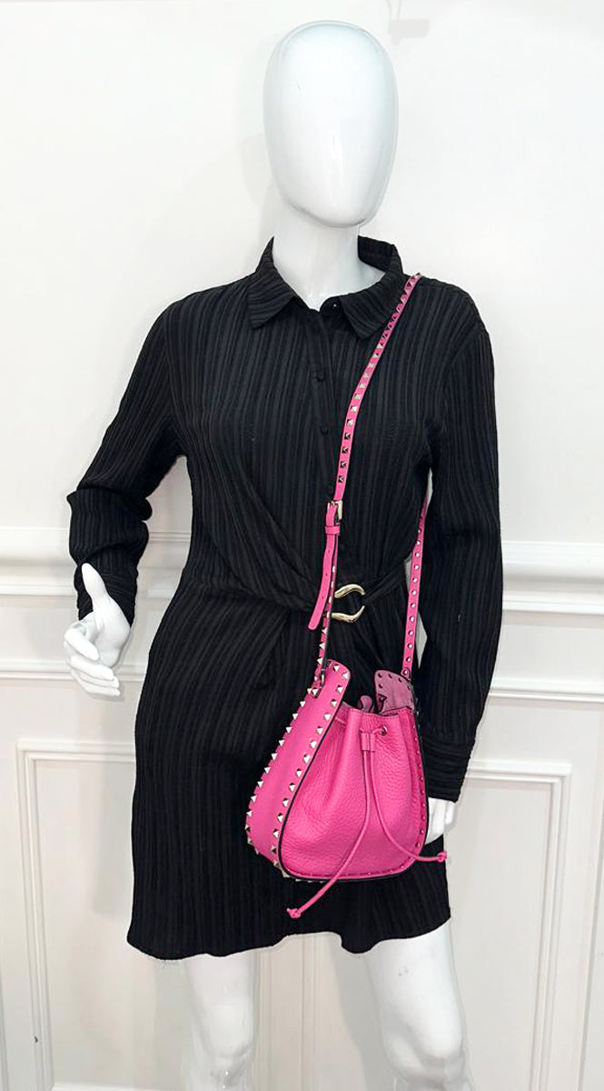 Valentino Fuchsia Rockstud Drawstring Crossbody Bag