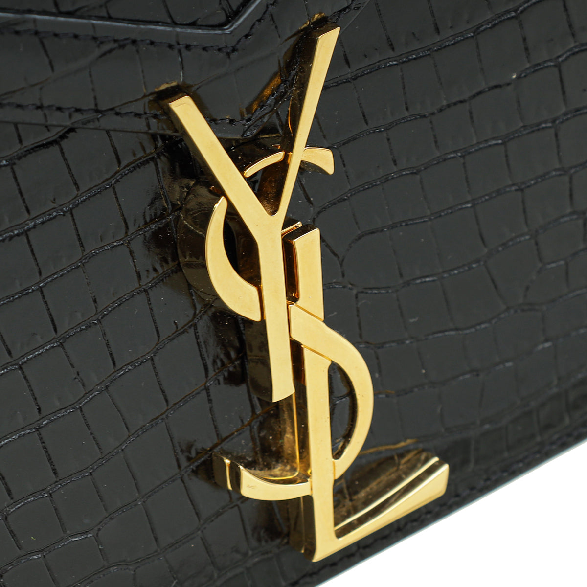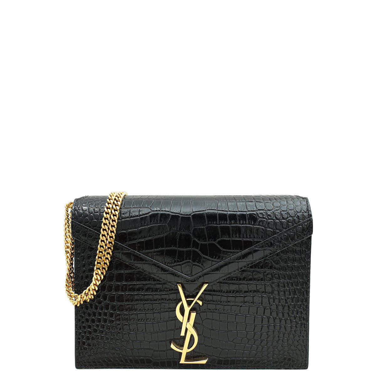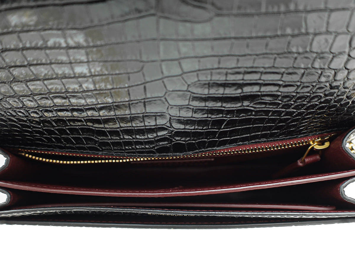 YSL Black Cassandra Clasp Croco Embossed Small Chain Shoulder Bag
