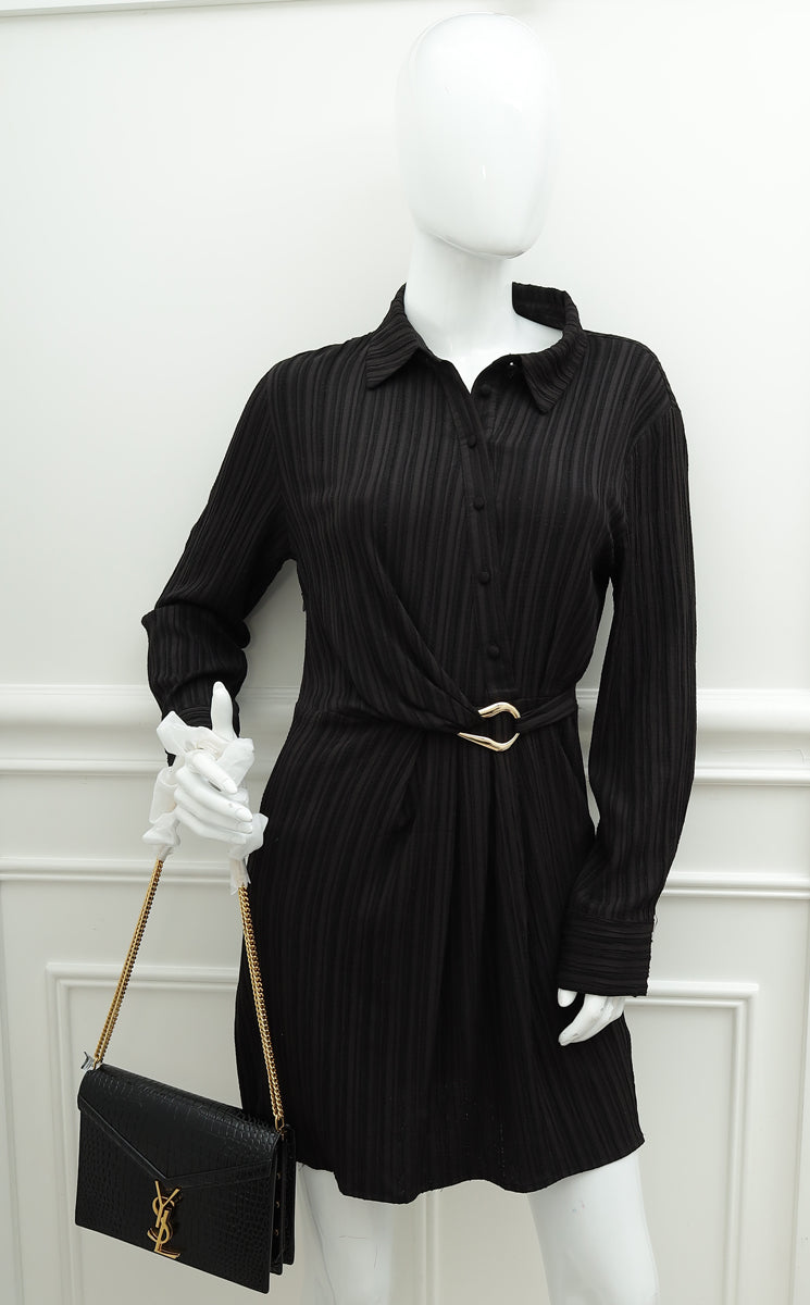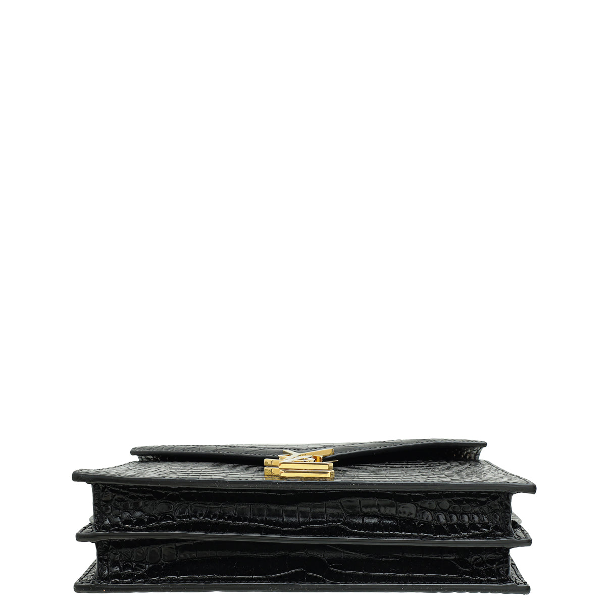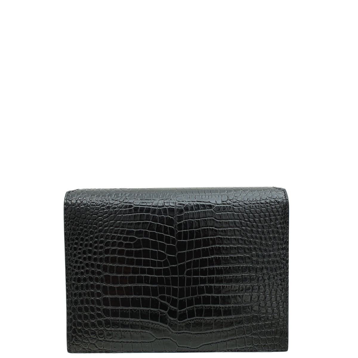 YSL Black Cassandra Clasp Croco Embossed Small Chain Shoulder Bag