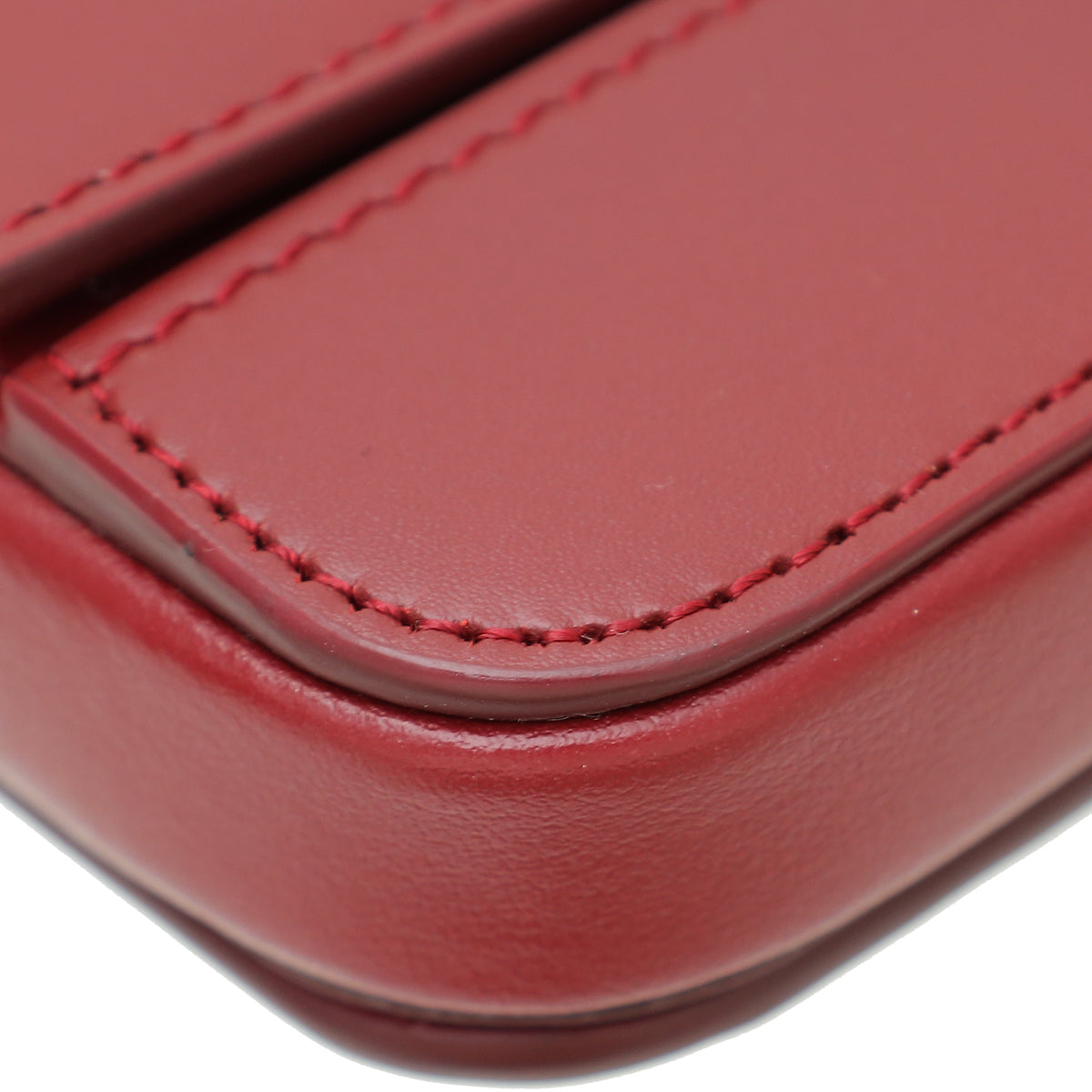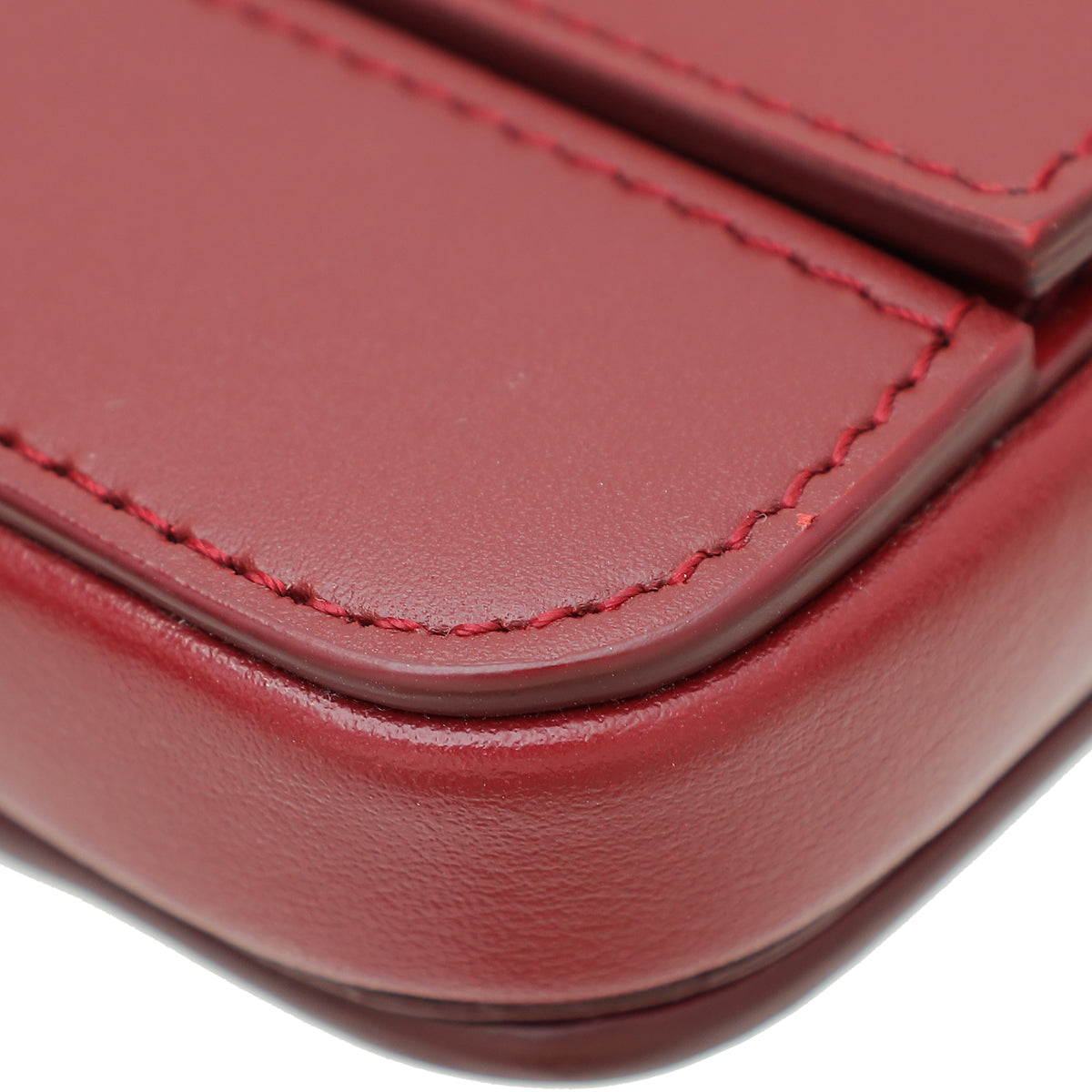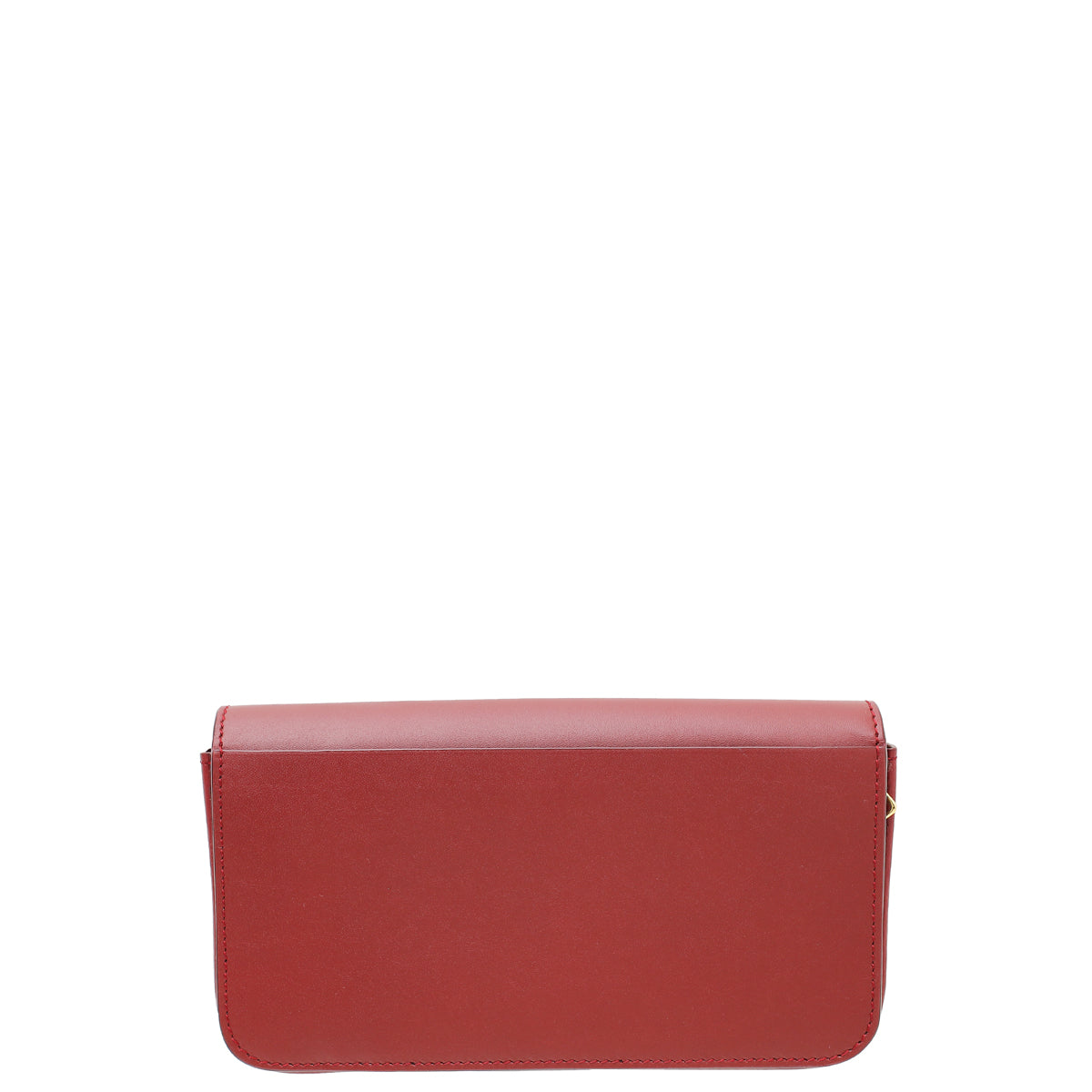 Burberry Burgundy Embossed Logo Wallet on Chain