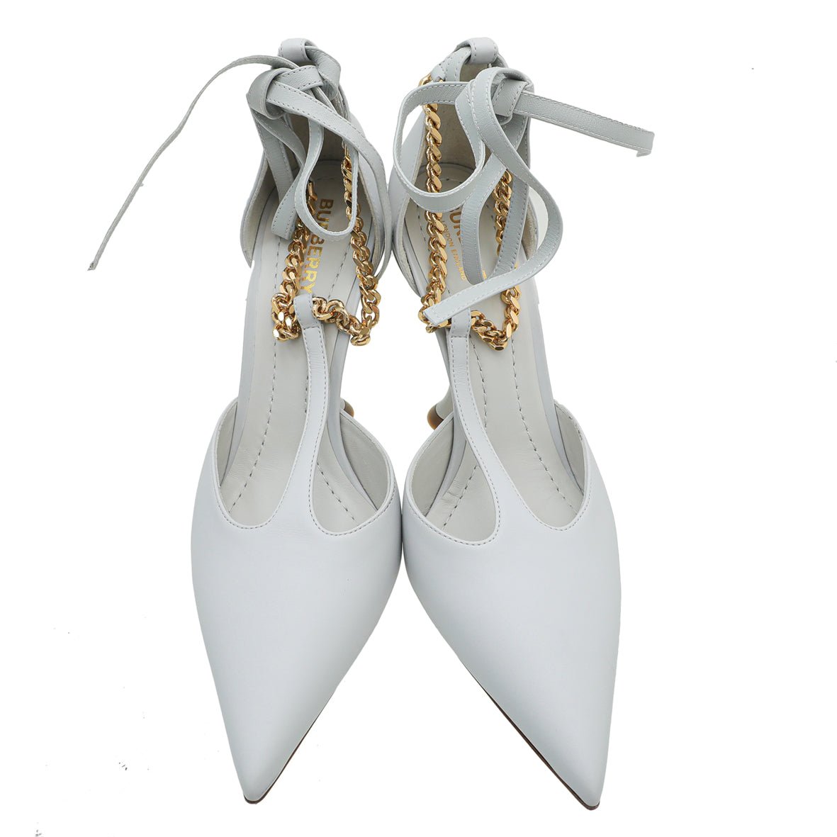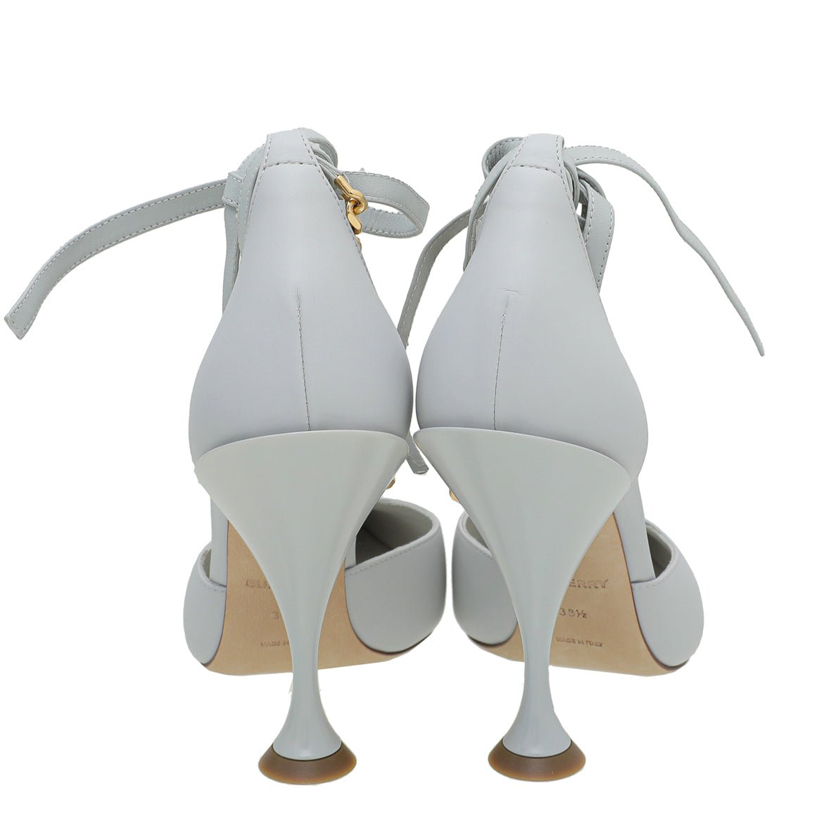 Burberry Pebble Grey Wellton T Strap Ankle Tie Pump 38.5