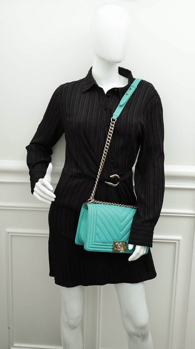 Chanel Aqua Green Le Boy Chevron Medium Flap Bag