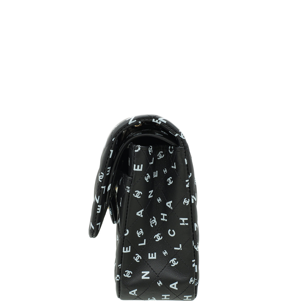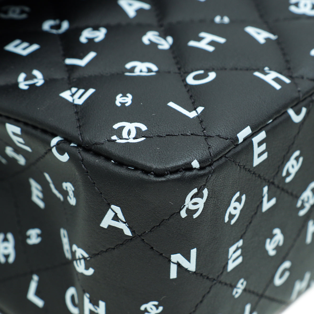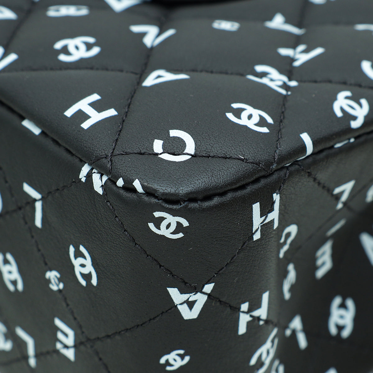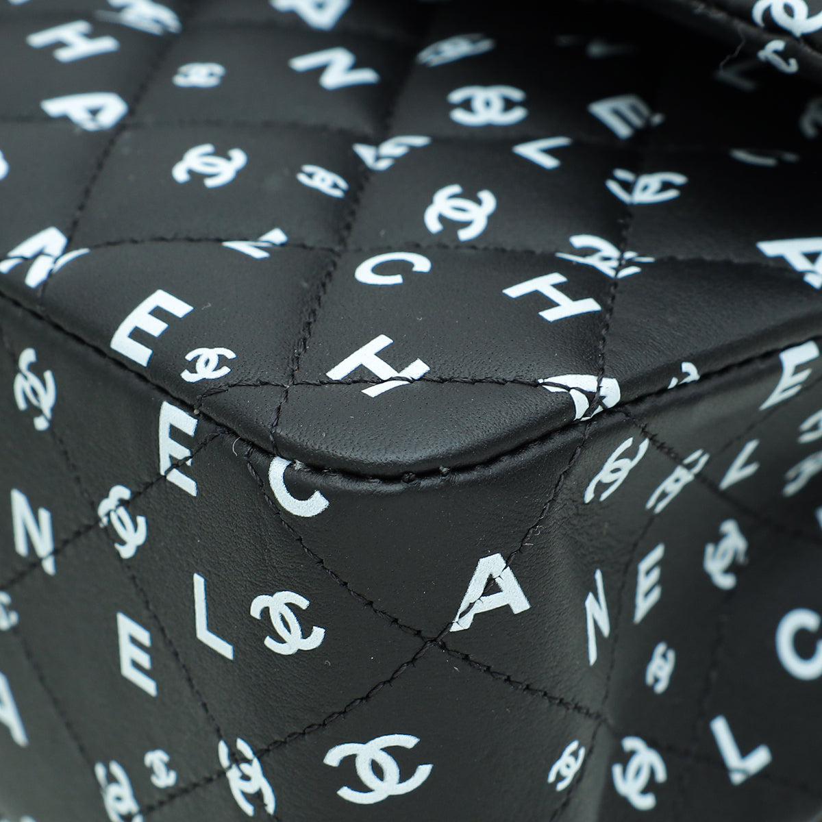 Chanel Black CC Classic 11.12 Letters Print Double Flap Medium Bag