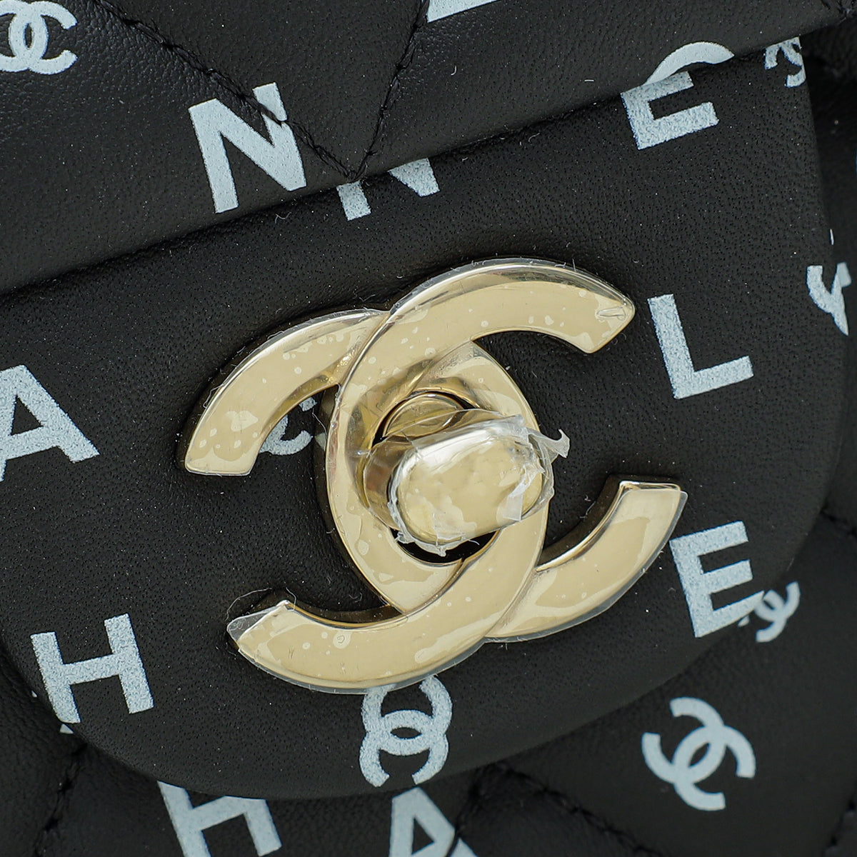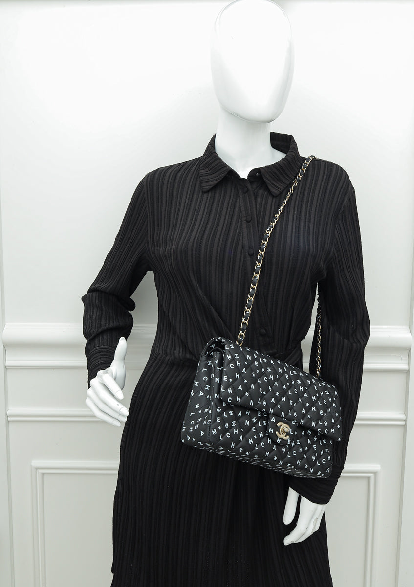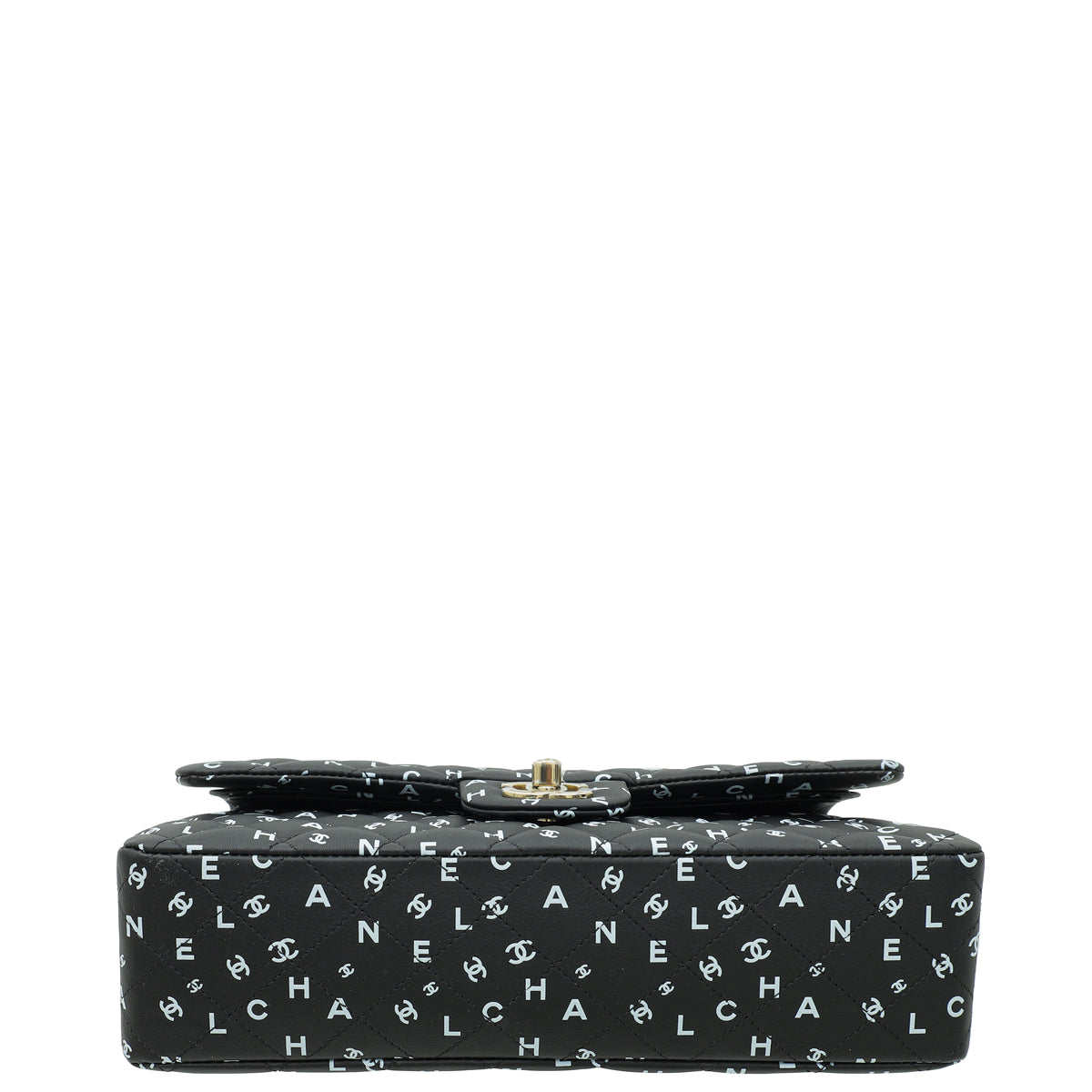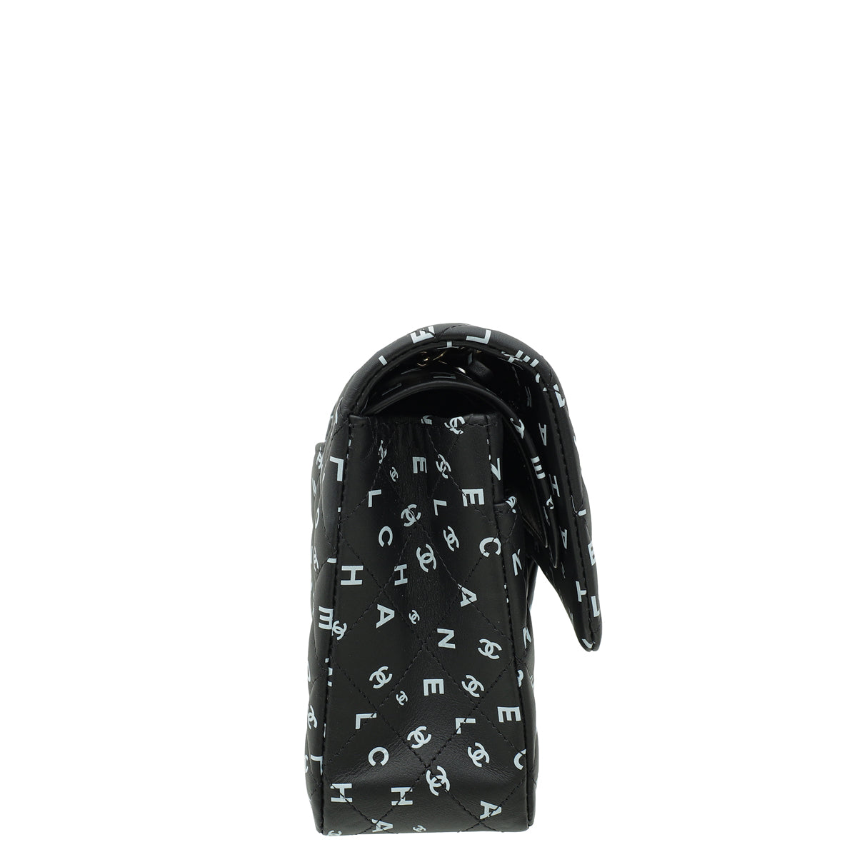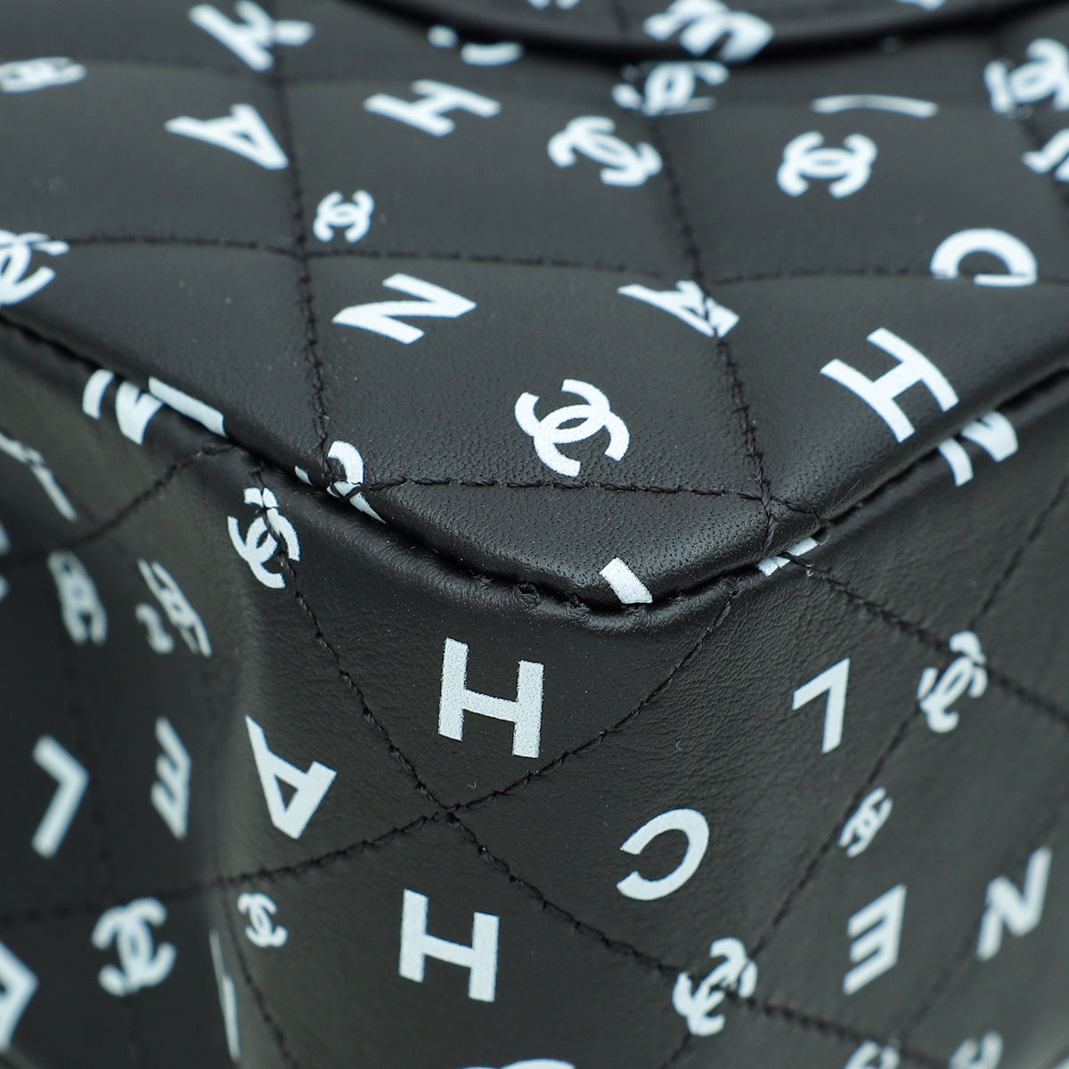 Chanel Black CC Classic 11.12 Letters Print Double Flap Medium Bag