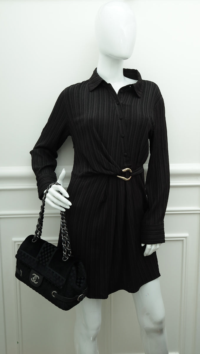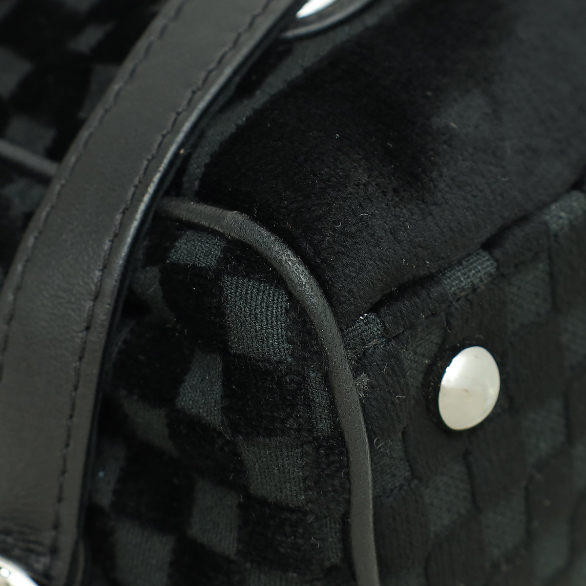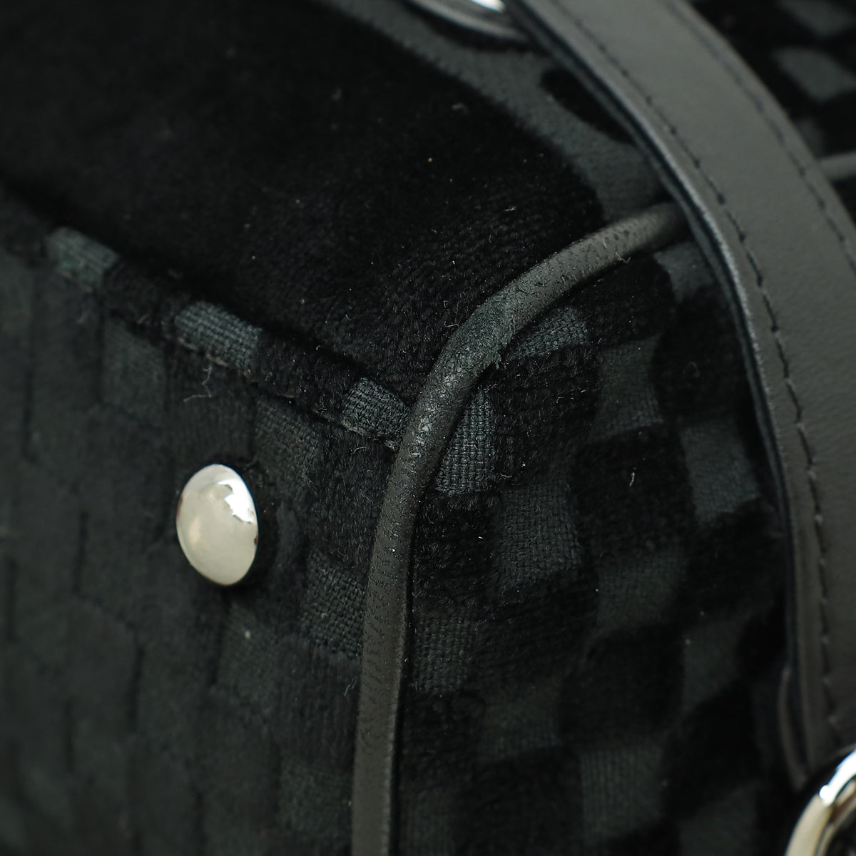 Chanel Black Check Embossed Velvet Side Belted Shoulder Bag