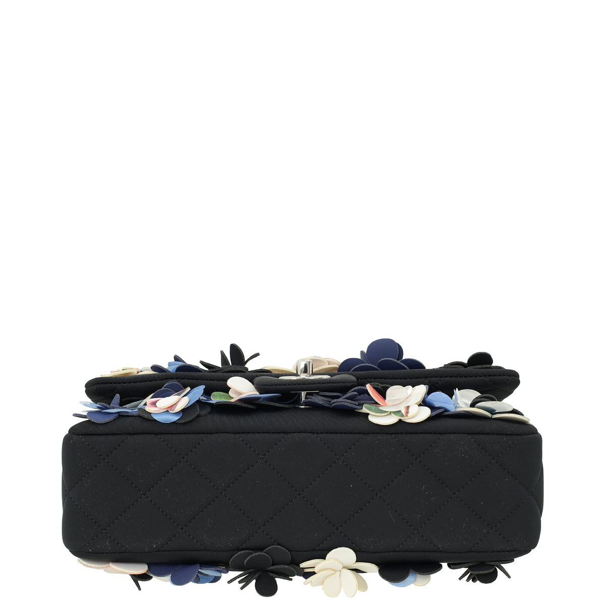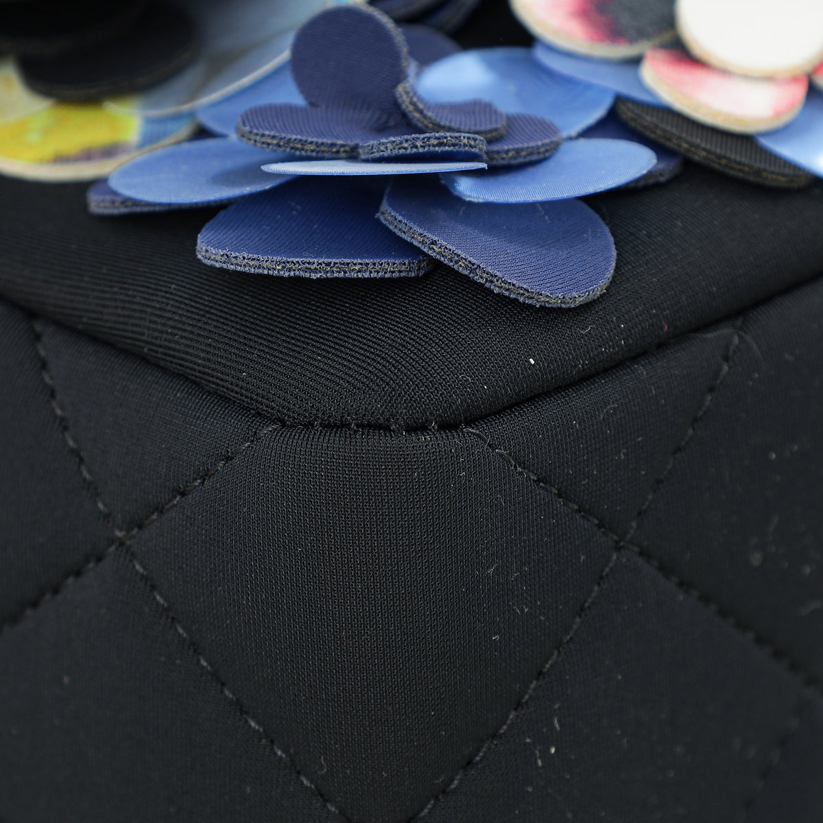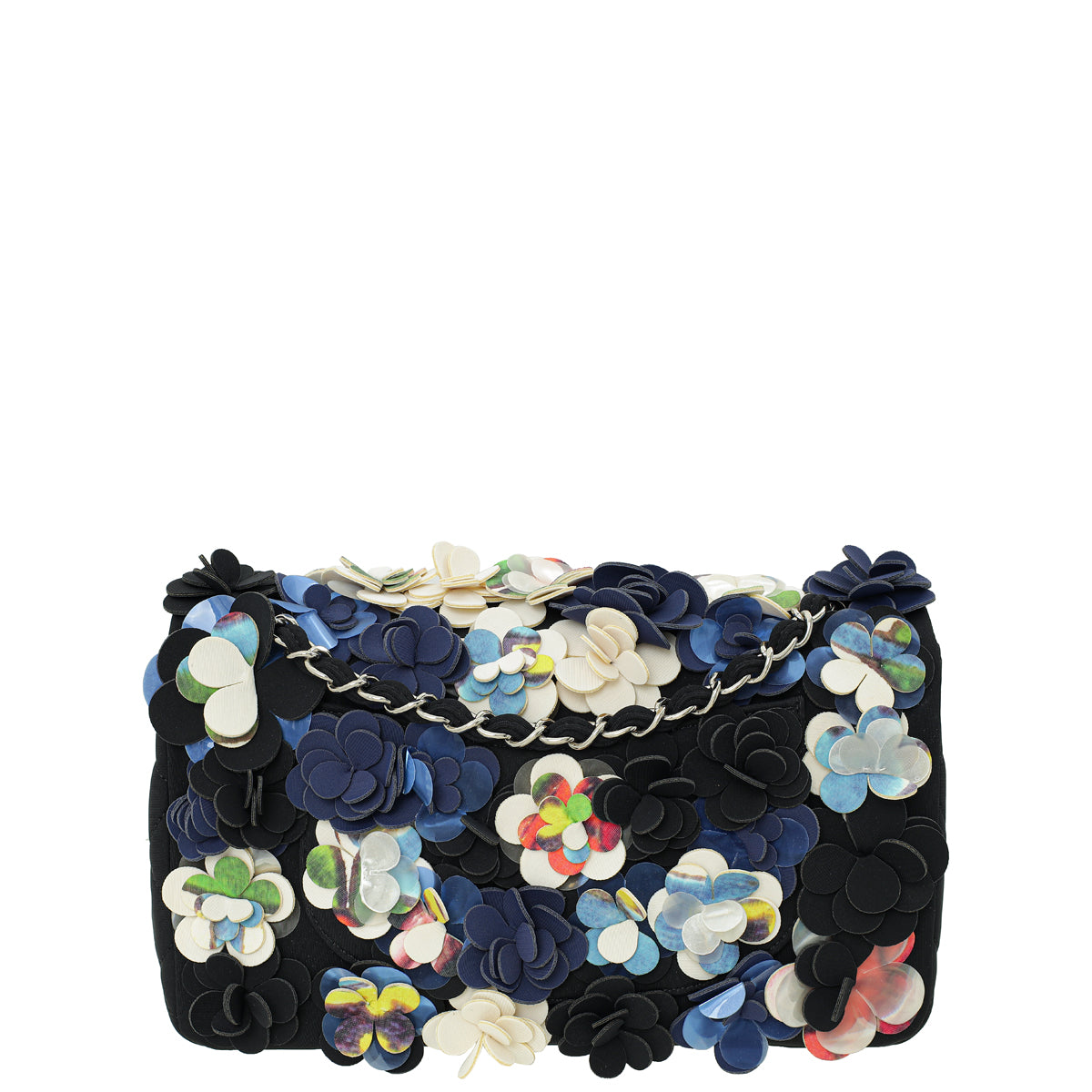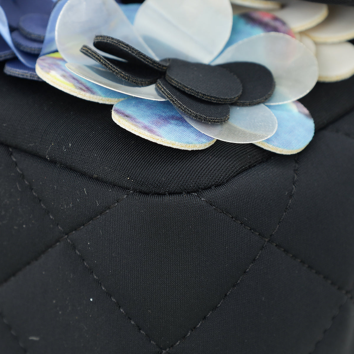 Chanel Black Multicolor Neoprene Camellia Flap Medium Bag