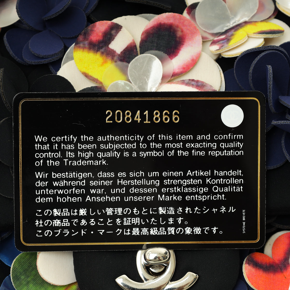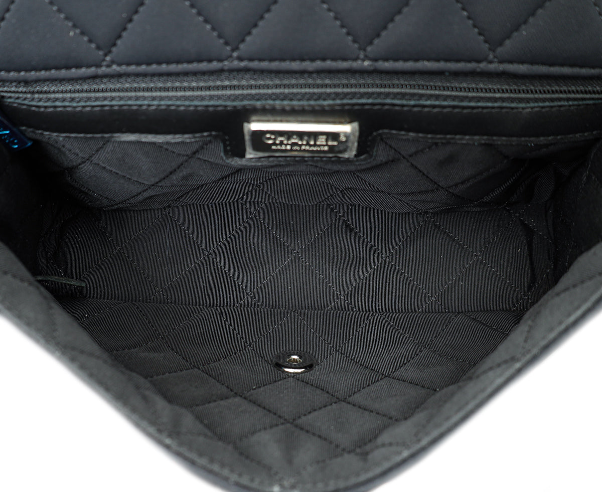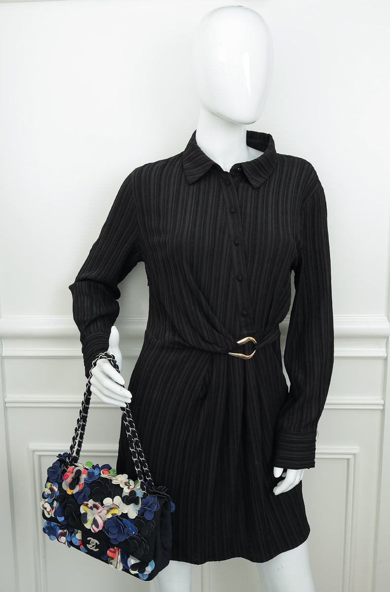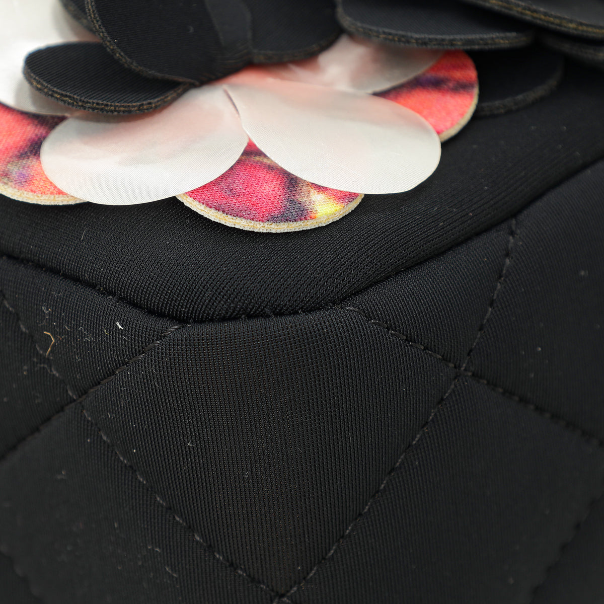 Chanel Black Multicolor Neoprene Camellia Flap Medium Bag