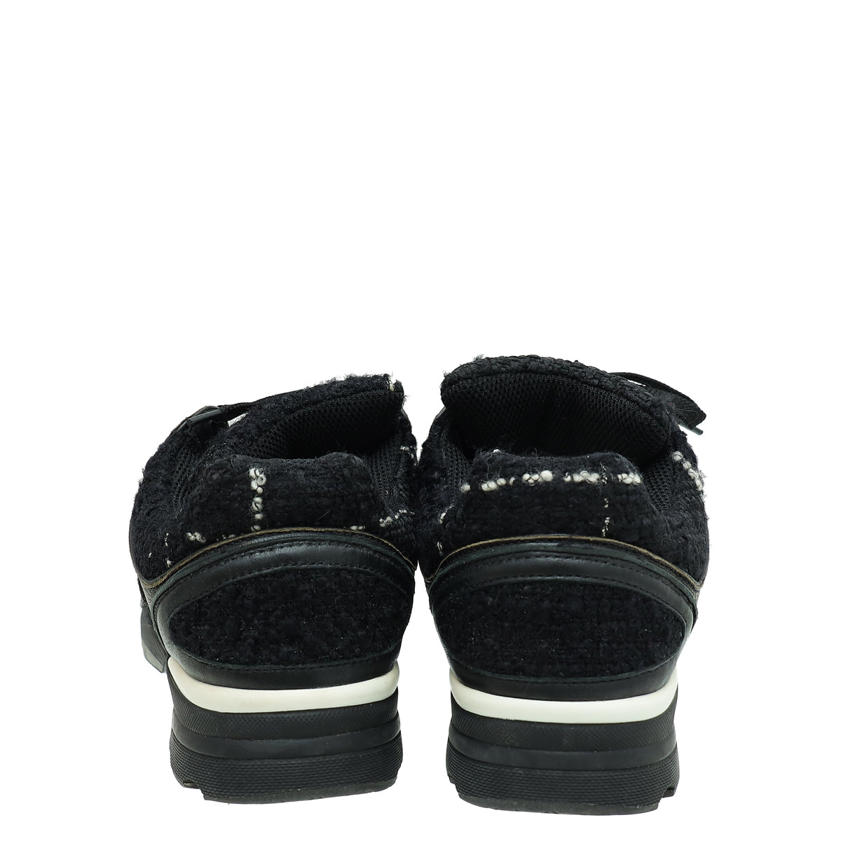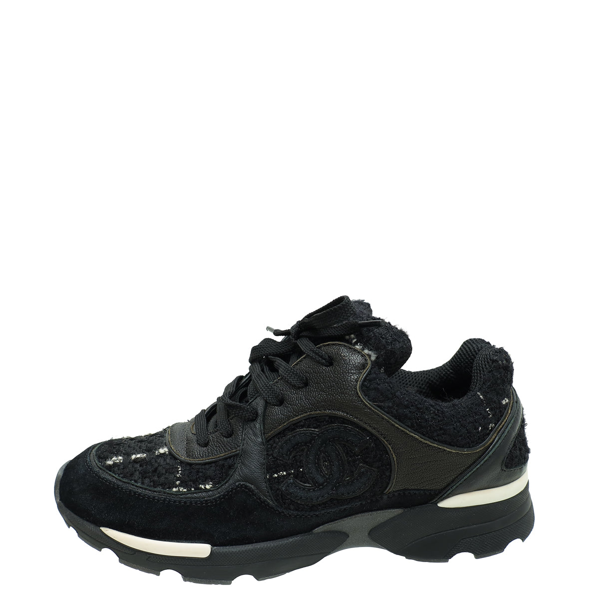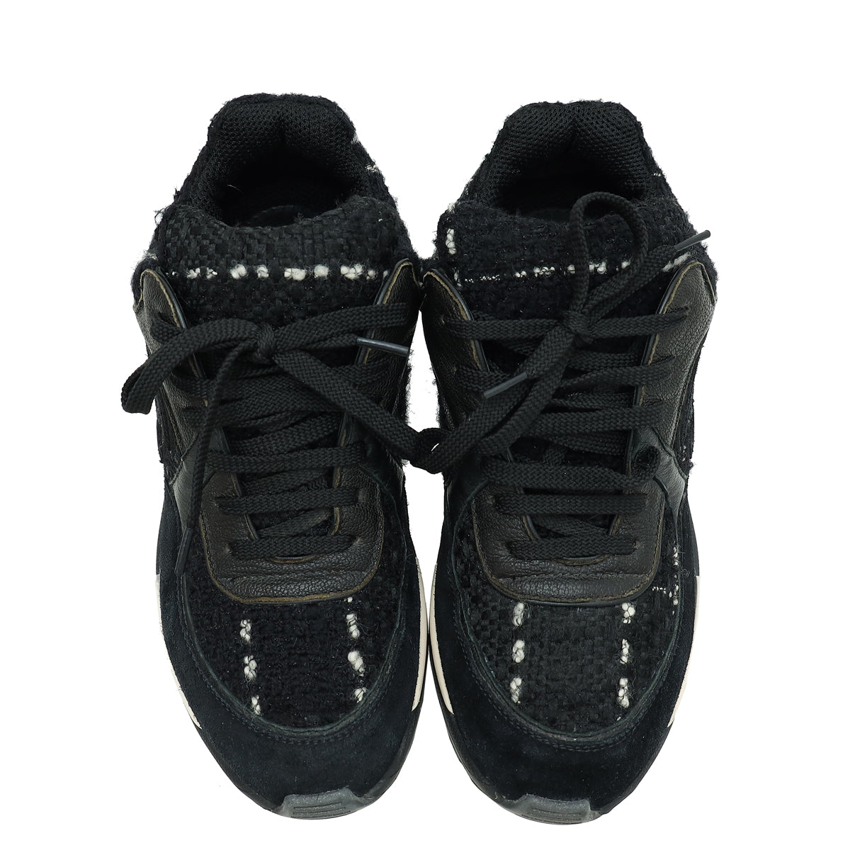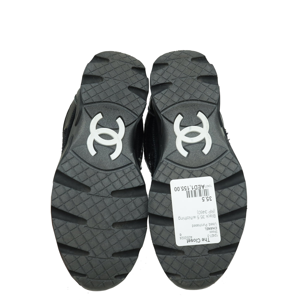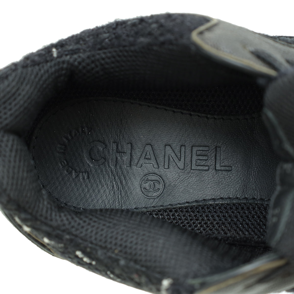 Chanel Black Tweed CC Lace Up Sneakers 35.5