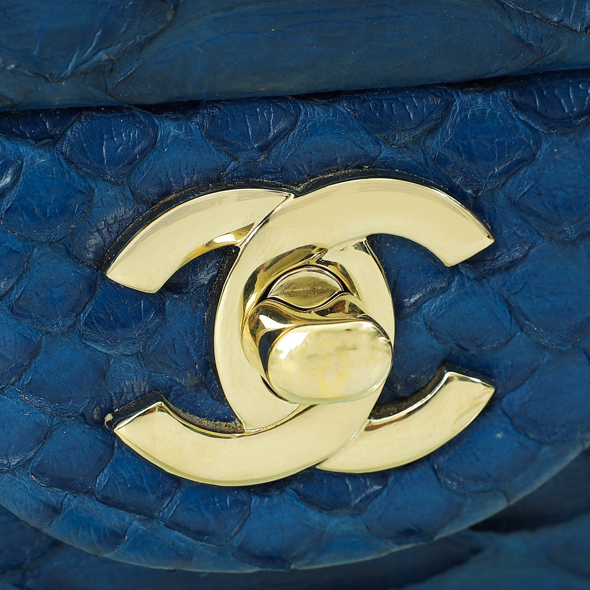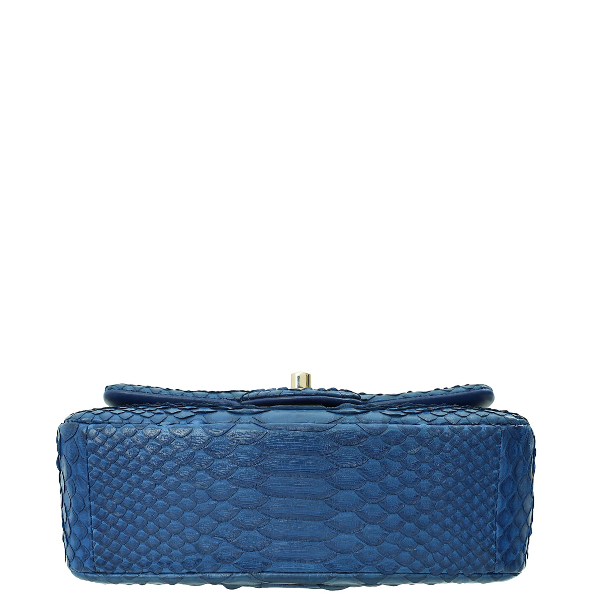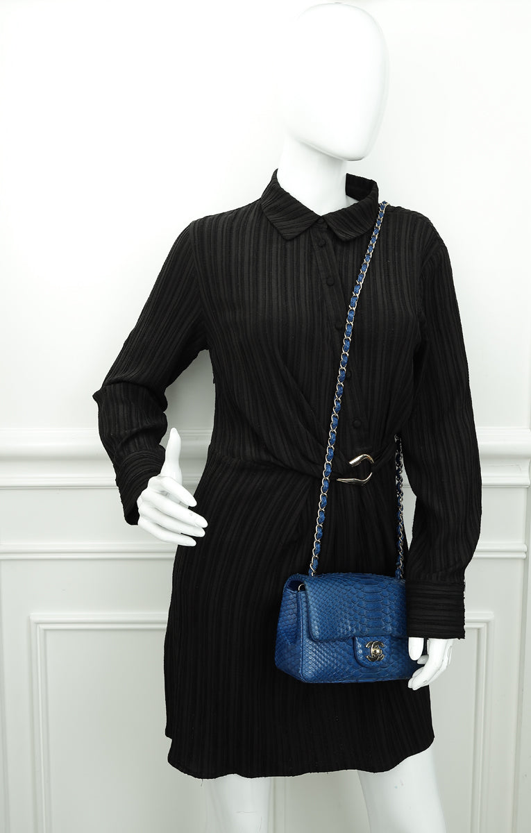 Chanel Blue Classic Python Mini Rectangular Flap Bag