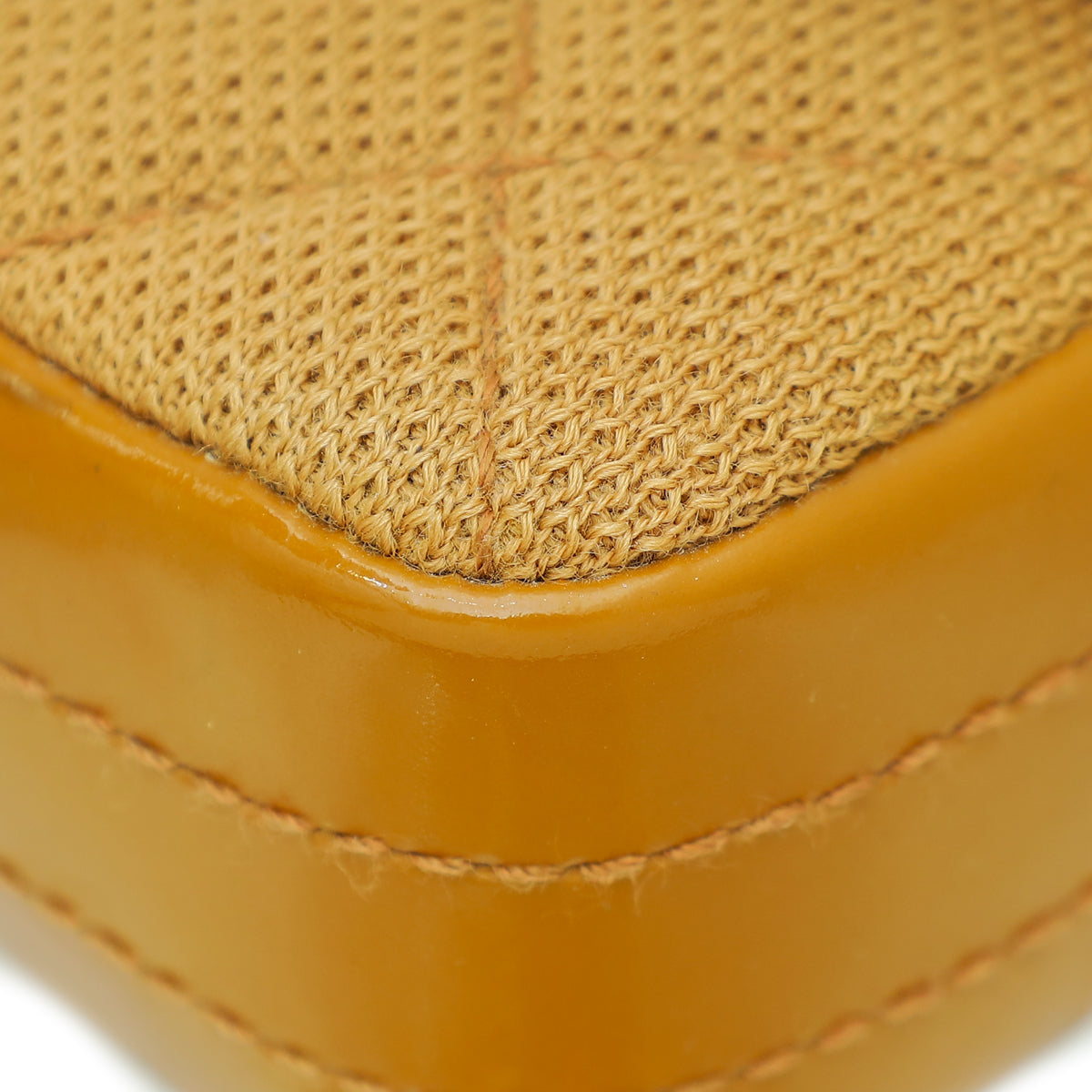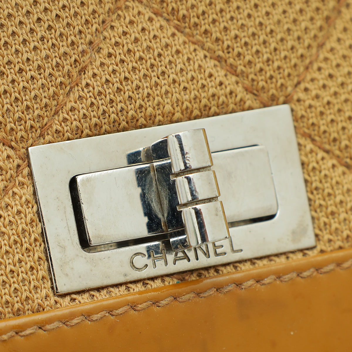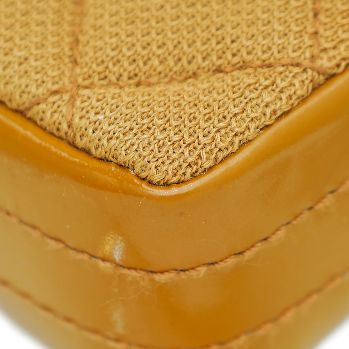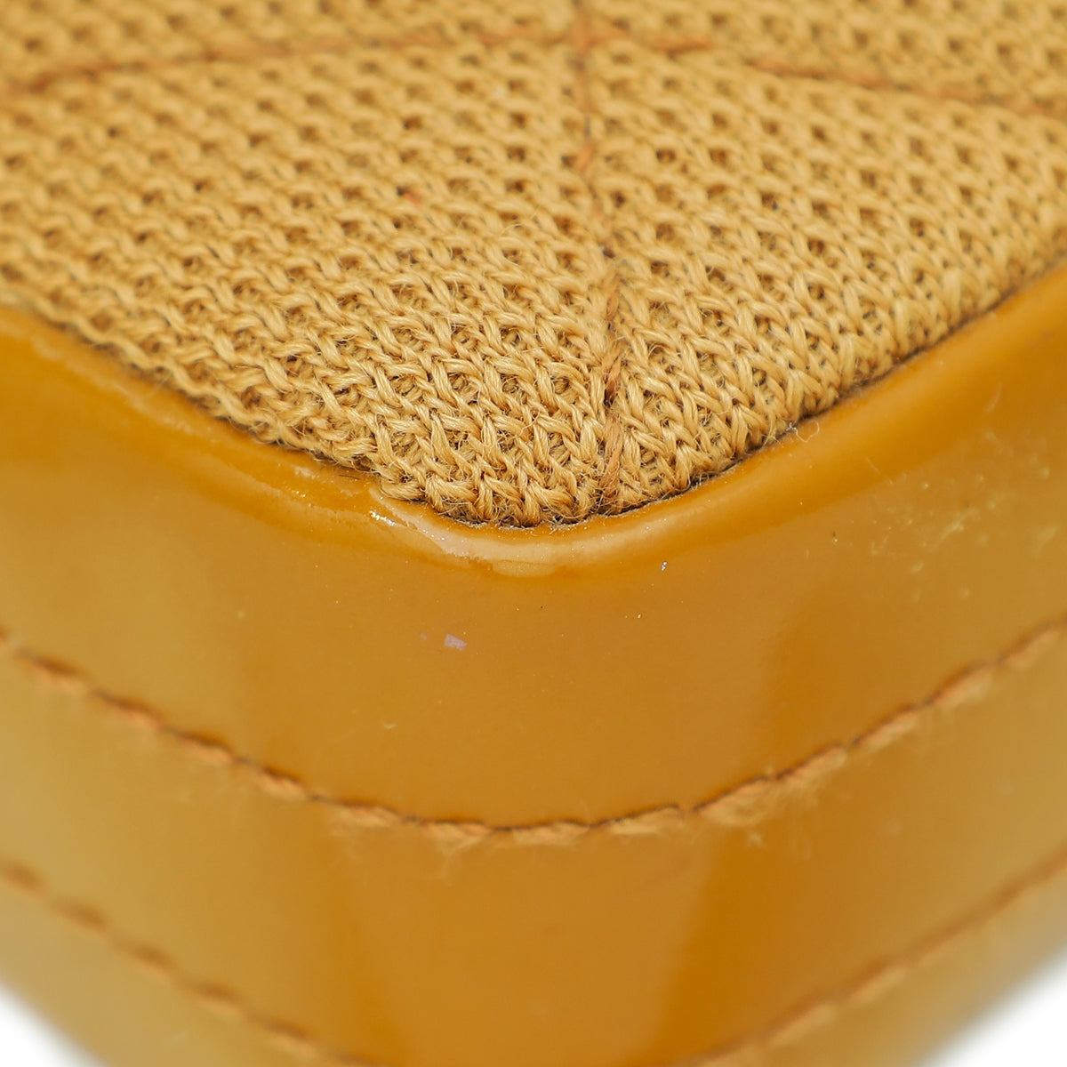 - Material: Camel Quilted Jersey with Patent Leather Trim