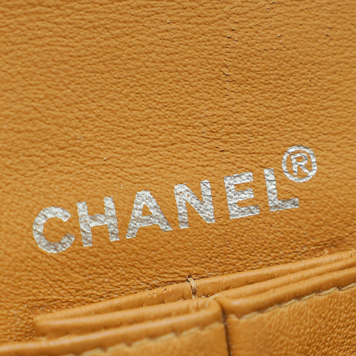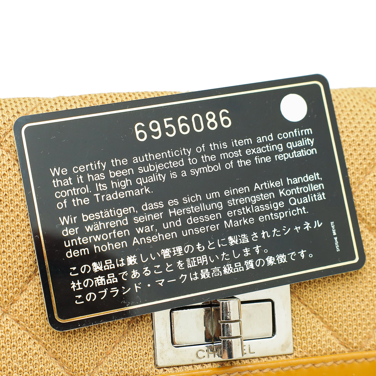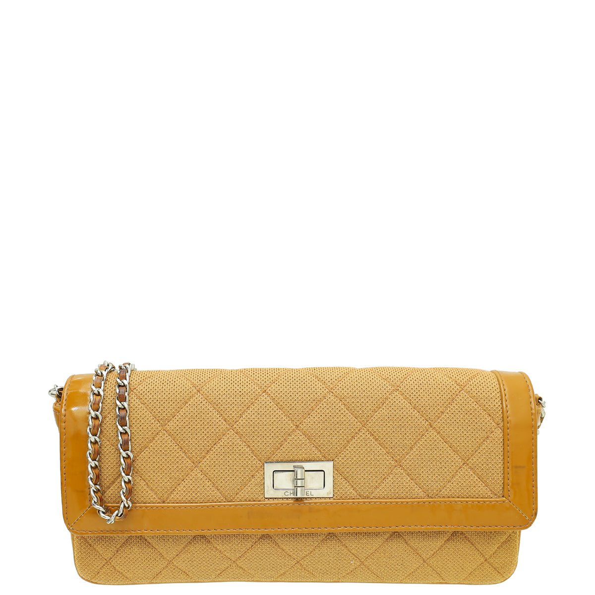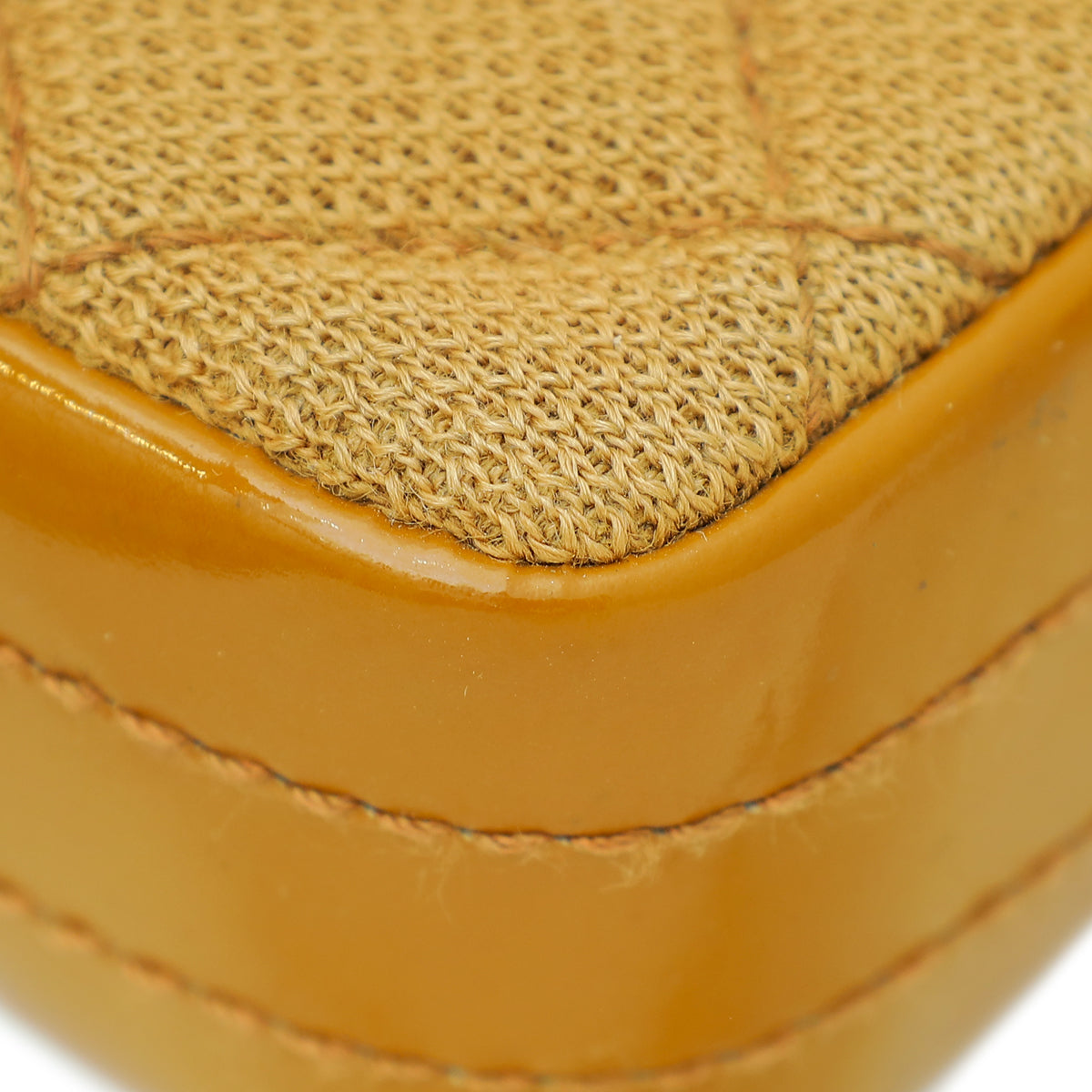 - Material: Camel Quilted Jersey with Patent Leather Trim