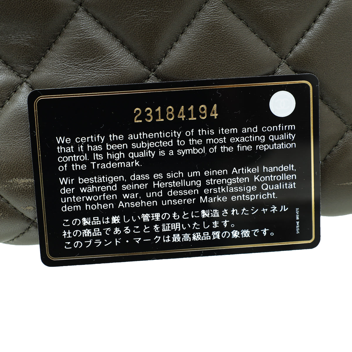 - Material: Khaki Quilted Lambskin Leather
