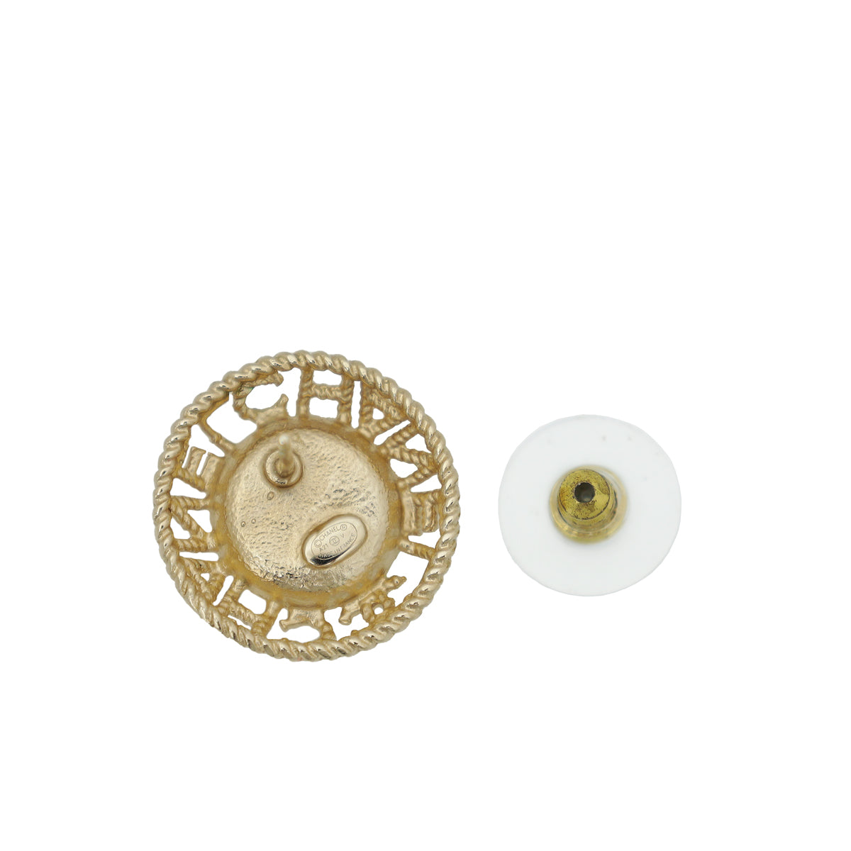 Chanel White Logo Pearl Round Earrings