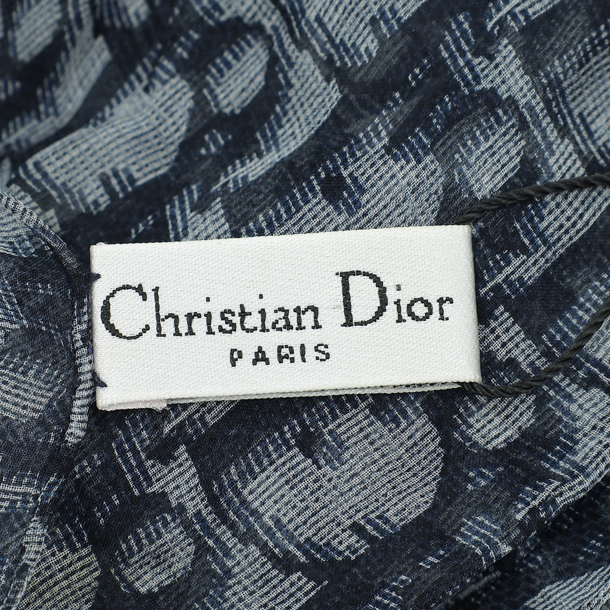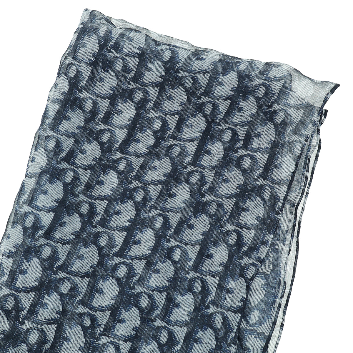 Christian Dior Navy Blue Oblique Print Silk Scarf