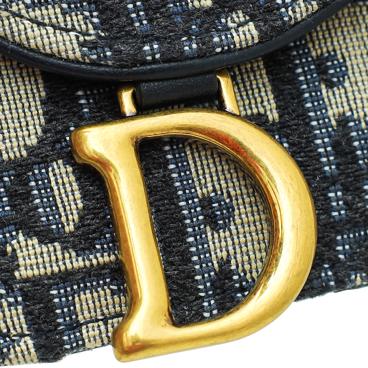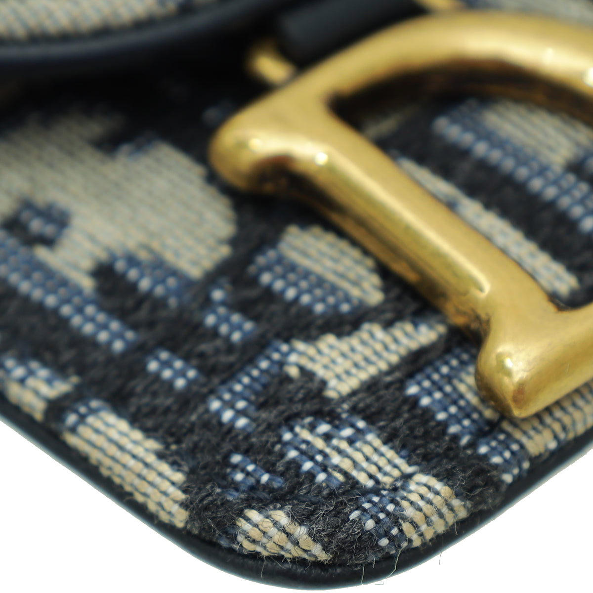 Material: Navy Blue Oblique Jacquard with Leather Trim