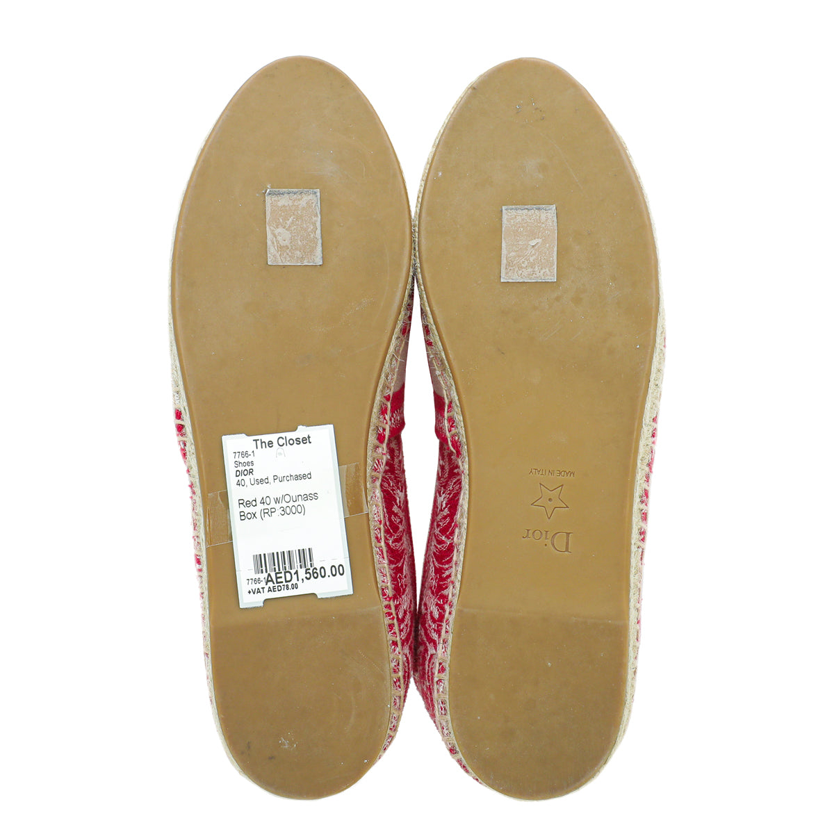 Christian Dior Red Toile de Jouy Granville Espadrille 40