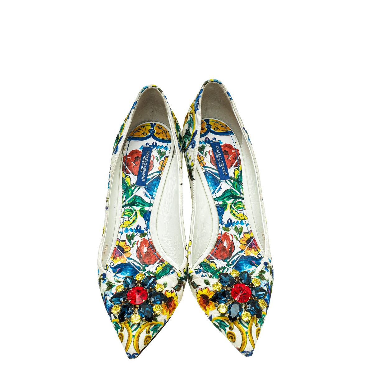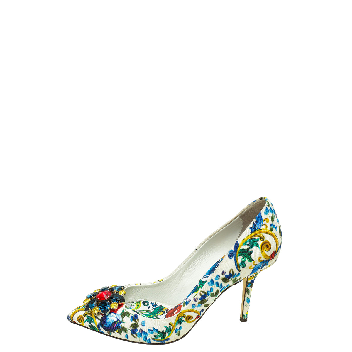 Dolce & Gabbana White Multicolor Majolica Bellucci Pumps 39.5-Dolce & Gabbana-THE CLOSET