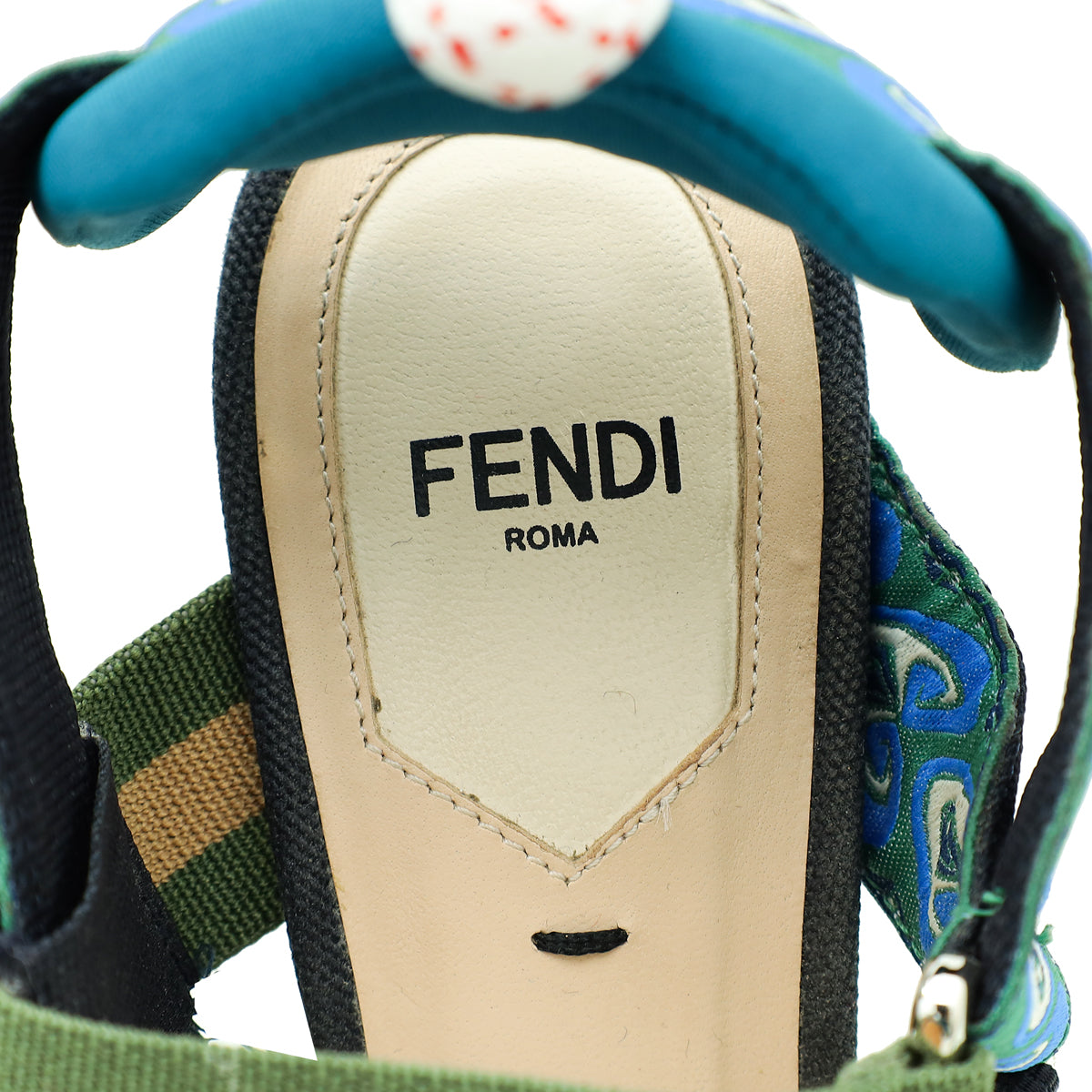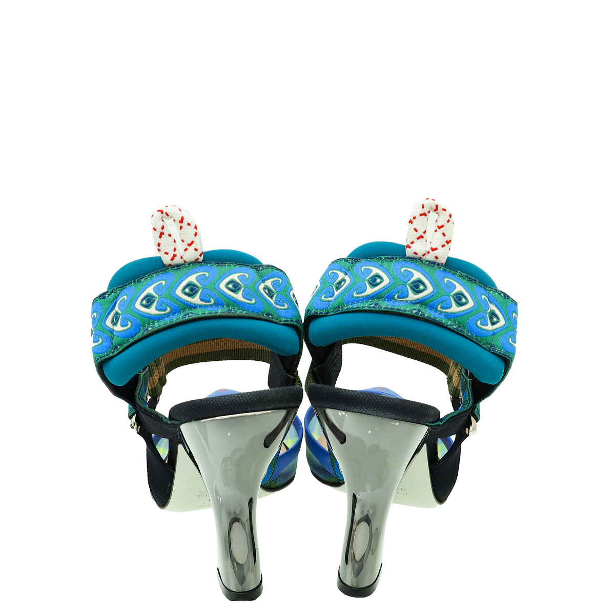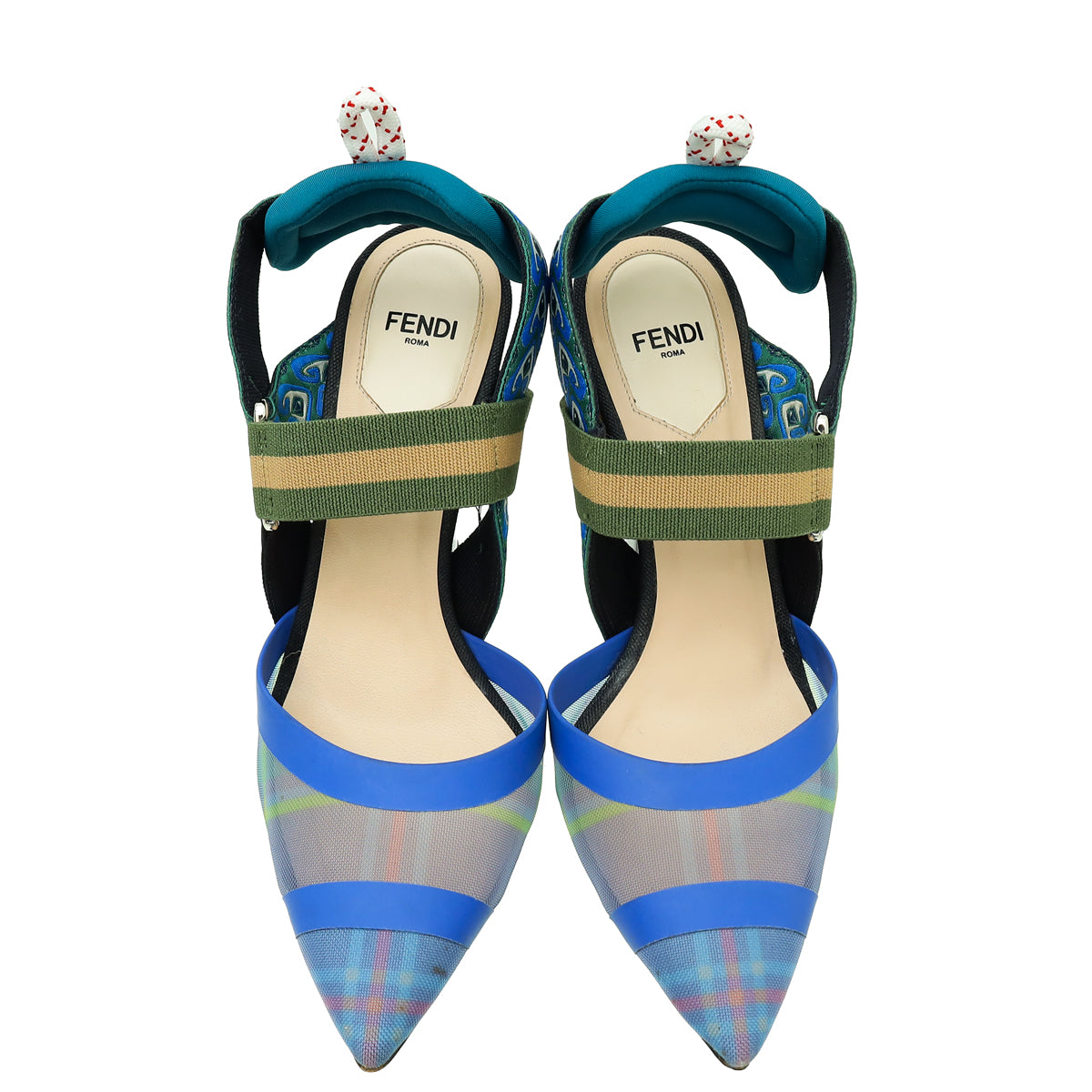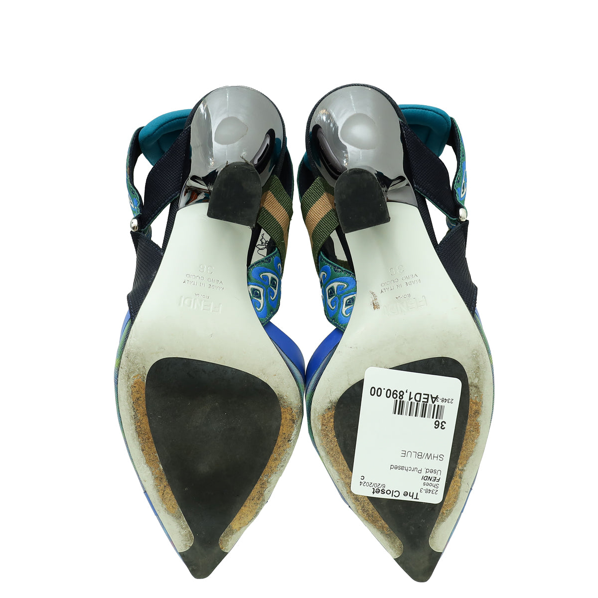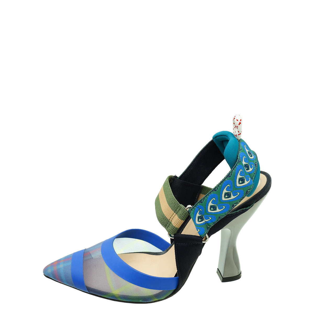 Fendi Blue Multicolor Colibri Mesh Slingback Pump 36