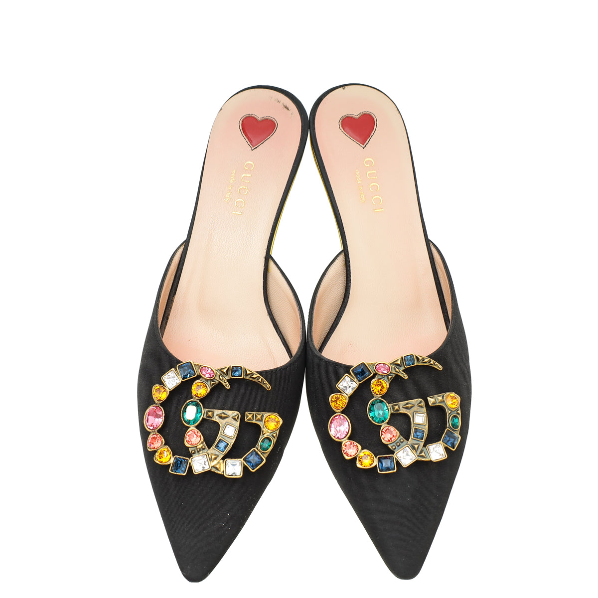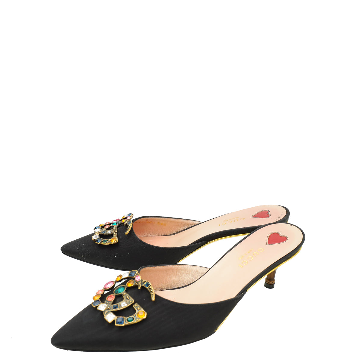 Gucci Moire Fabric Crystal GG Embellished Mules 36.5