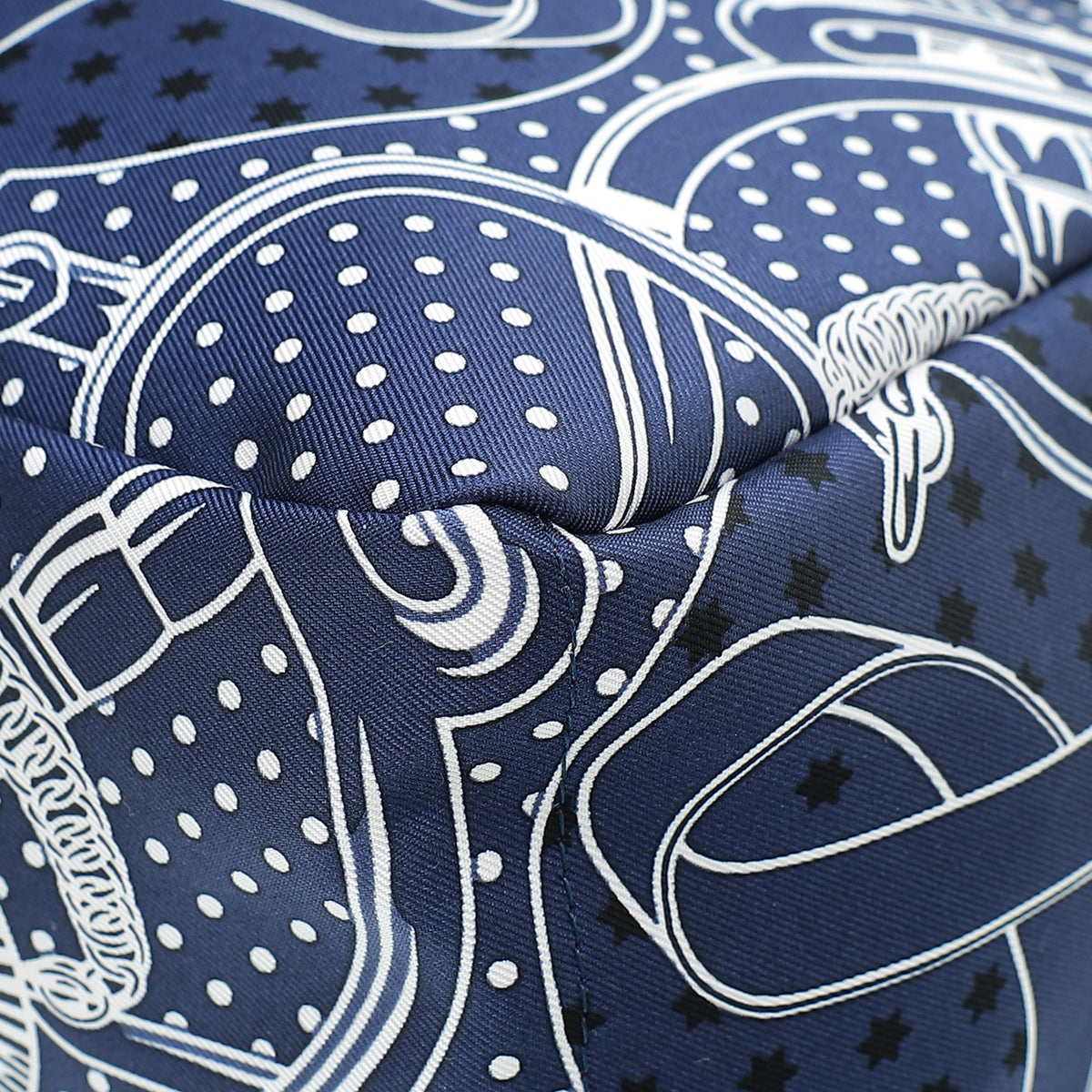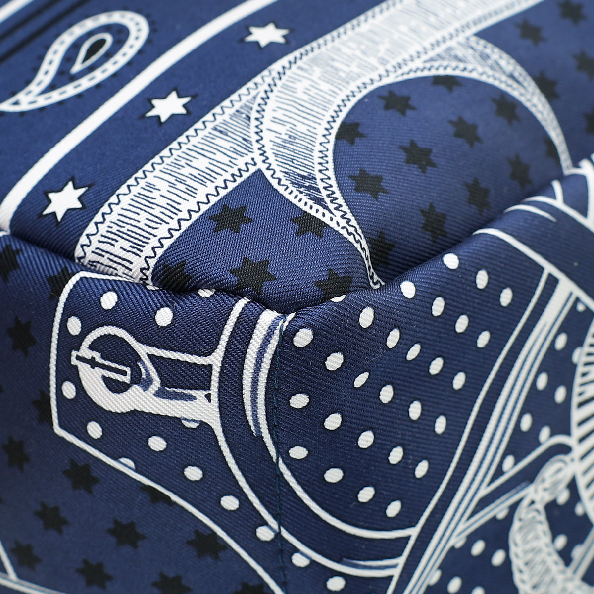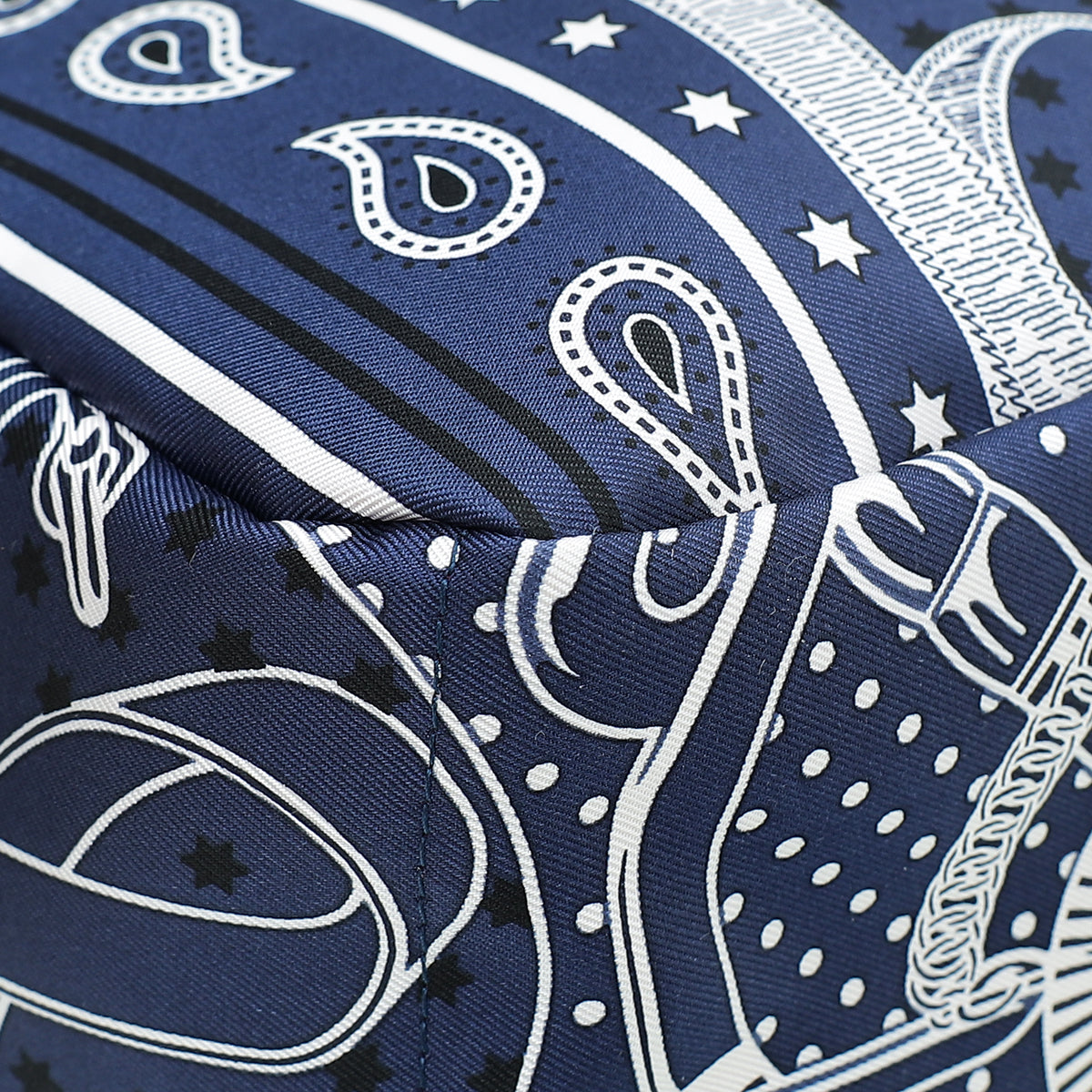 Material: Bleu Nuit "Eperons d'Or" Printed Silk with Barenia Calfskin Leather Trim
