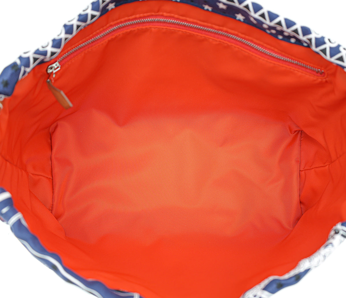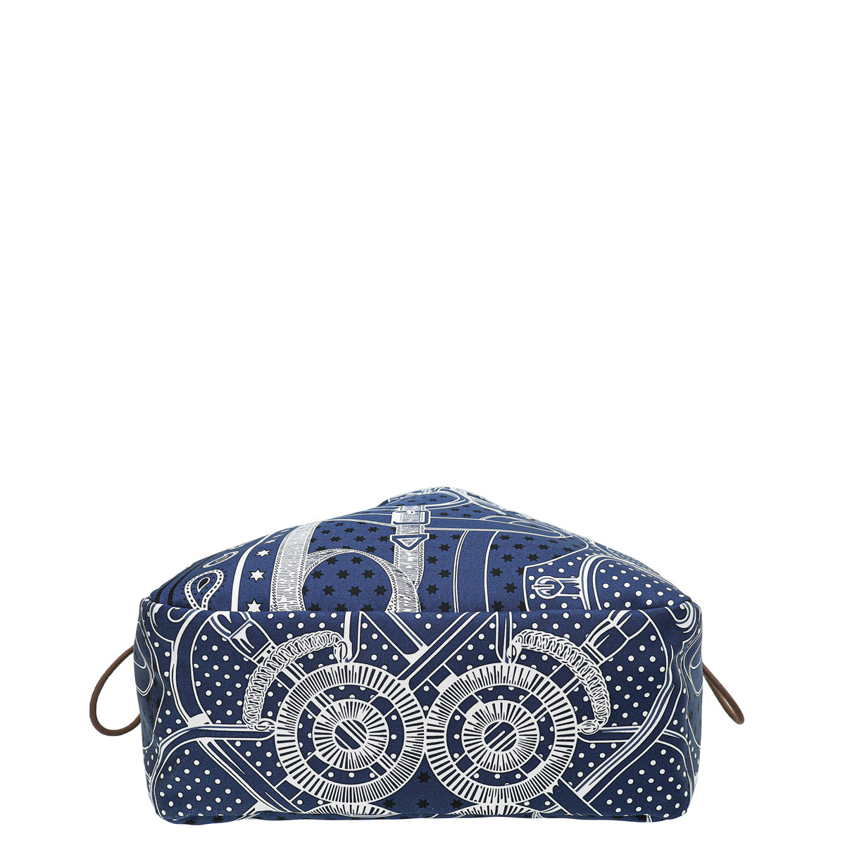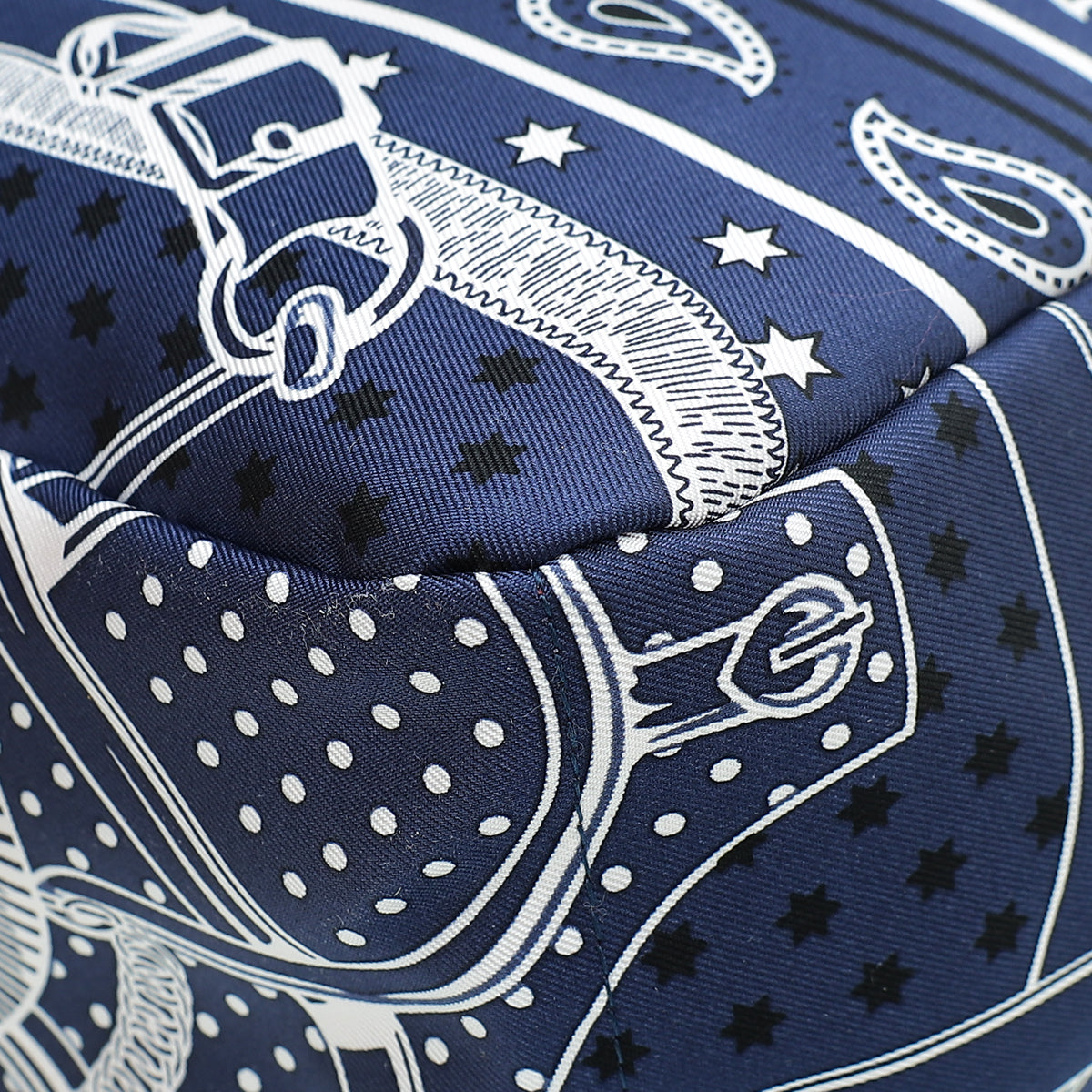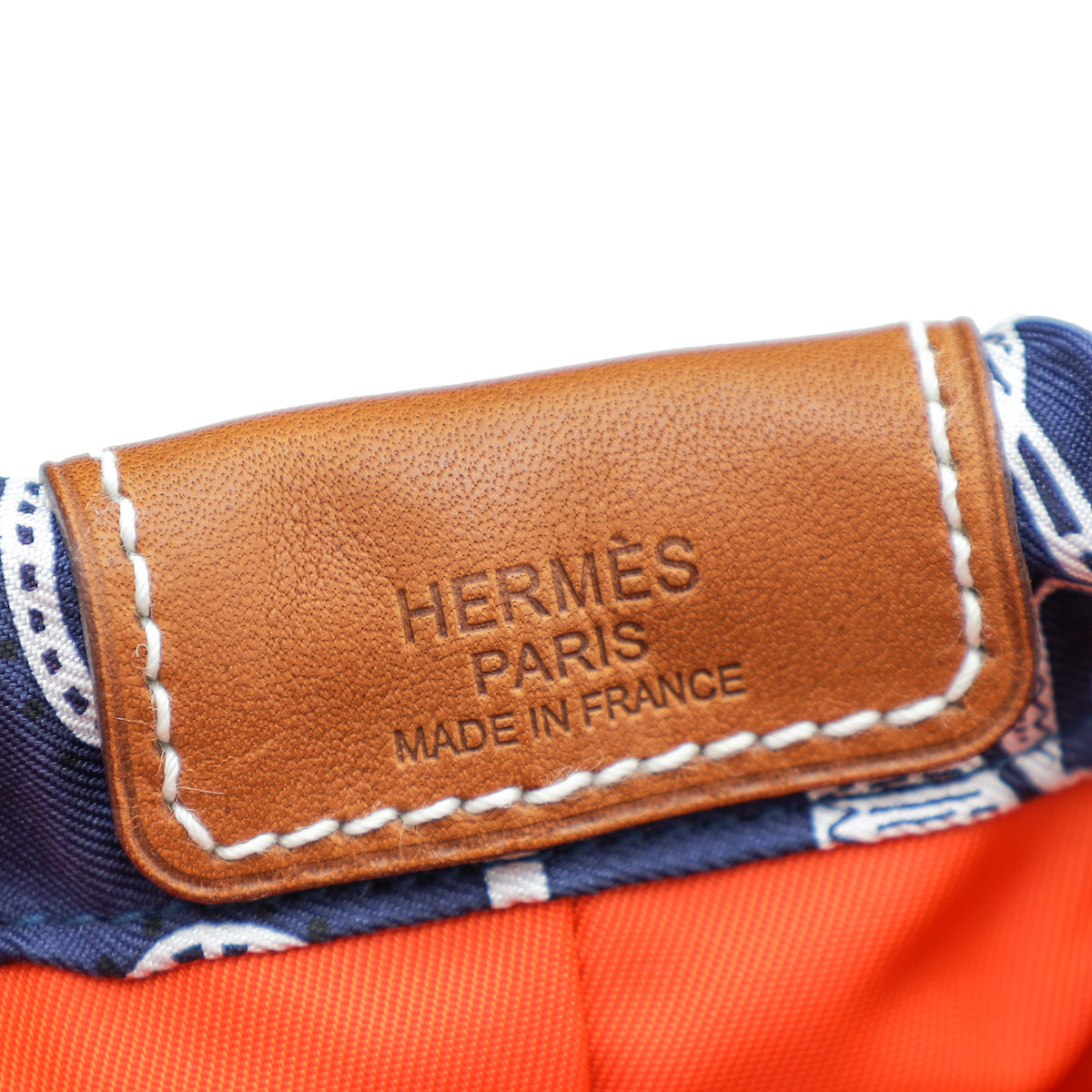 Material: Bleu Nuit "Eperons d'Or" Printed Silk with Barenia Calfskin Leather Trim