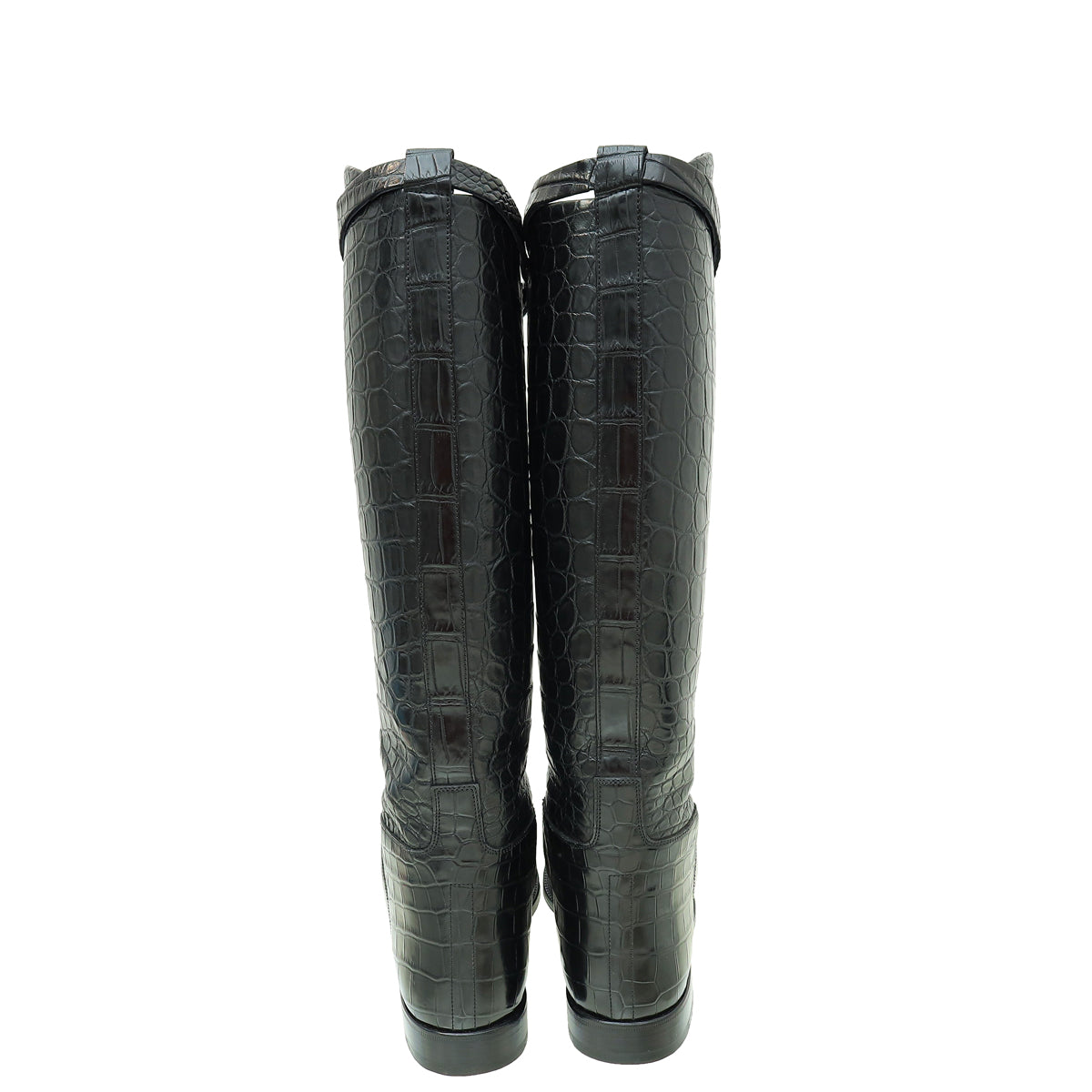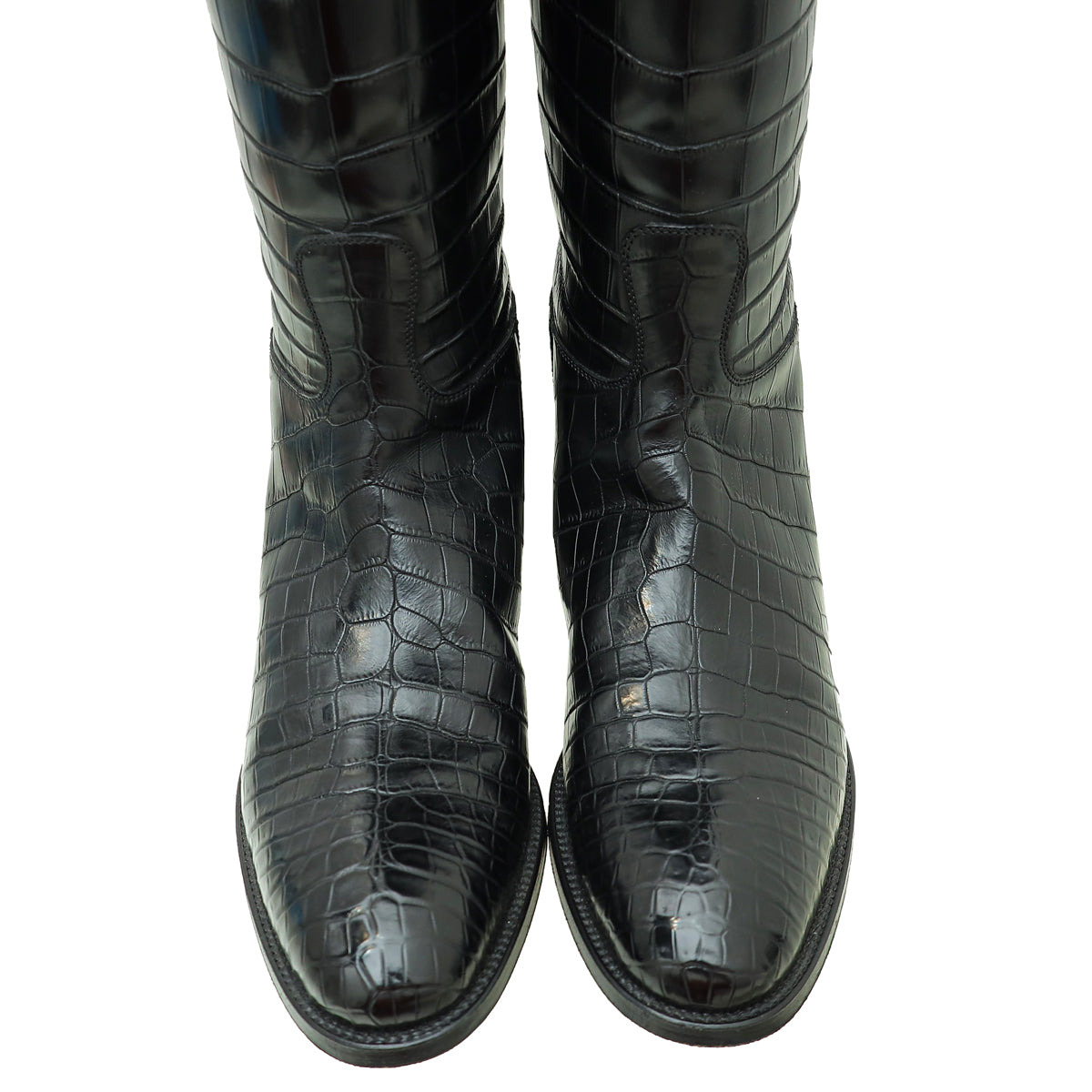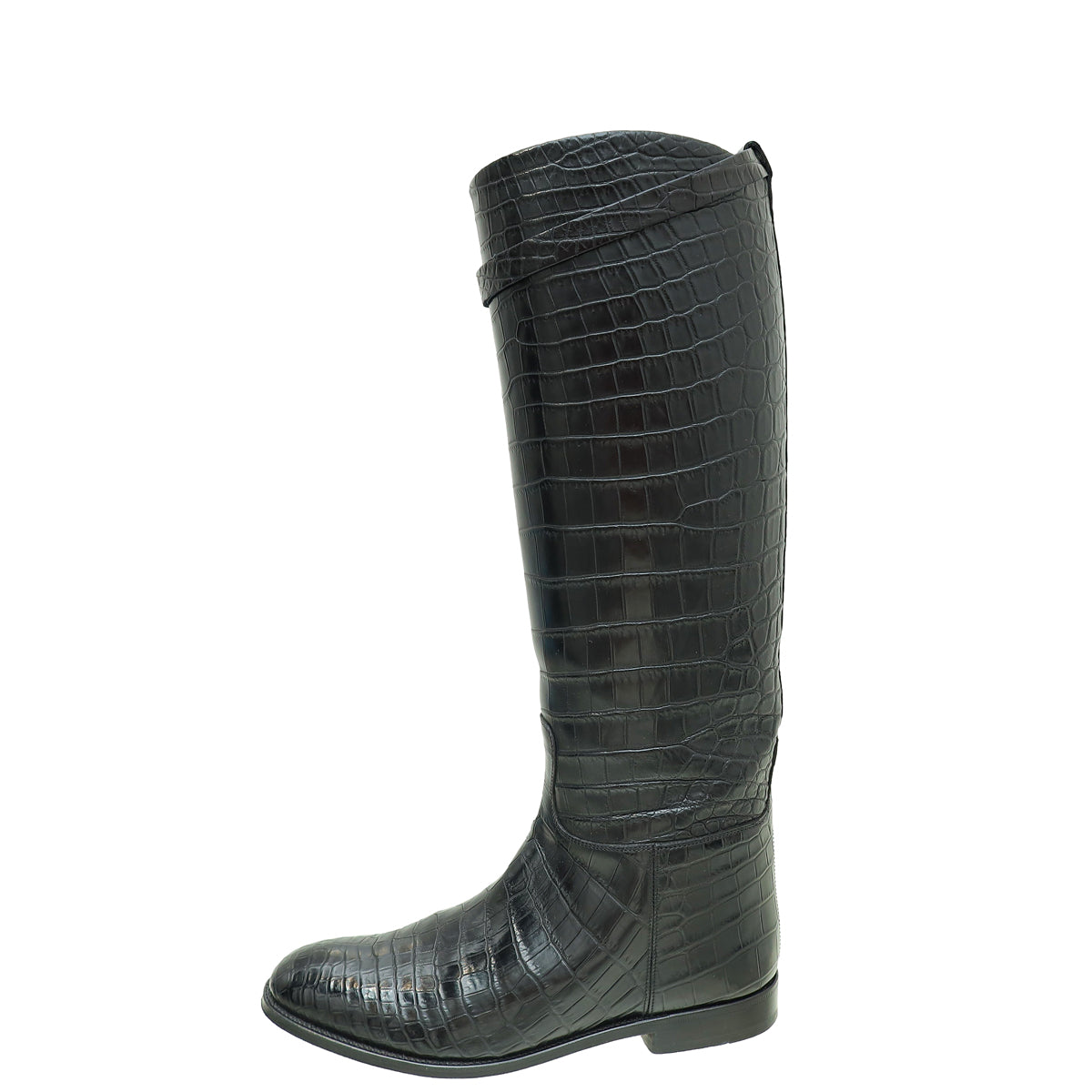Hermes Noir Crocodile Kelly Jumping Boot 39.5