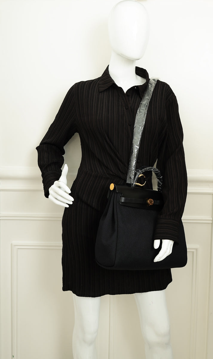 Hermes Noir Herbag Zip 31 Pm Retourne Military Toile and Vache Bag