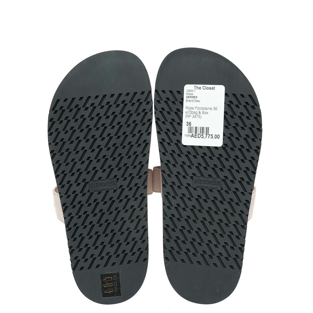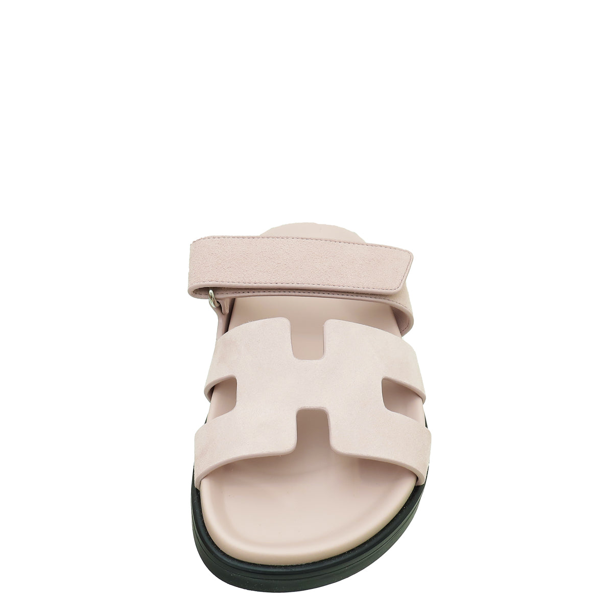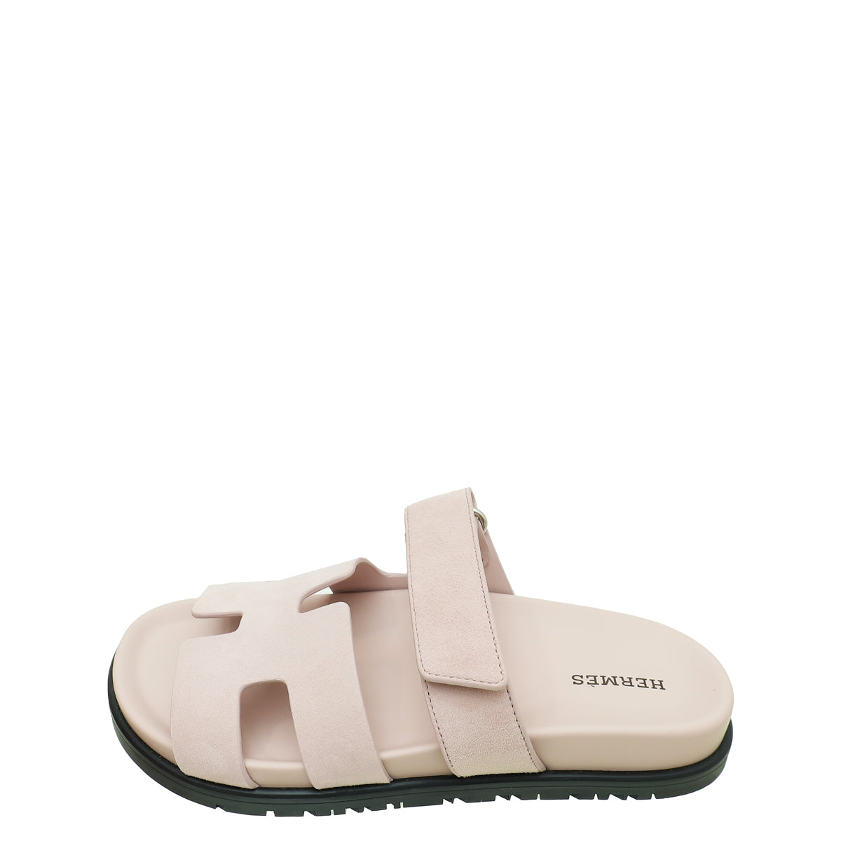 Hermes Rose Porcelain Suede Chypre Sandal 36