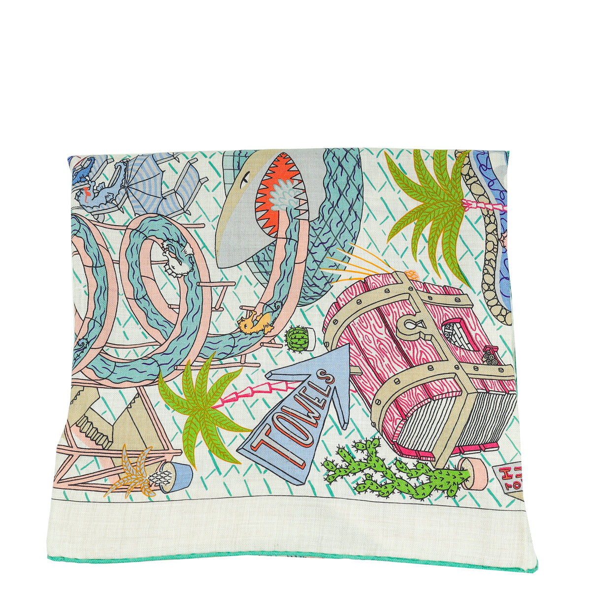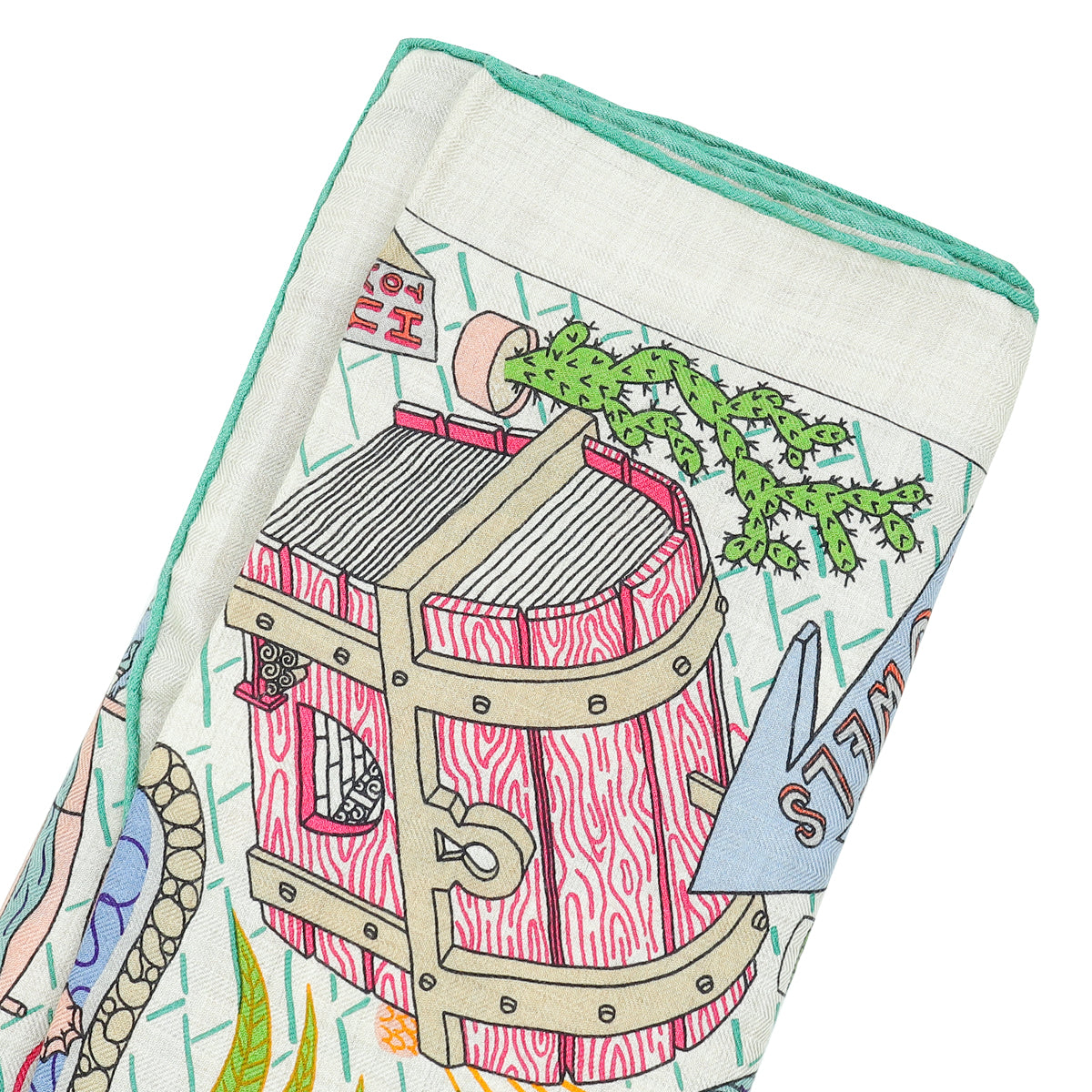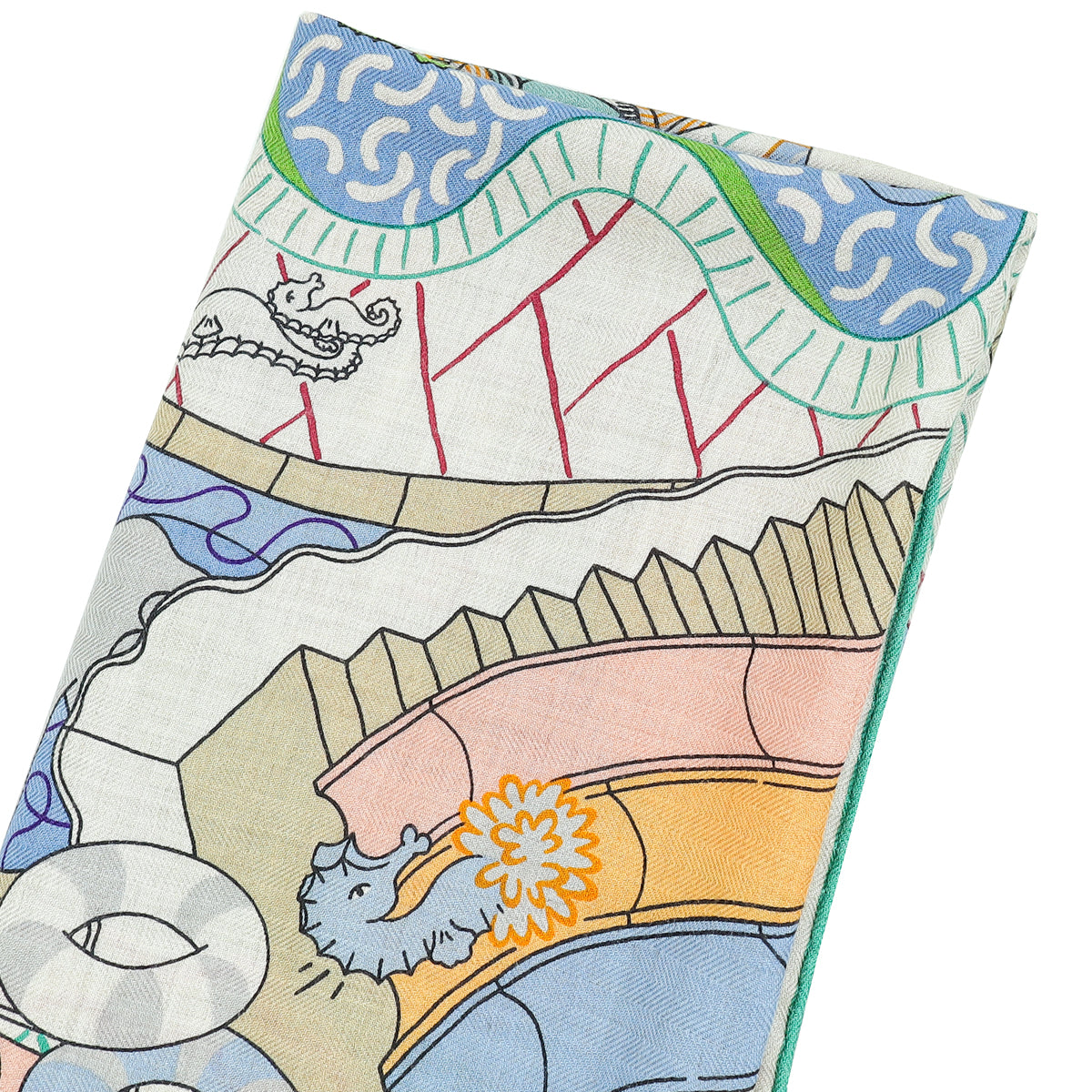 Hermes Vert Bleu Multicolor Splash Park Cashmere Silk Shawl
