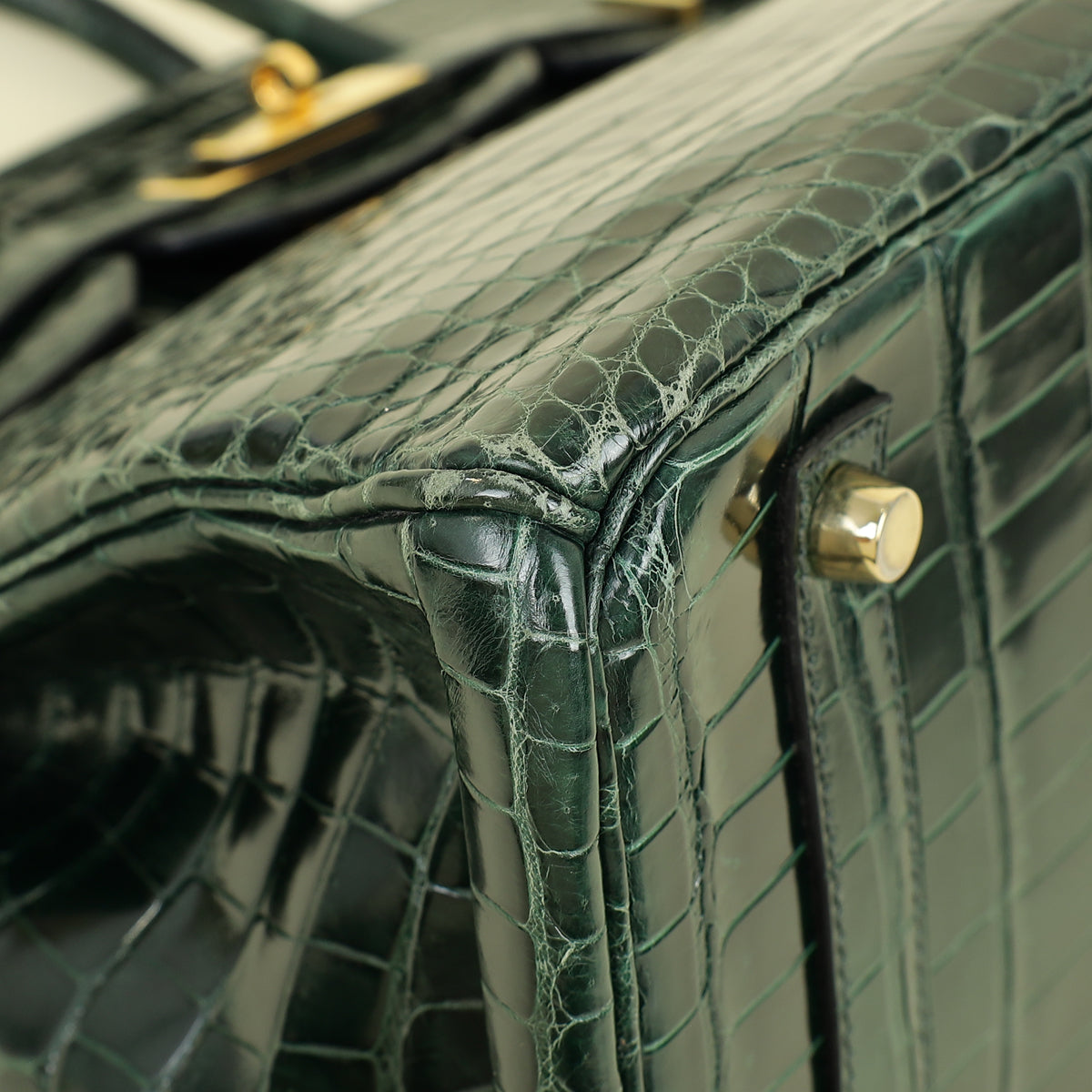 Hermes Vert Emerald Shiny Porosus Crocodile Birkin 35 Bag