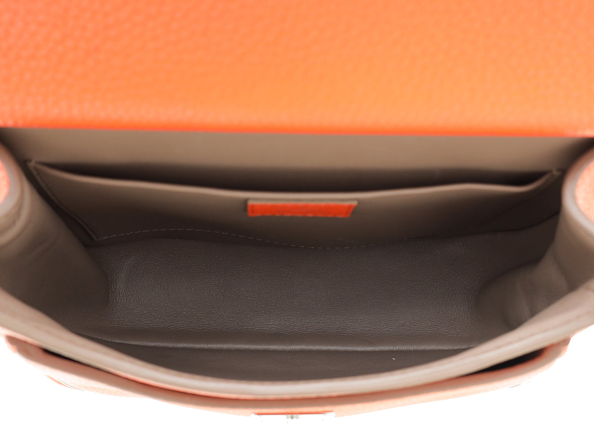 Material: Tangarine/Taupe Taurillon Leather