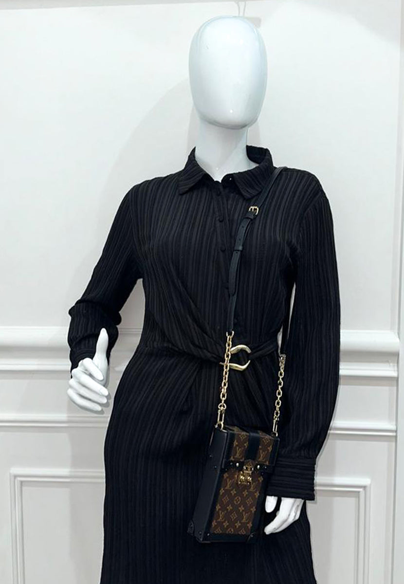 Material: Brown Monogram Coated Canvas and Black Calfskin Leather