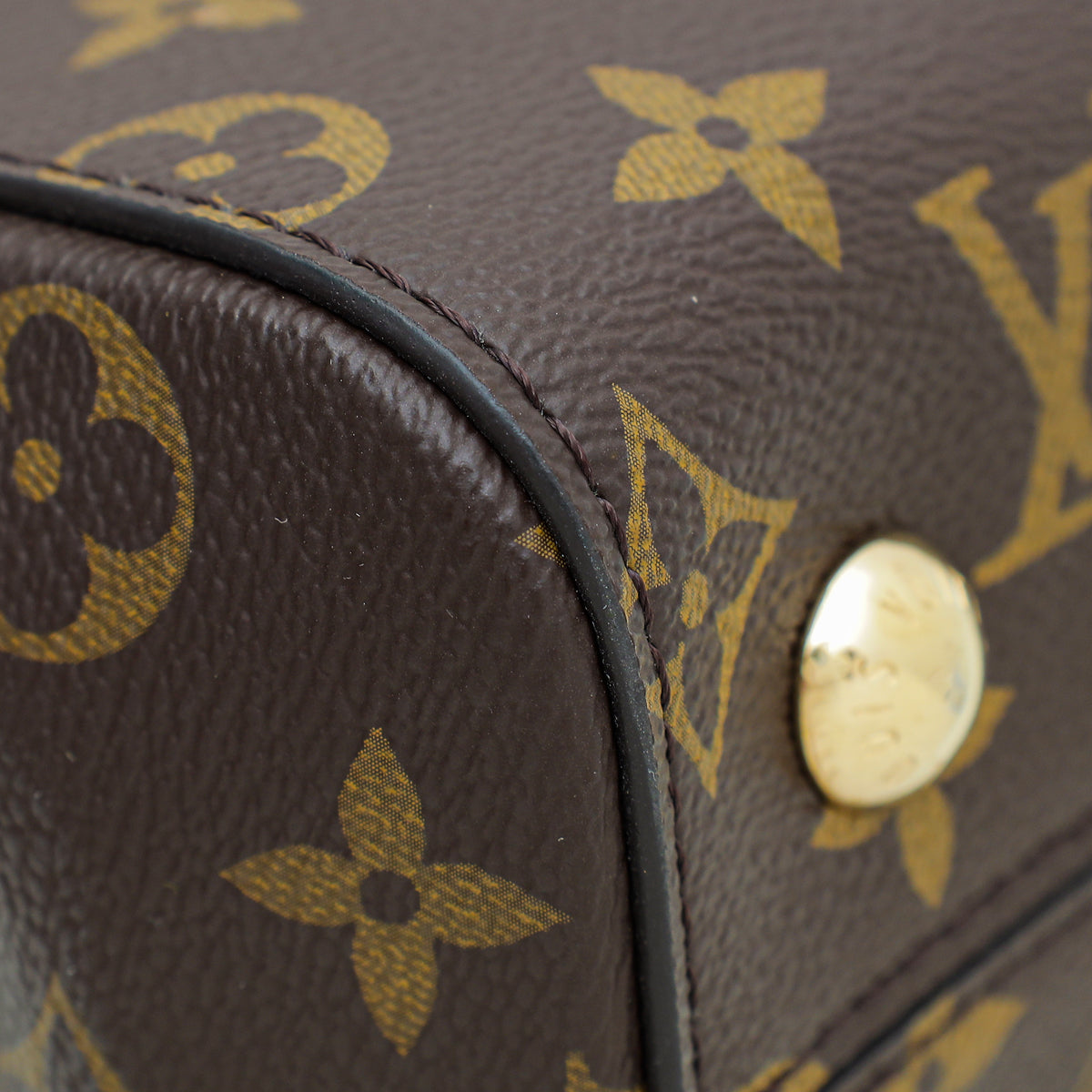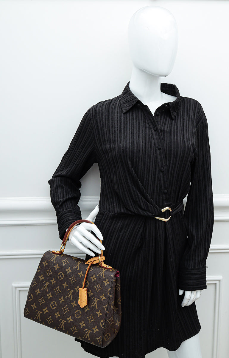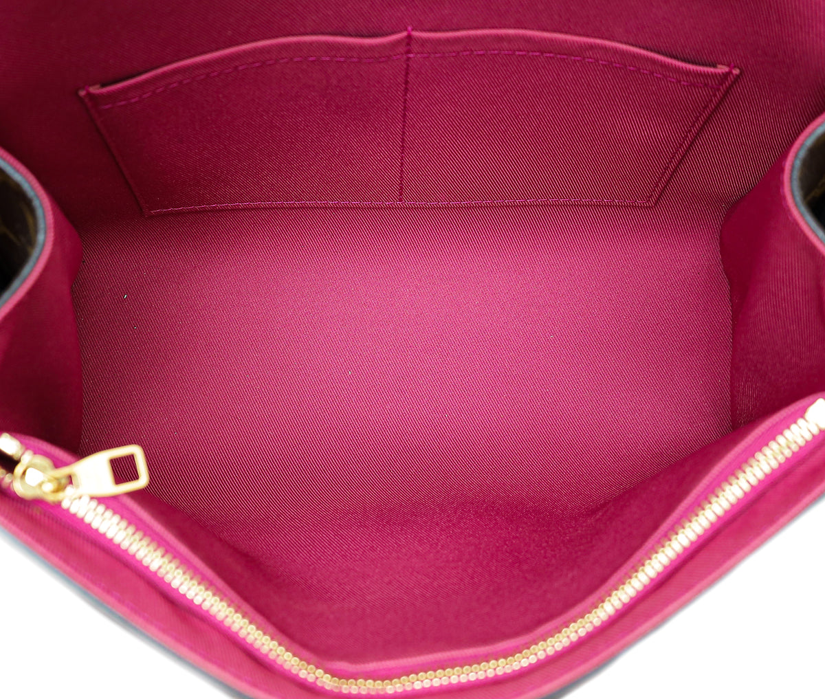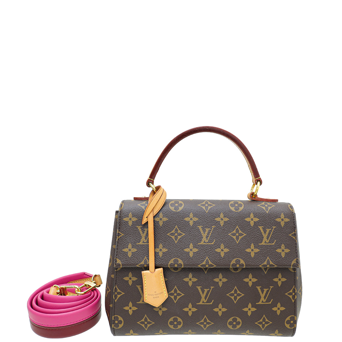 - Material: Monogram Coated Canvas with Fuchsia/Burgundy Leather Trim and Natural Cowhide Leather