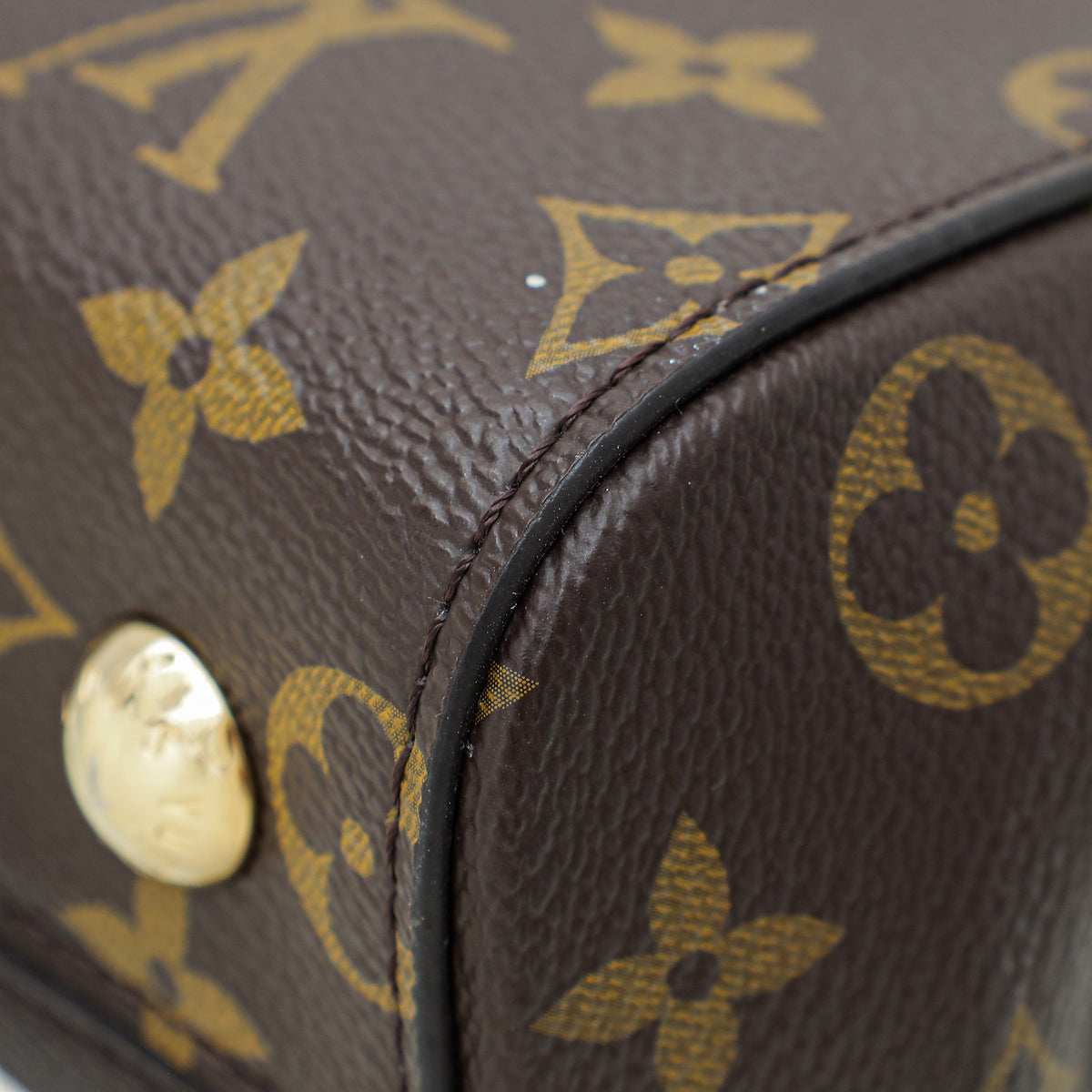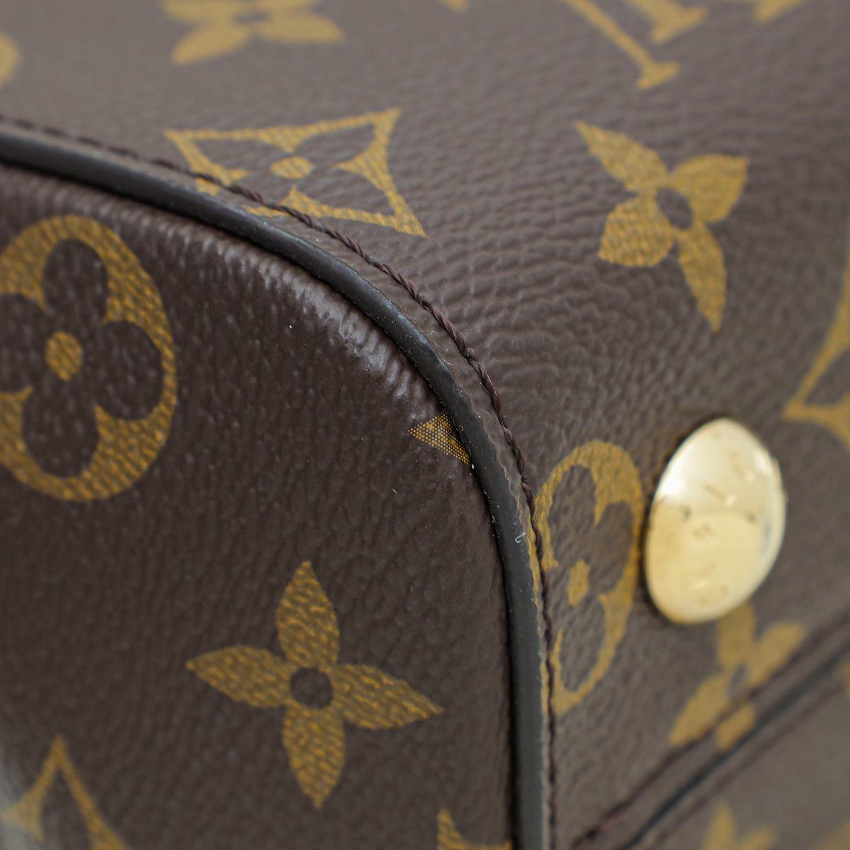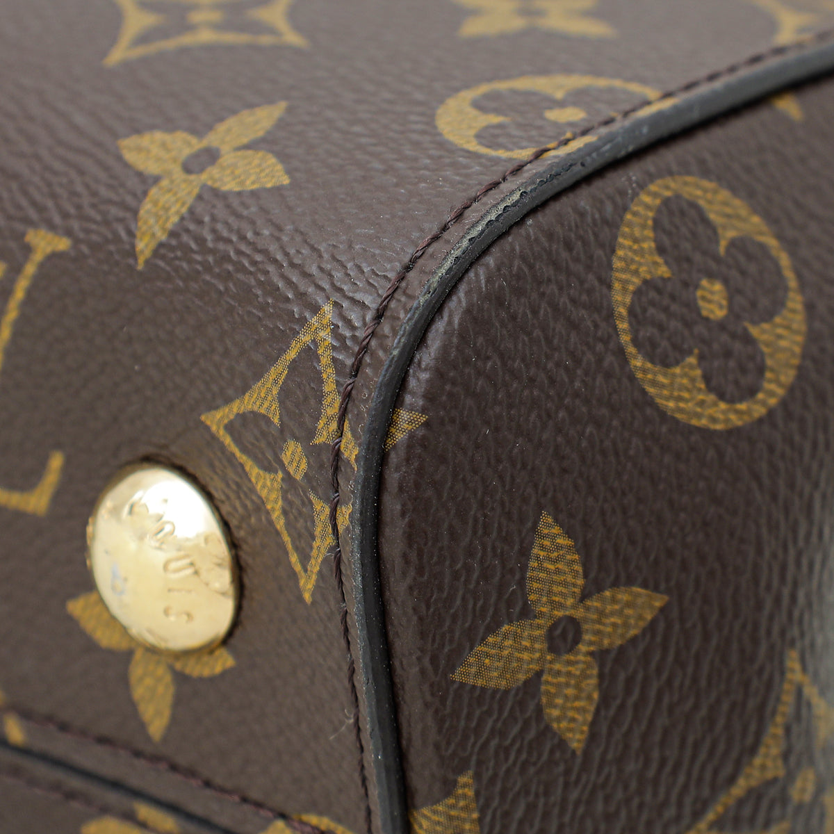 - Material: Monogram Coated Canvas with Fuchsia/Burgundy Leather Trim and Natural Cowhide Leather