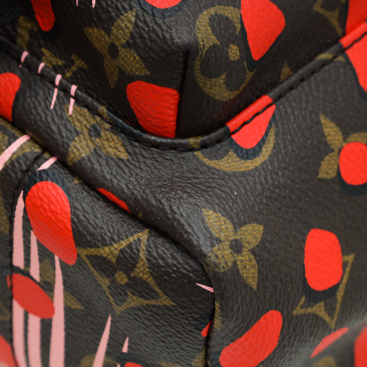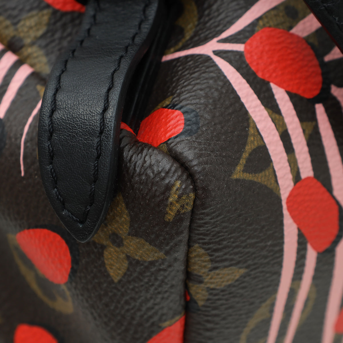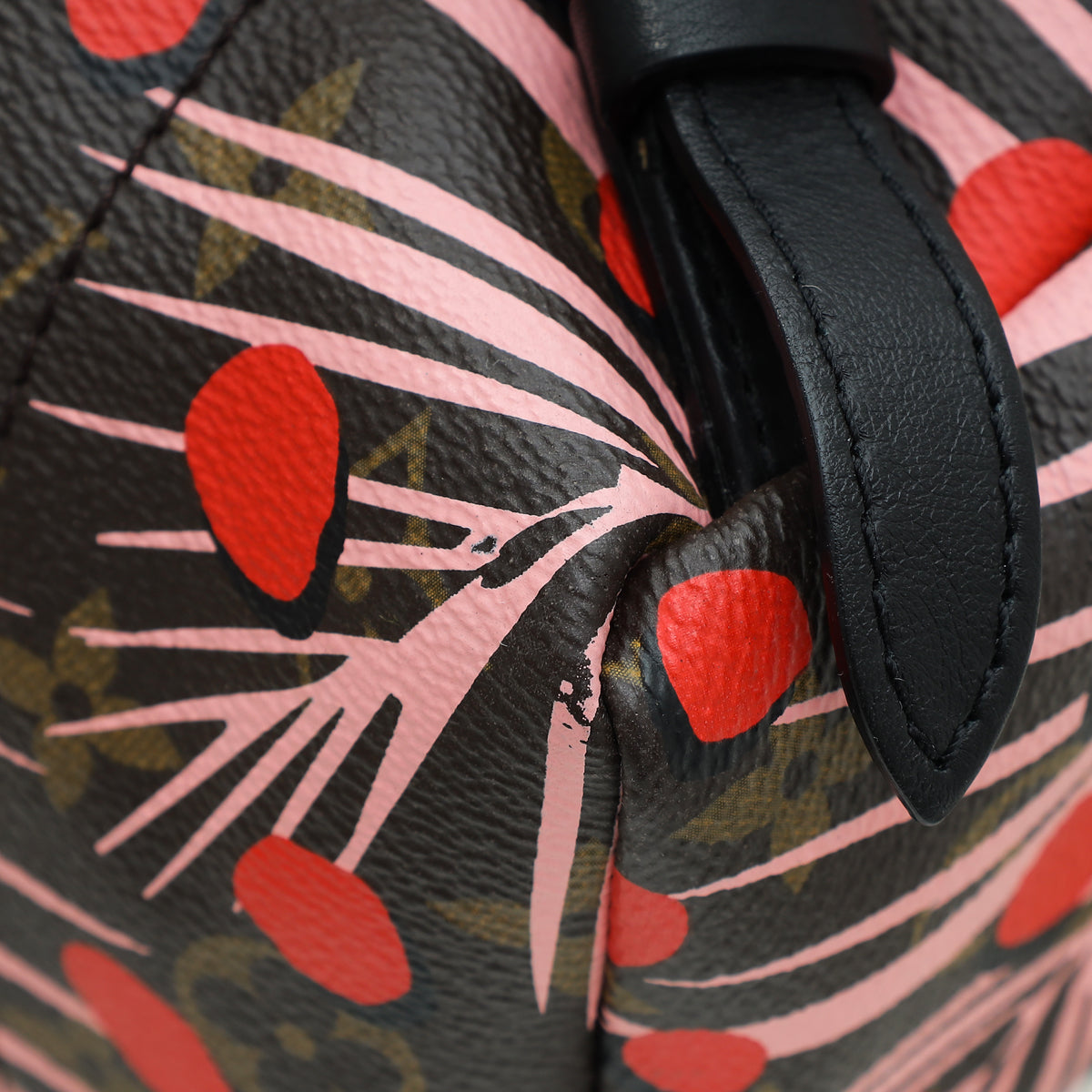Material: Monogram Canvas with Sugar Pink/Poppy Jungle Dots and Black Leather Trim