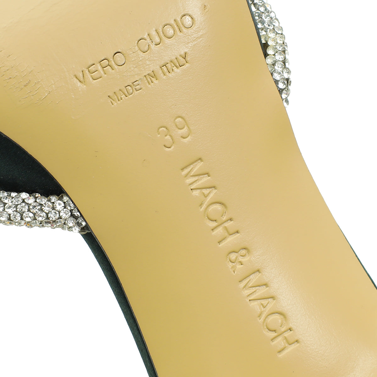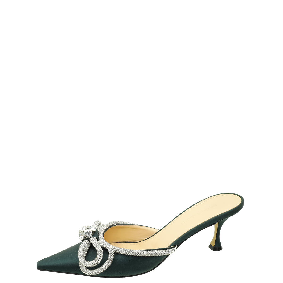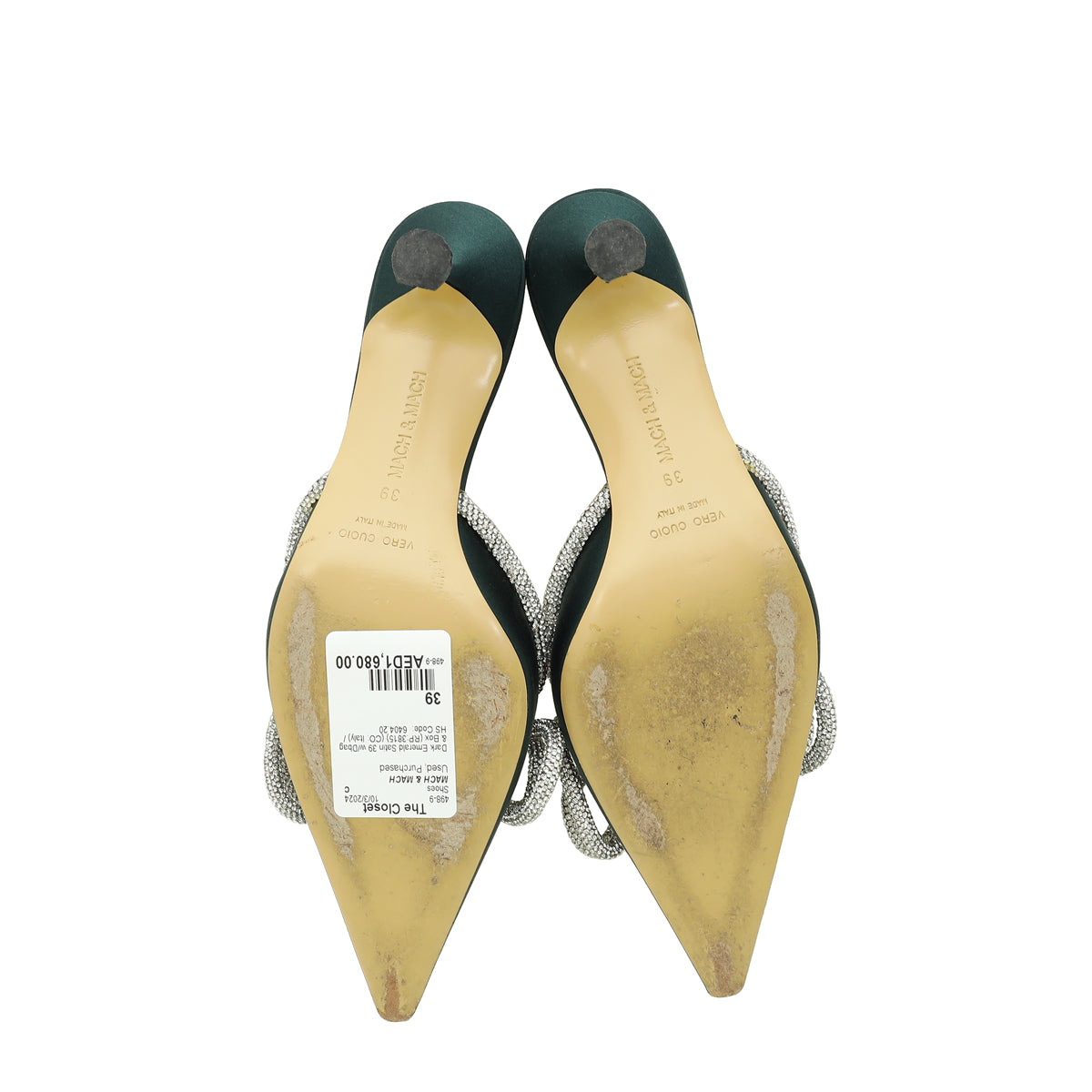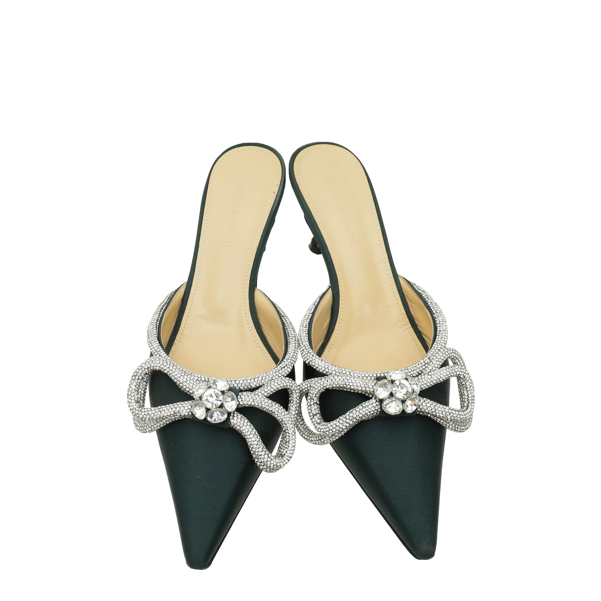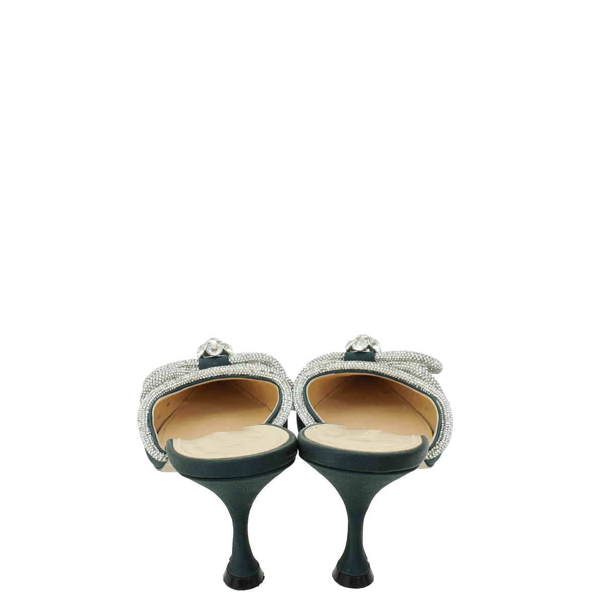 Mach & Mach Dark Emerald Satin Crystal Double Bow Mules 39