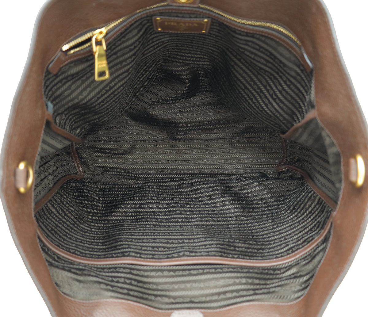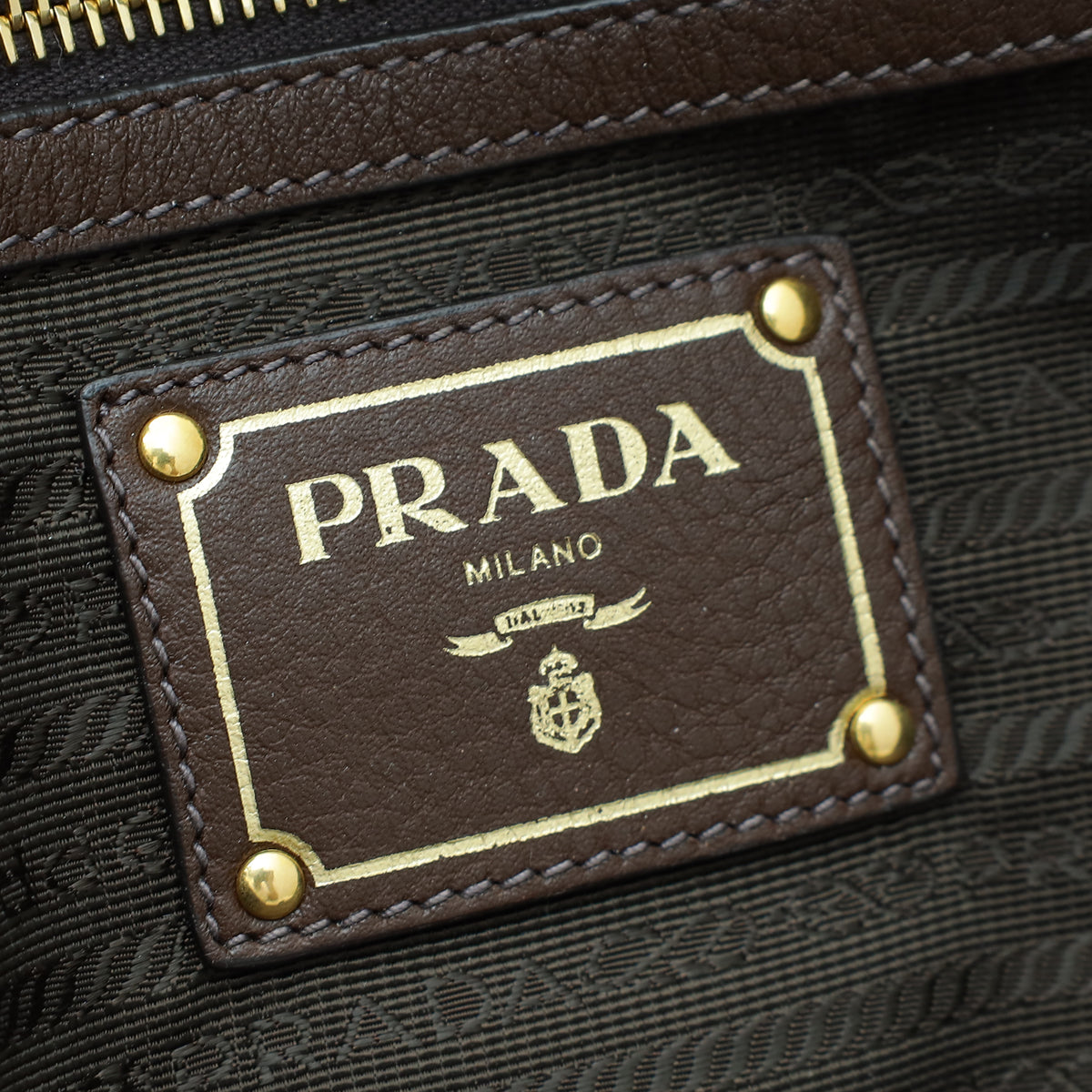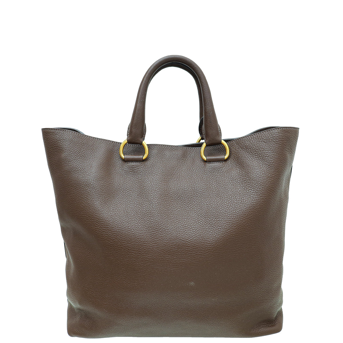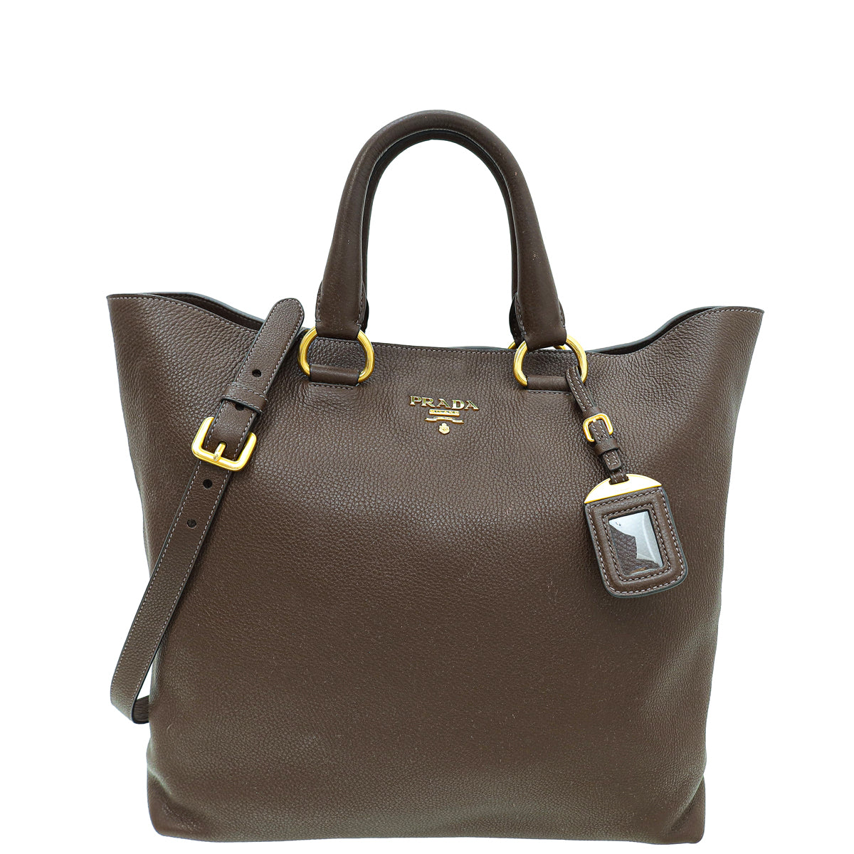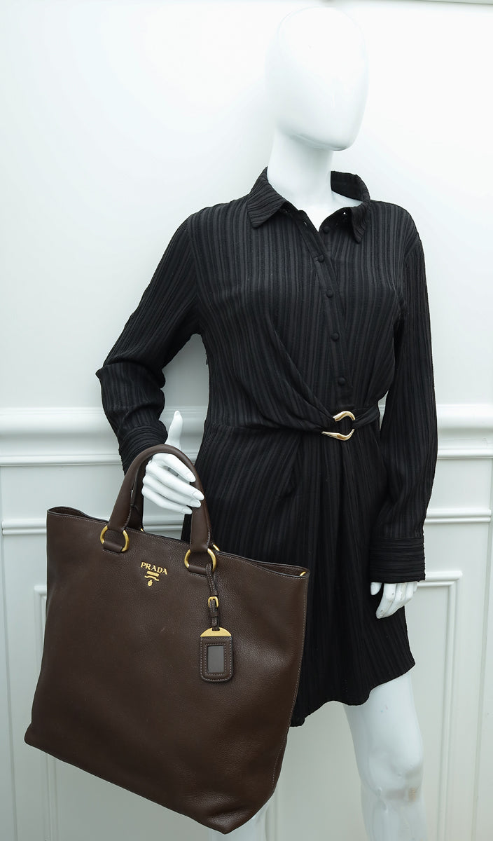 Prada Brown Vitello Daino Vertical Convertible Tote Bag