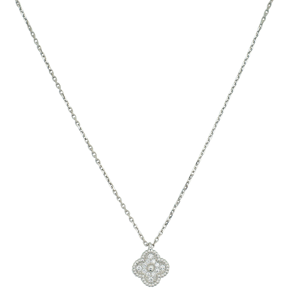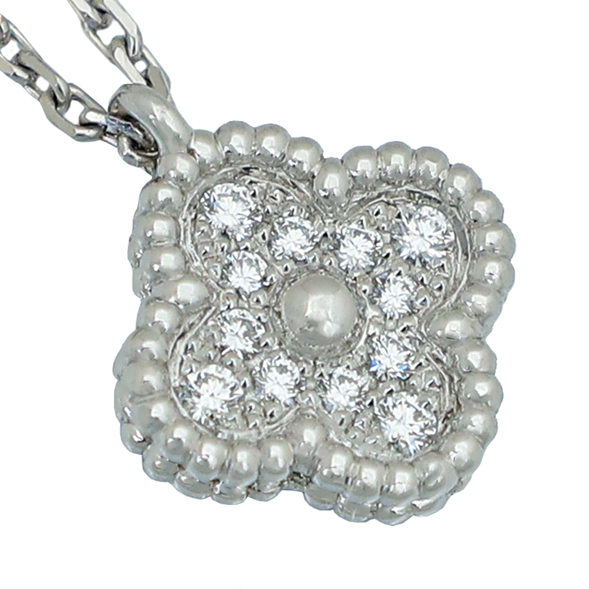 Van Cleef & Arpels 18K White Gold Diamond Sweet Alhambra Pendant Necklace