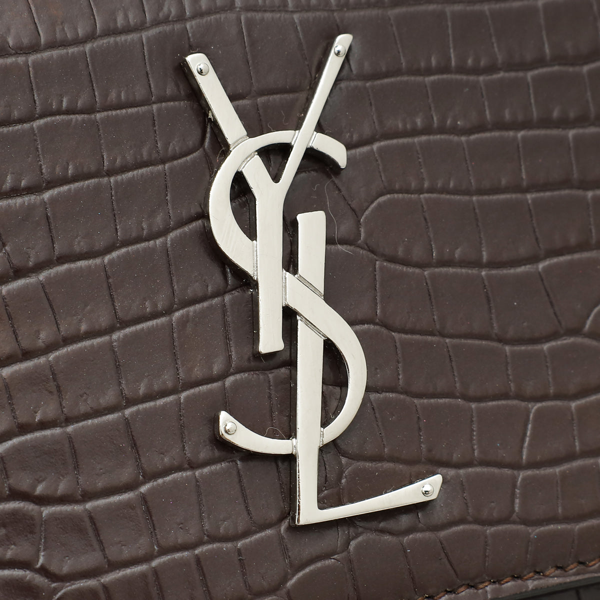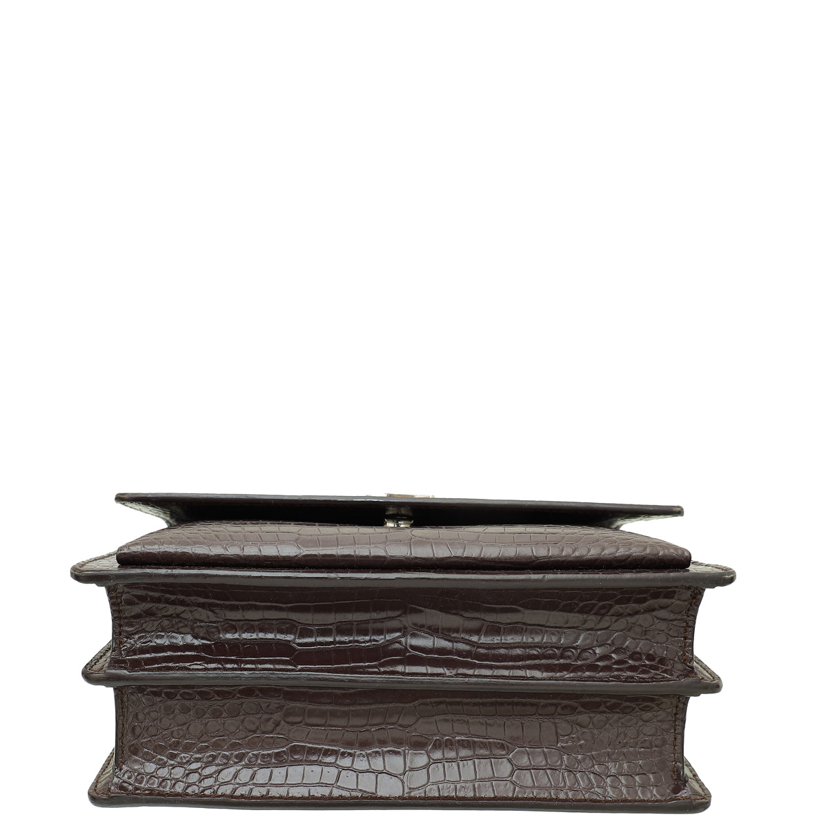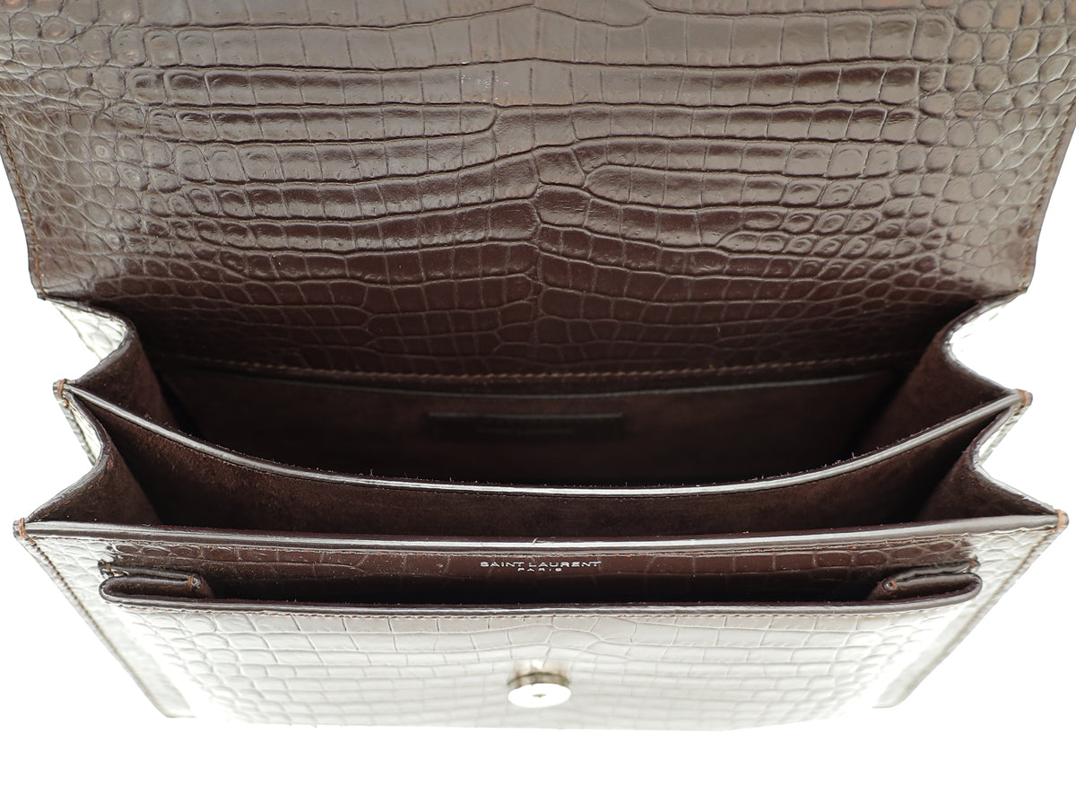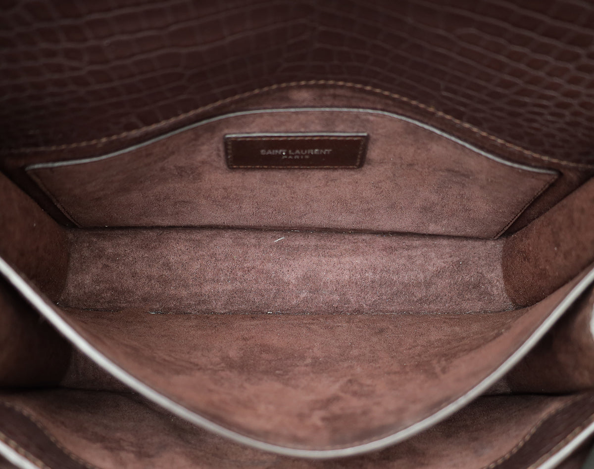YSL Chocolate Sunset Croco Embossed Medium Bag