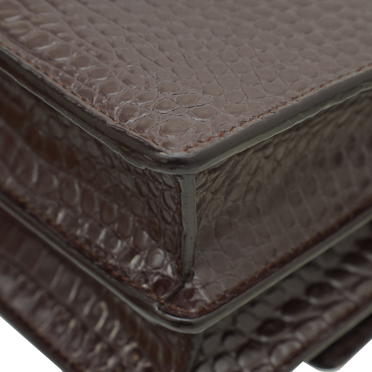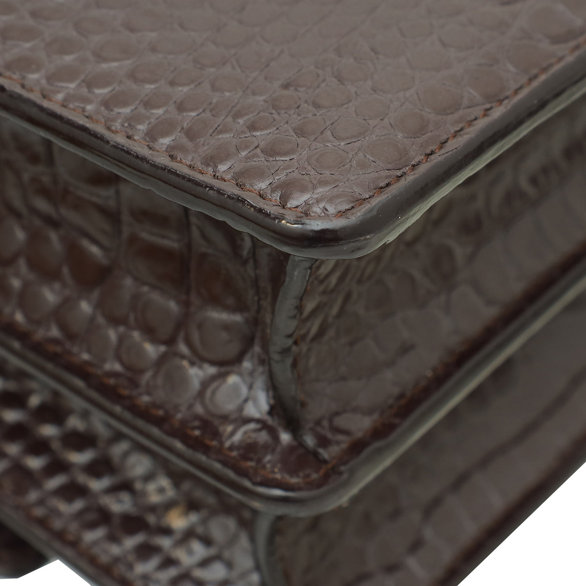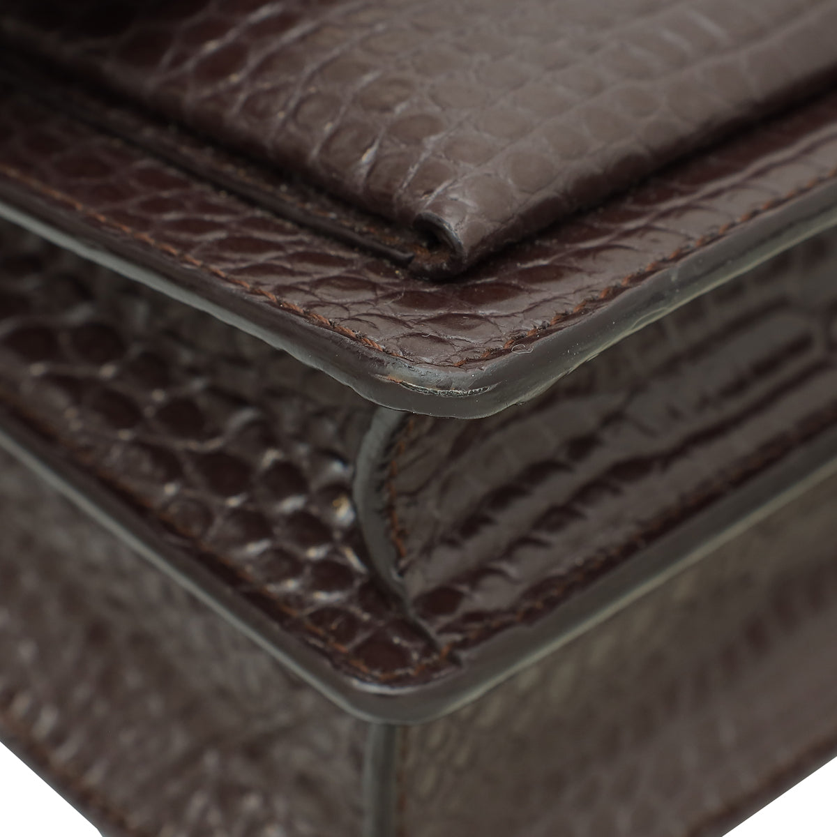 YSL Chocolate Sunset Croco Embossed Medium Bag