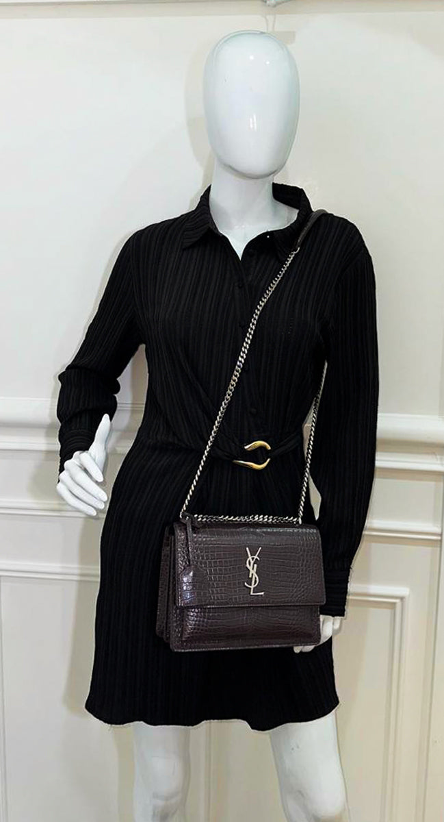 YSL Chocolate Sunset Croco Embossed Medium Bag-YSL-THE CLOSET
