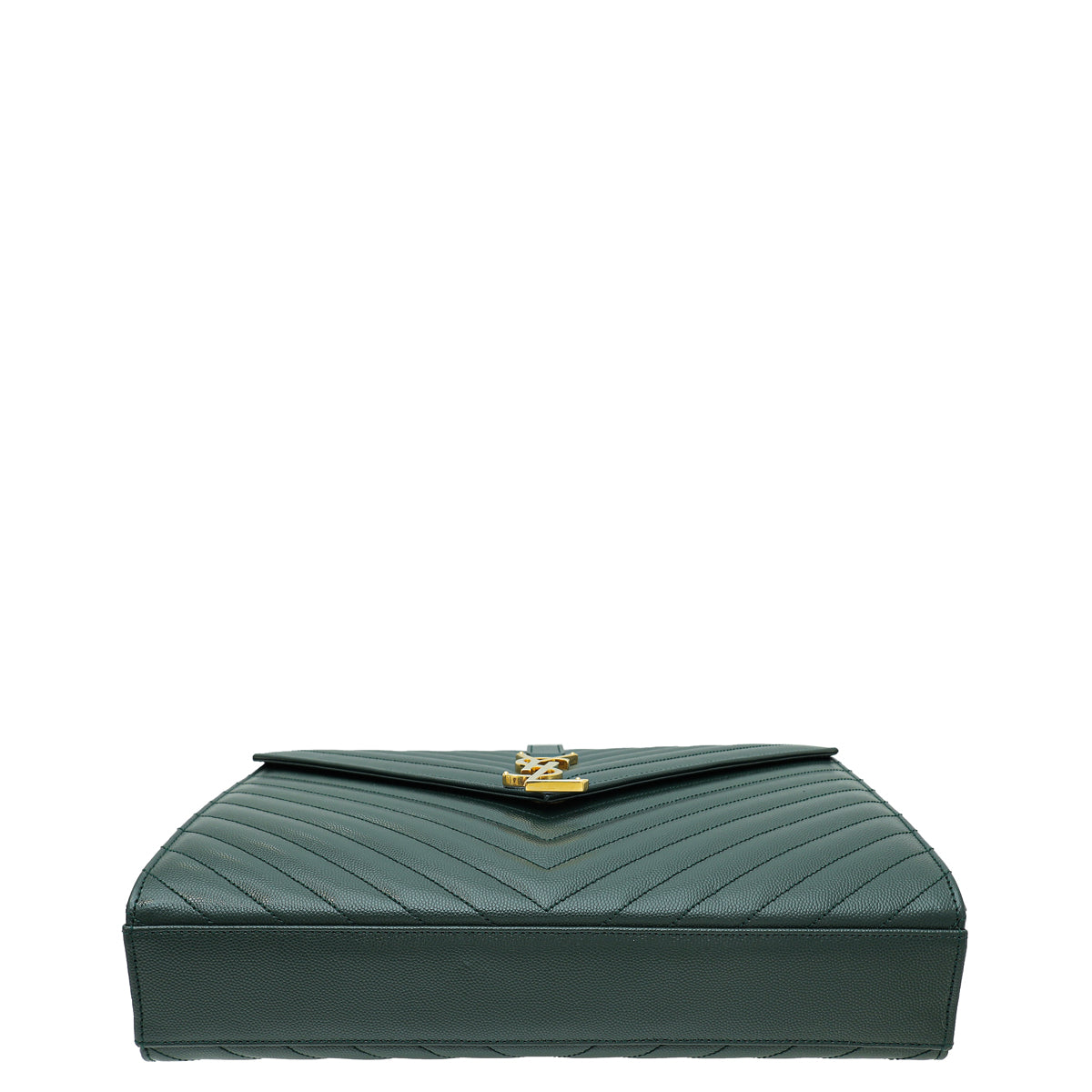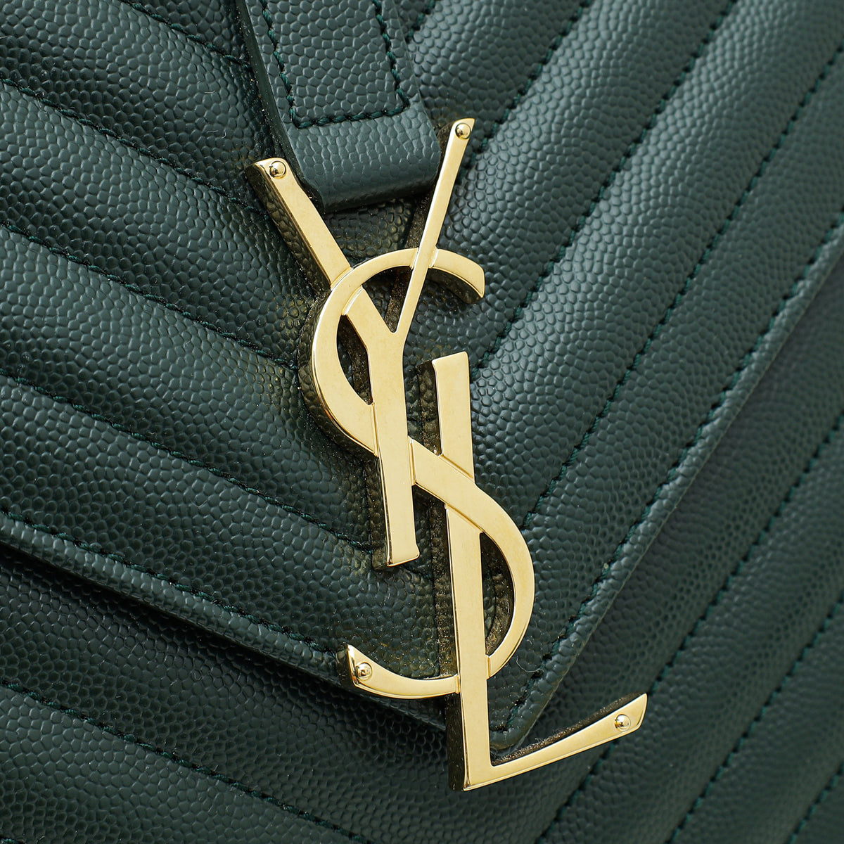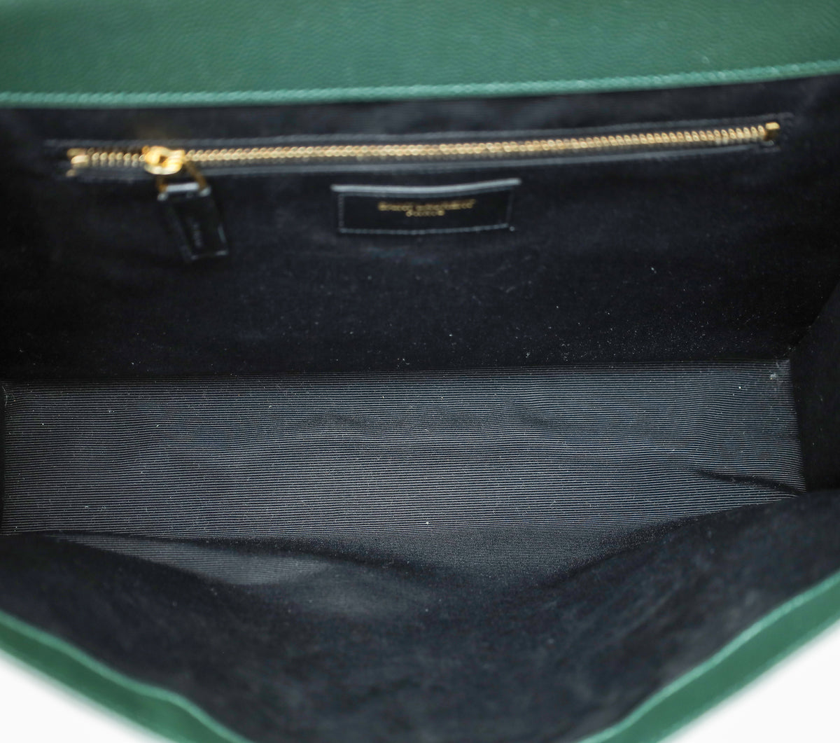 YSL Forest Green Monogram Satchel Flap Large Bag
