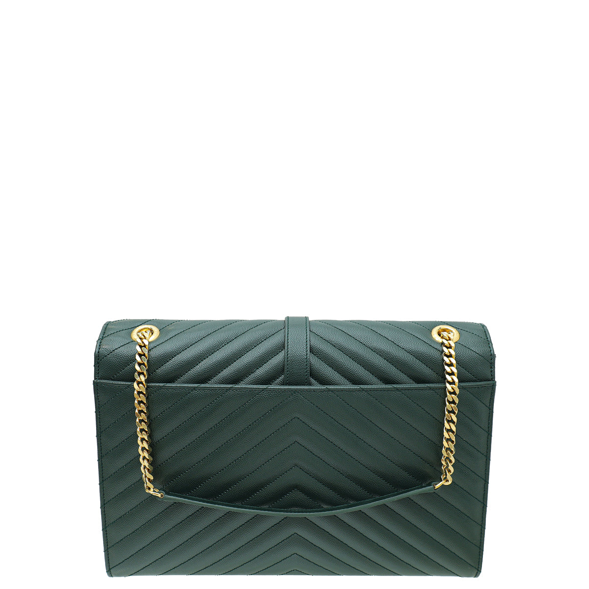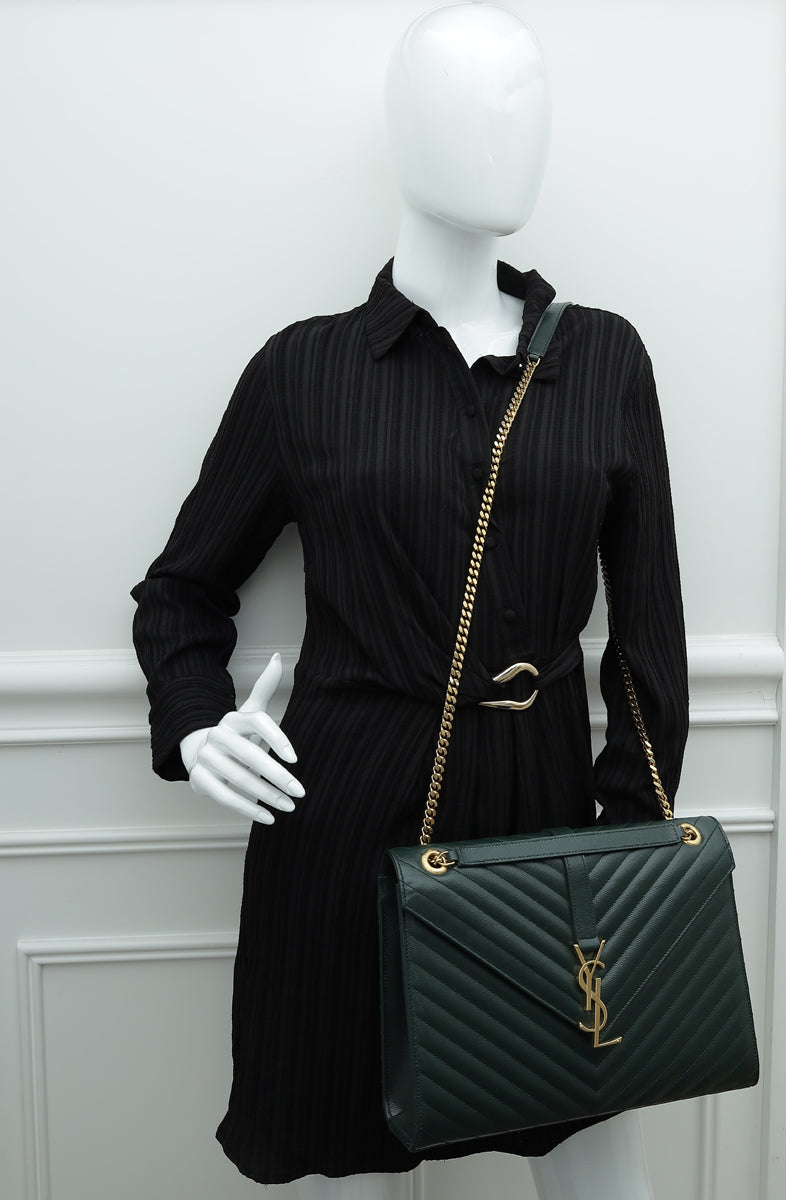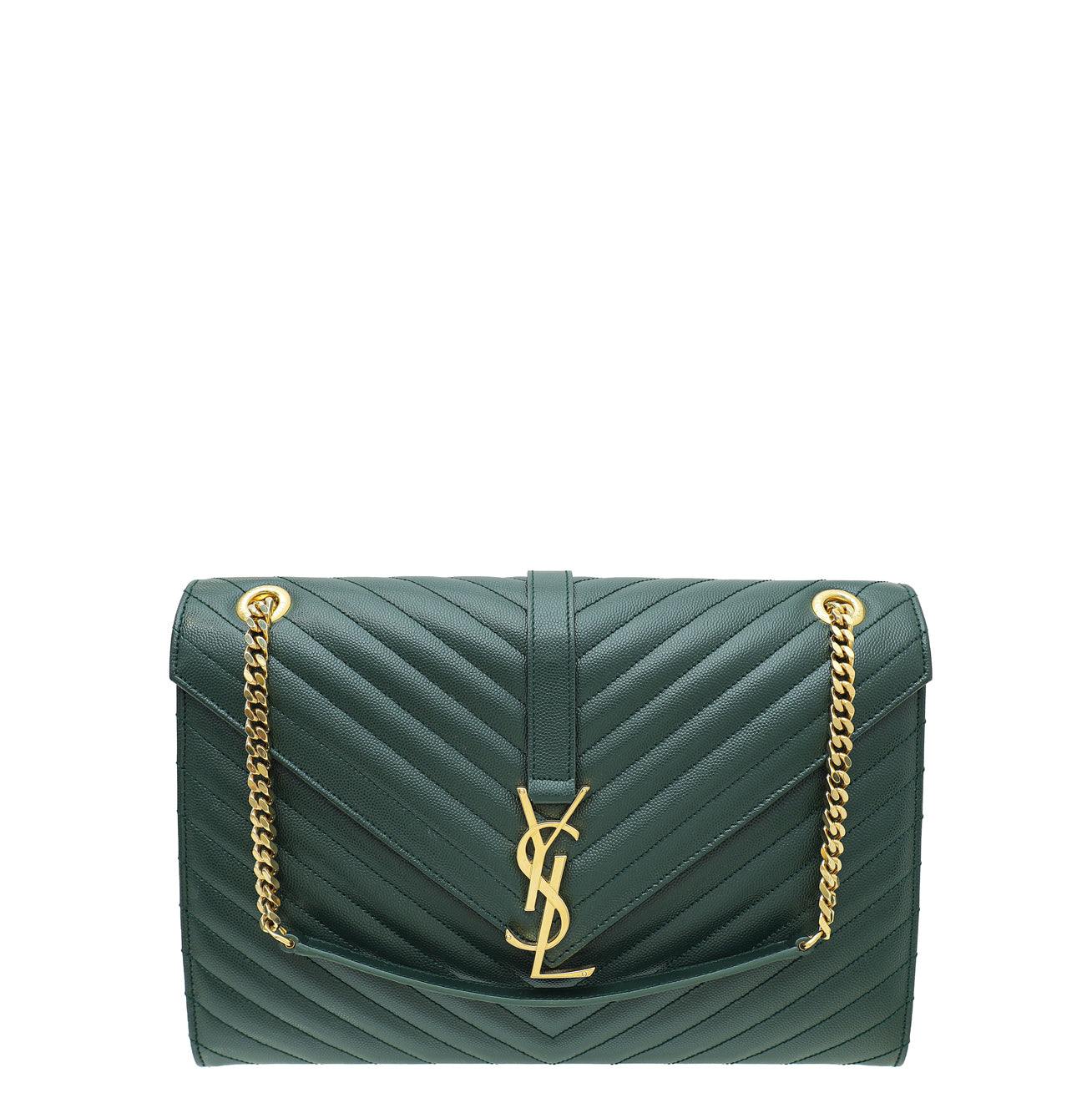 YSL Forest Green Monogram Satchel Flap Large Bag