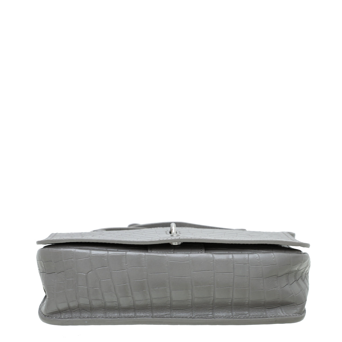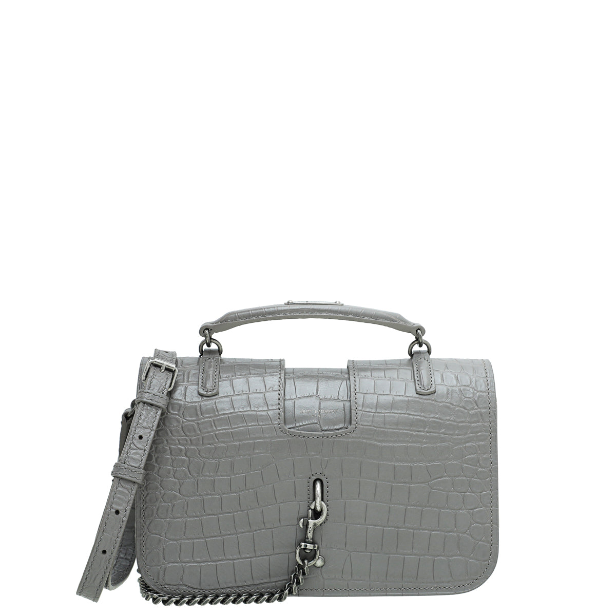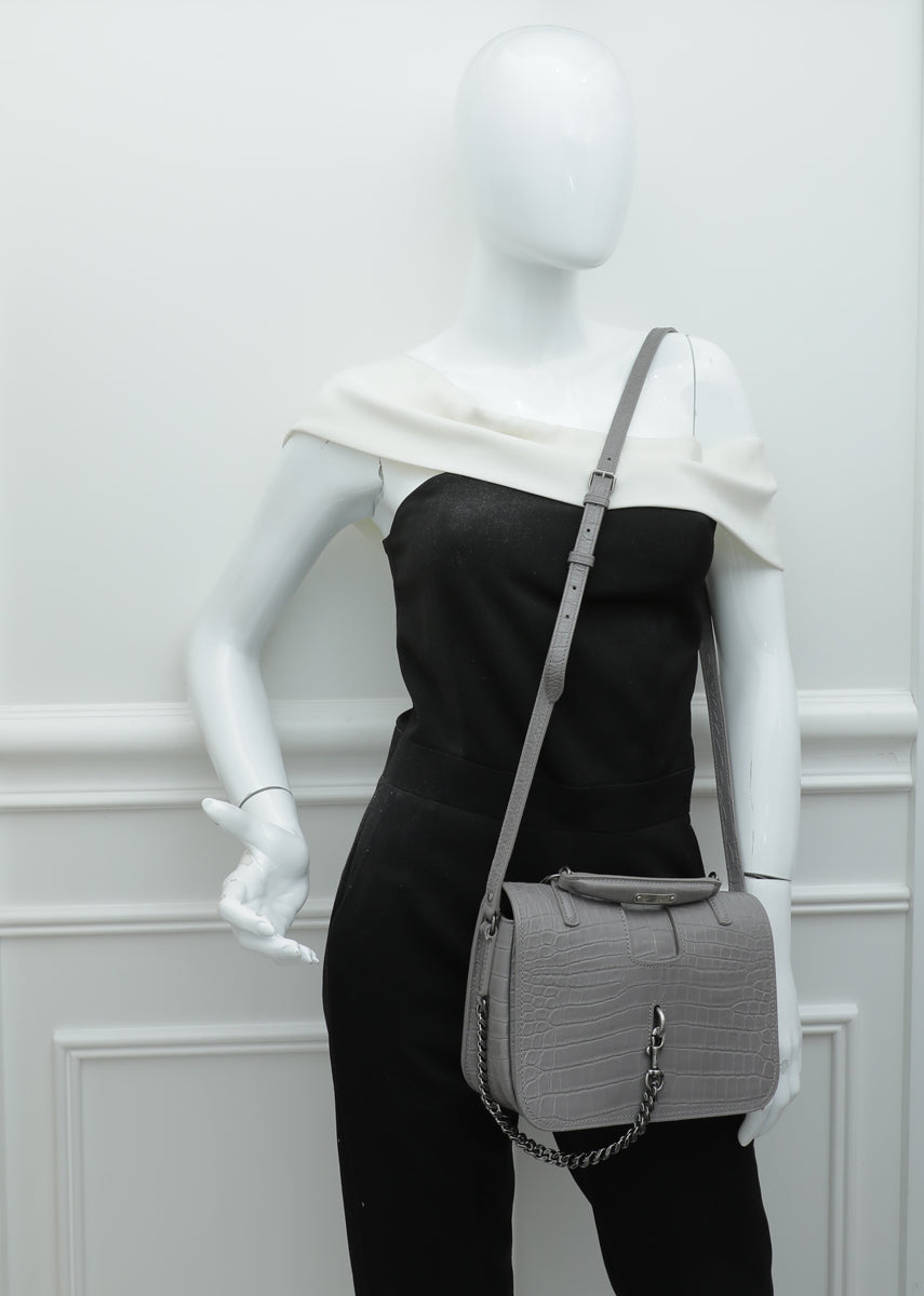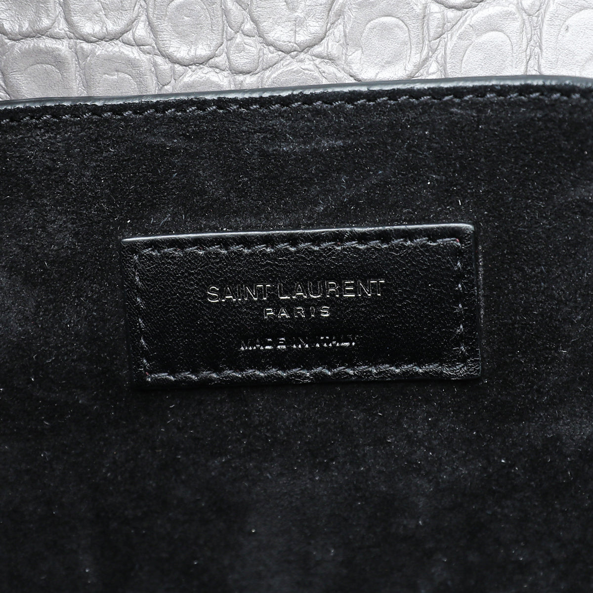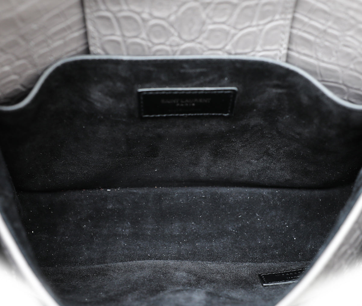 YSL Gray Croc Embossed Charlotte Medium Bag