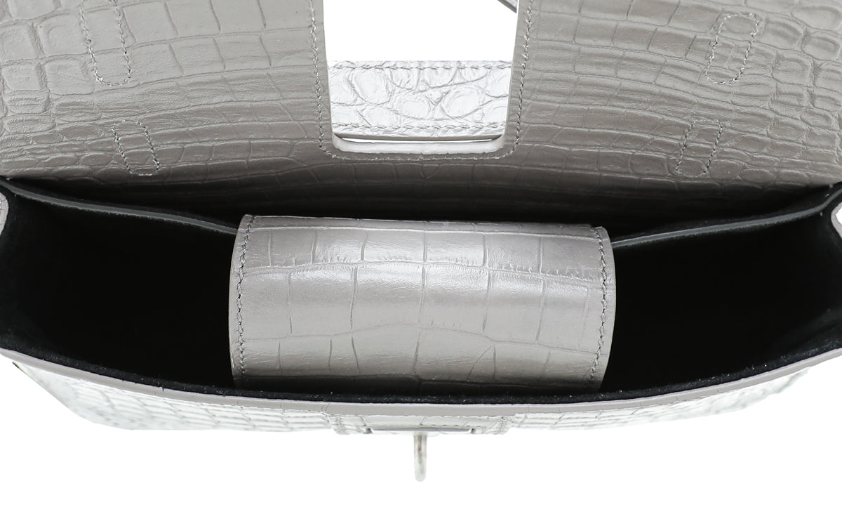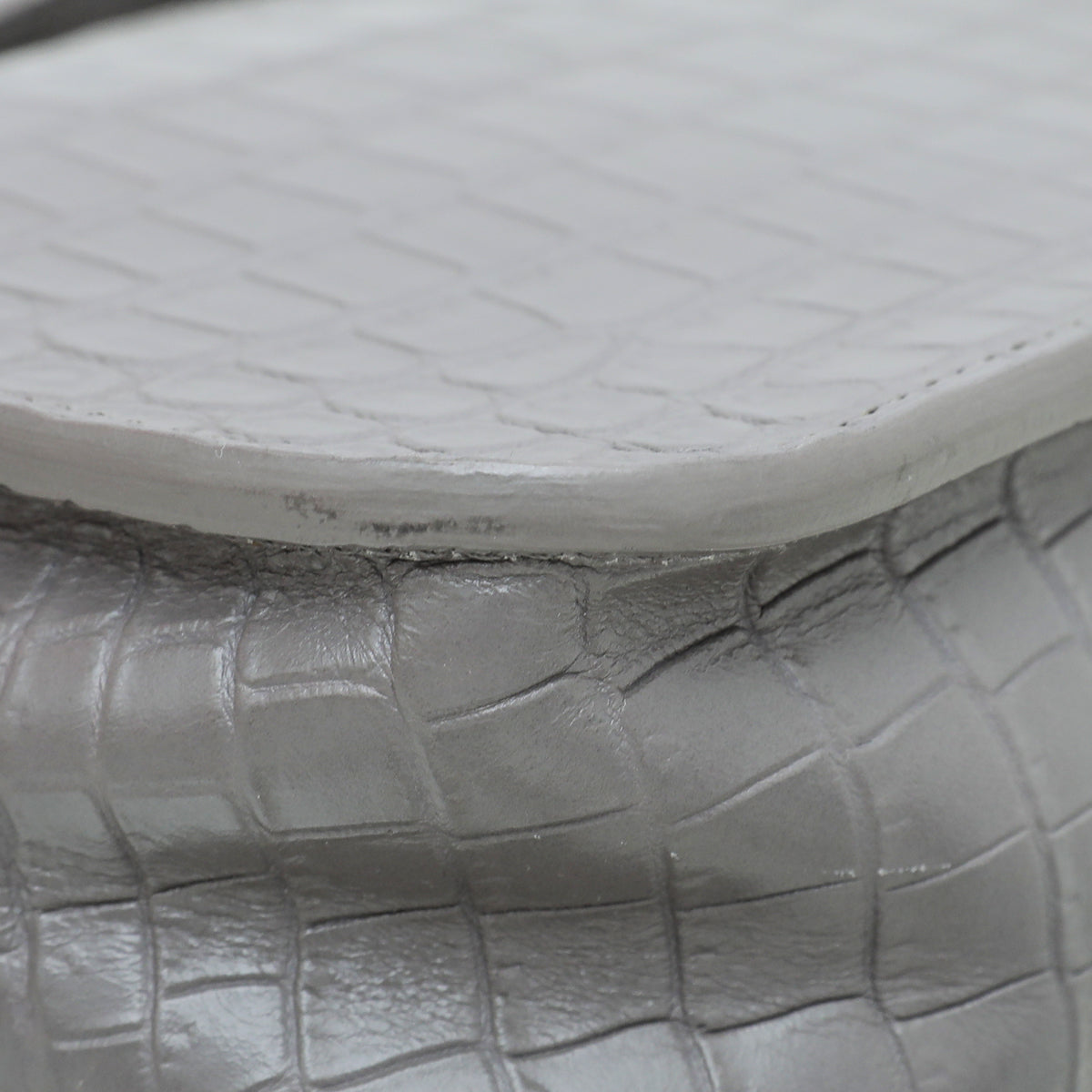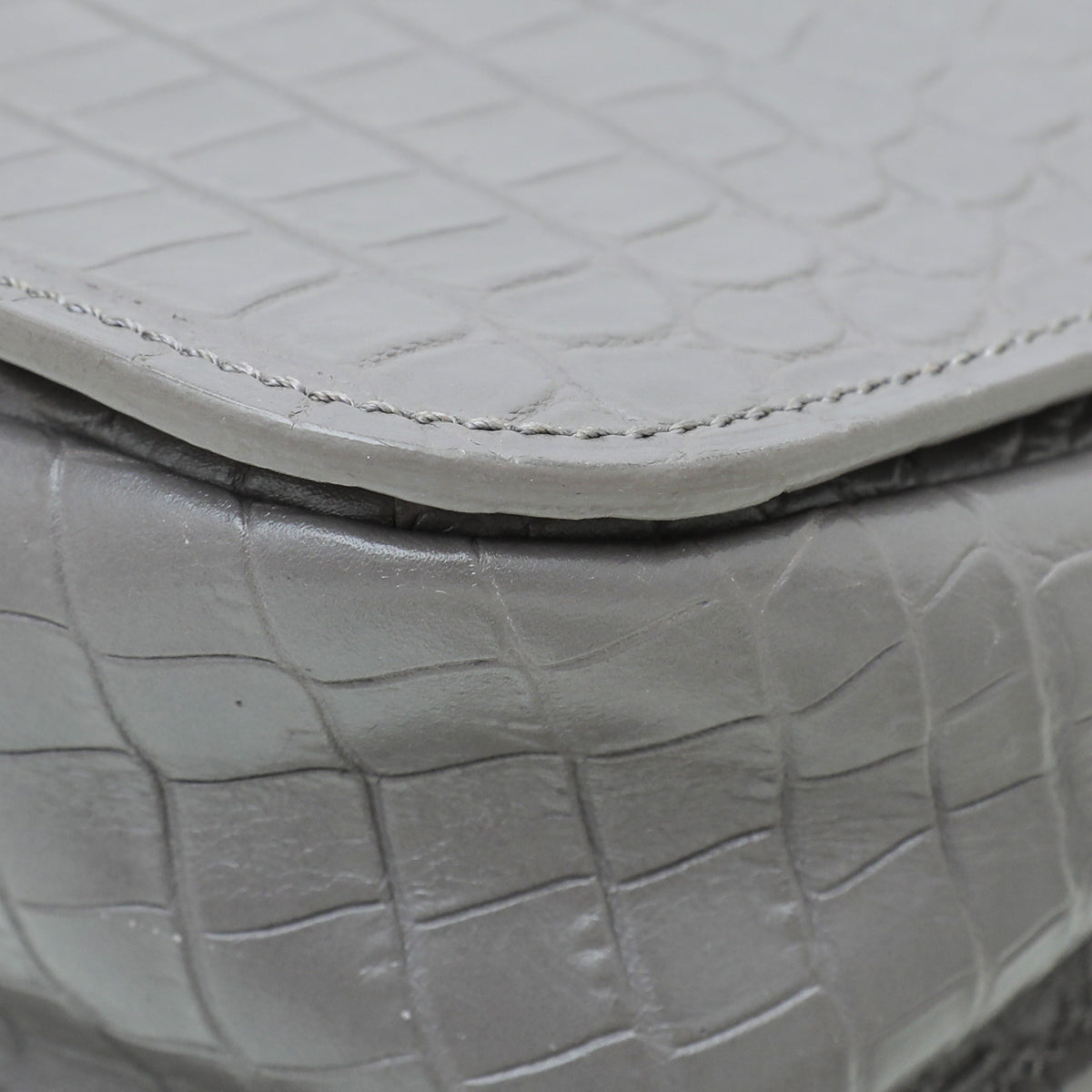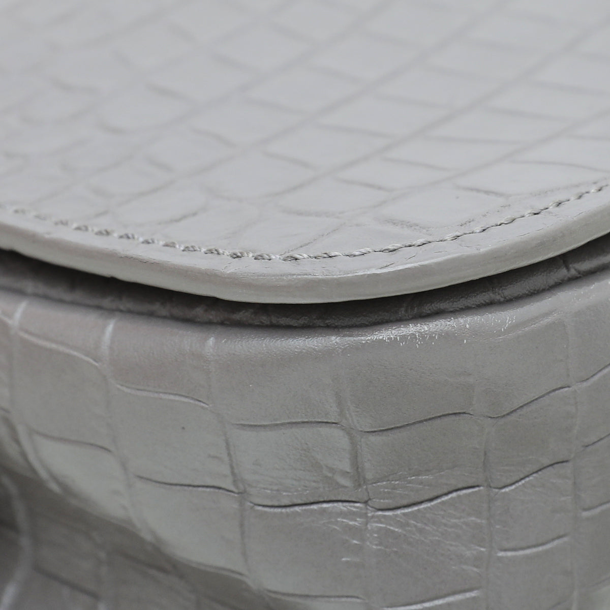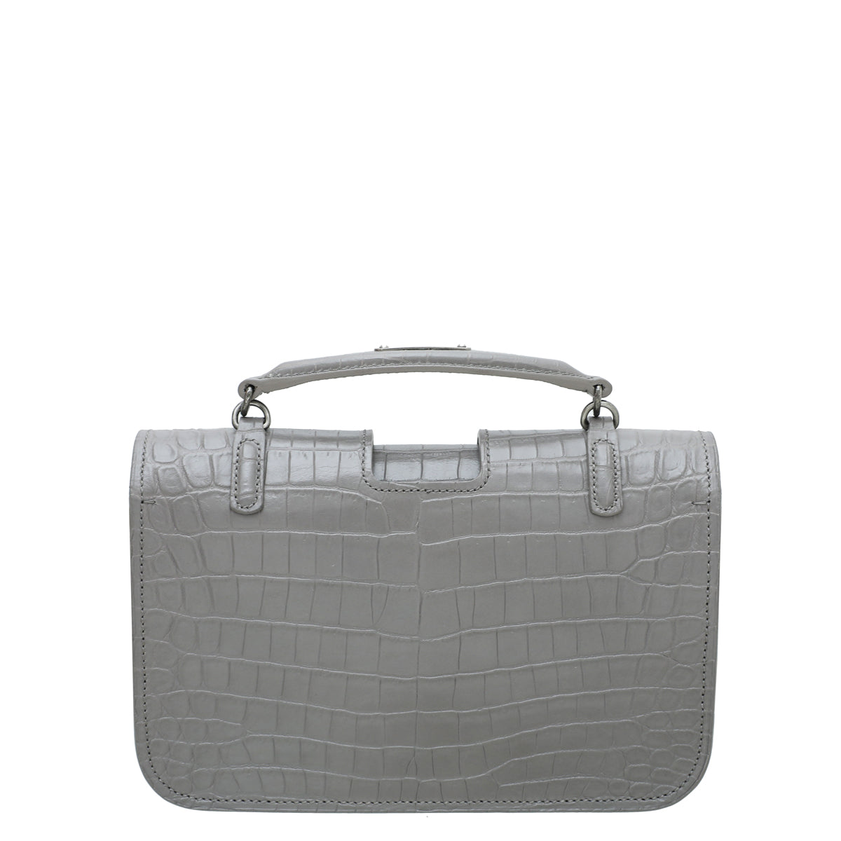 YSL Gray Croc Embossed Charlotte Medium Bag