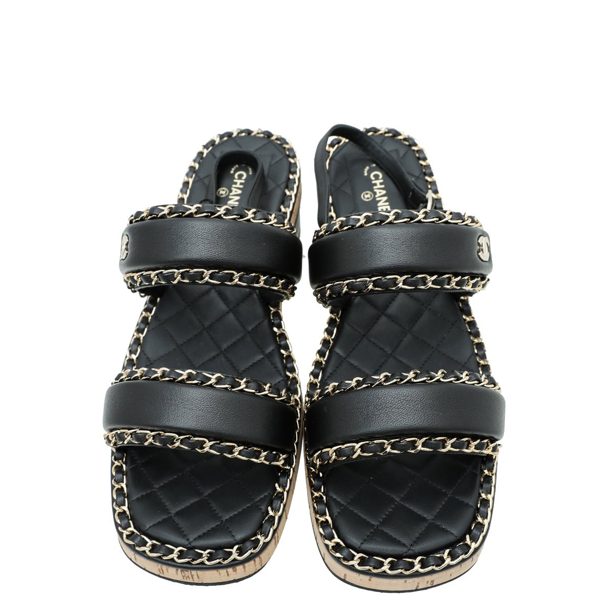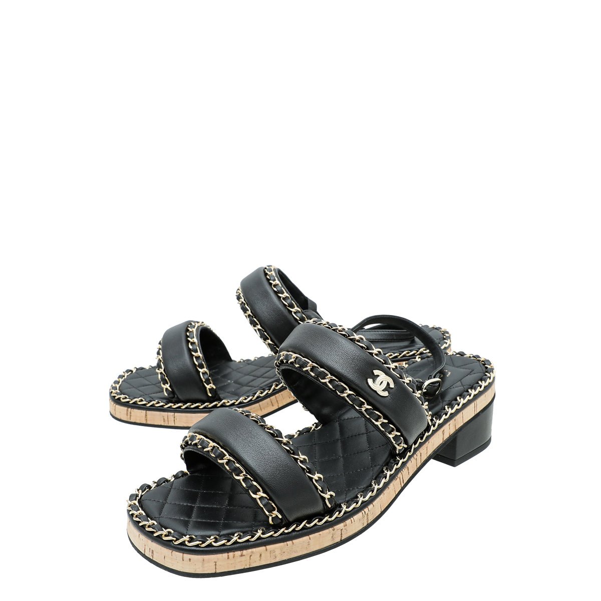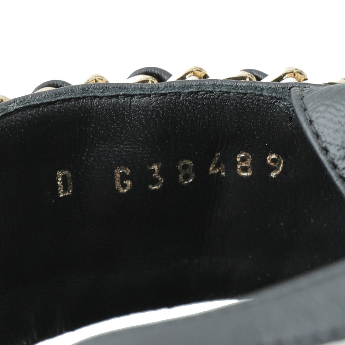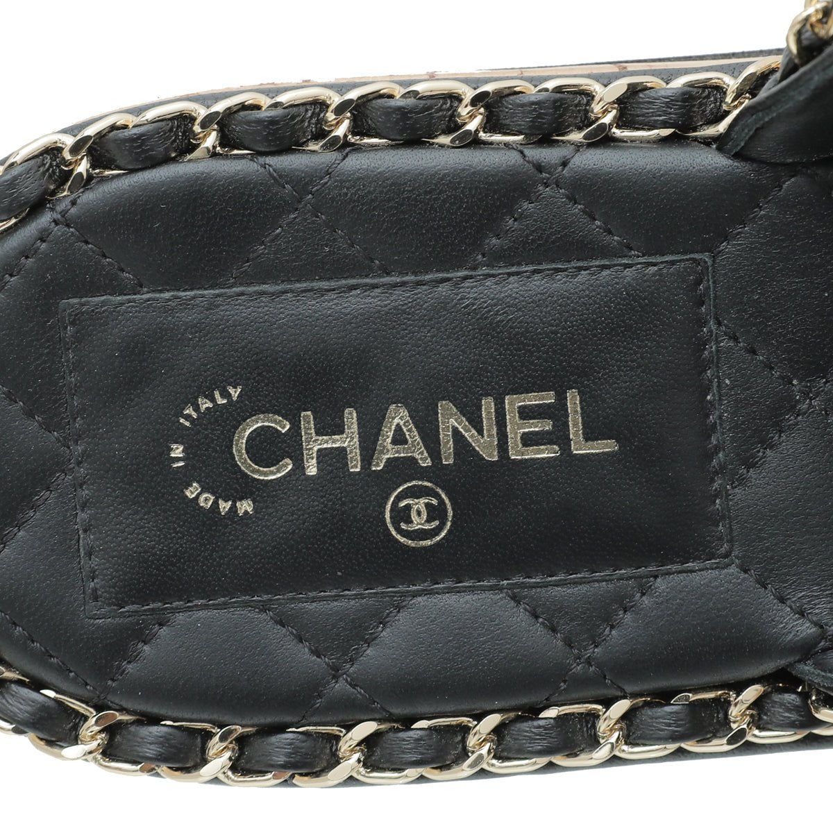 - Material: Black Leather with Interlocking Chain Detail with CC Logo