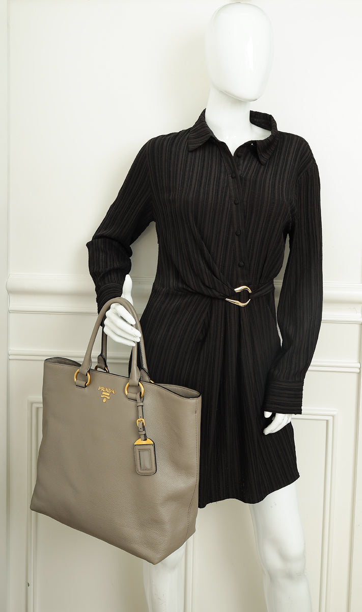 Prada Gray Vitello Phenix Tote Bag