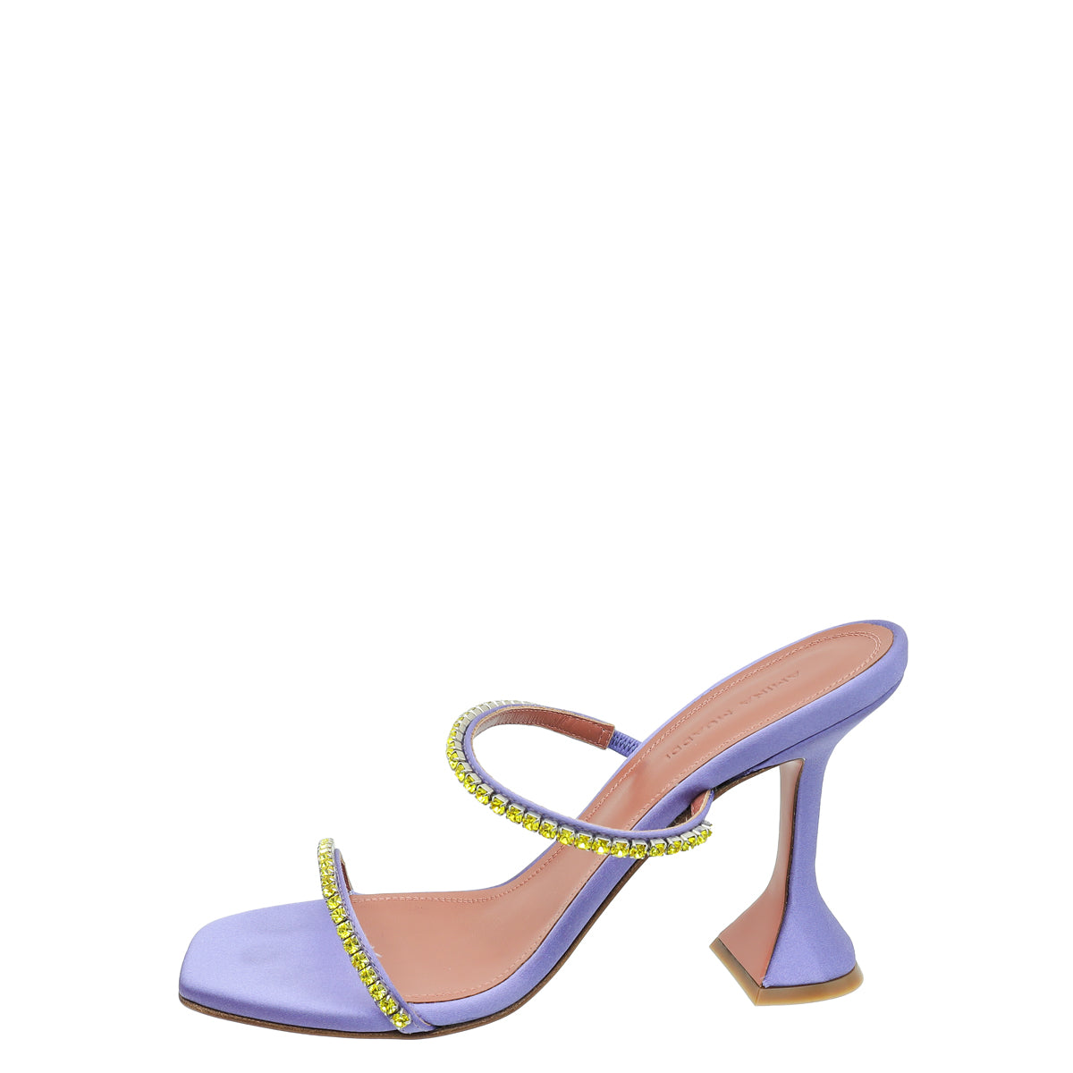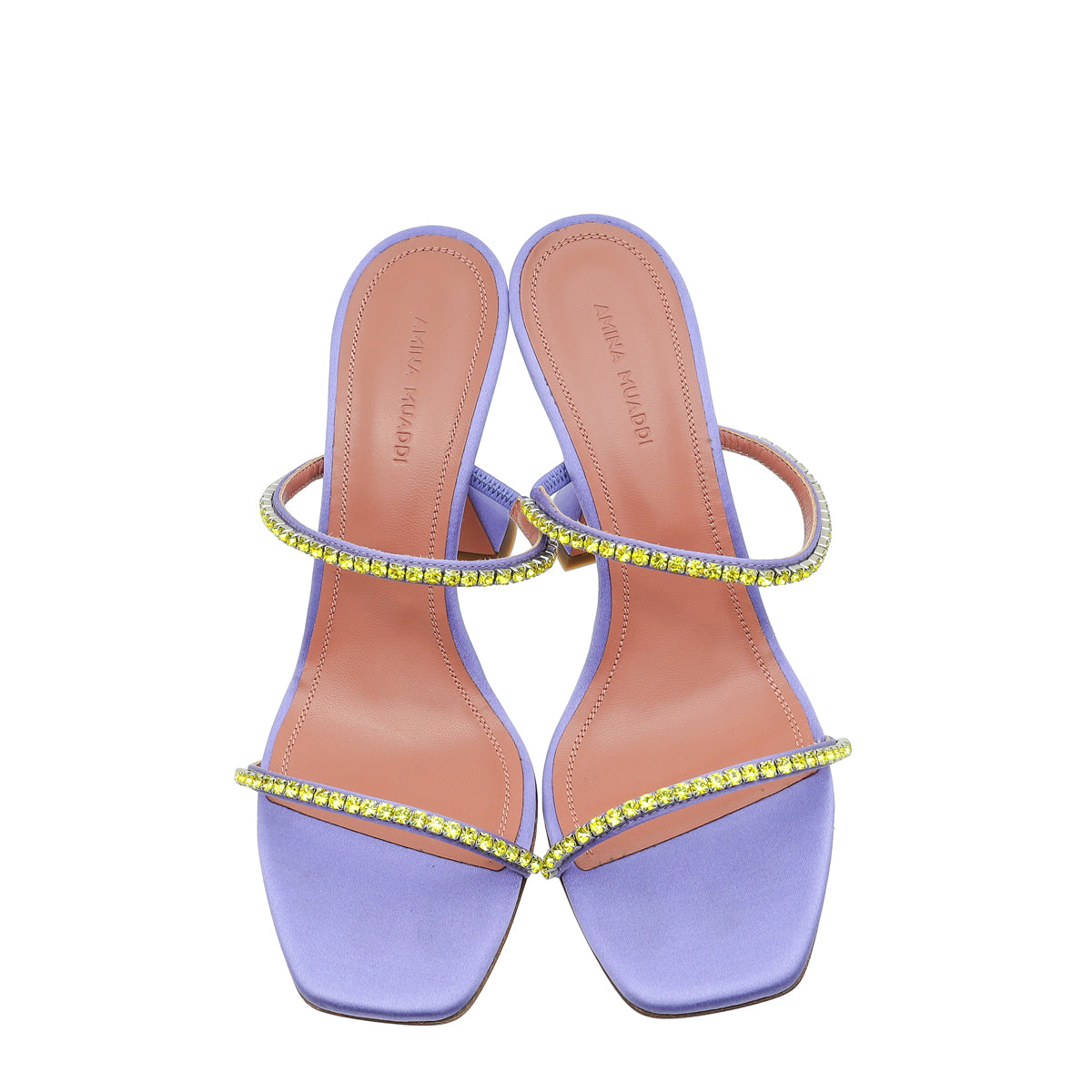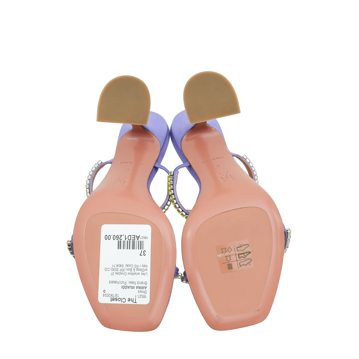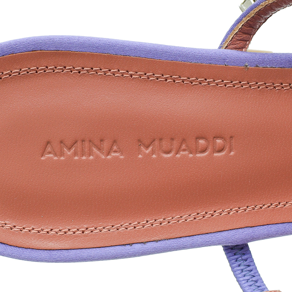 Amina Muaddi Lilac Satin Crystal Gilda Sandals 37