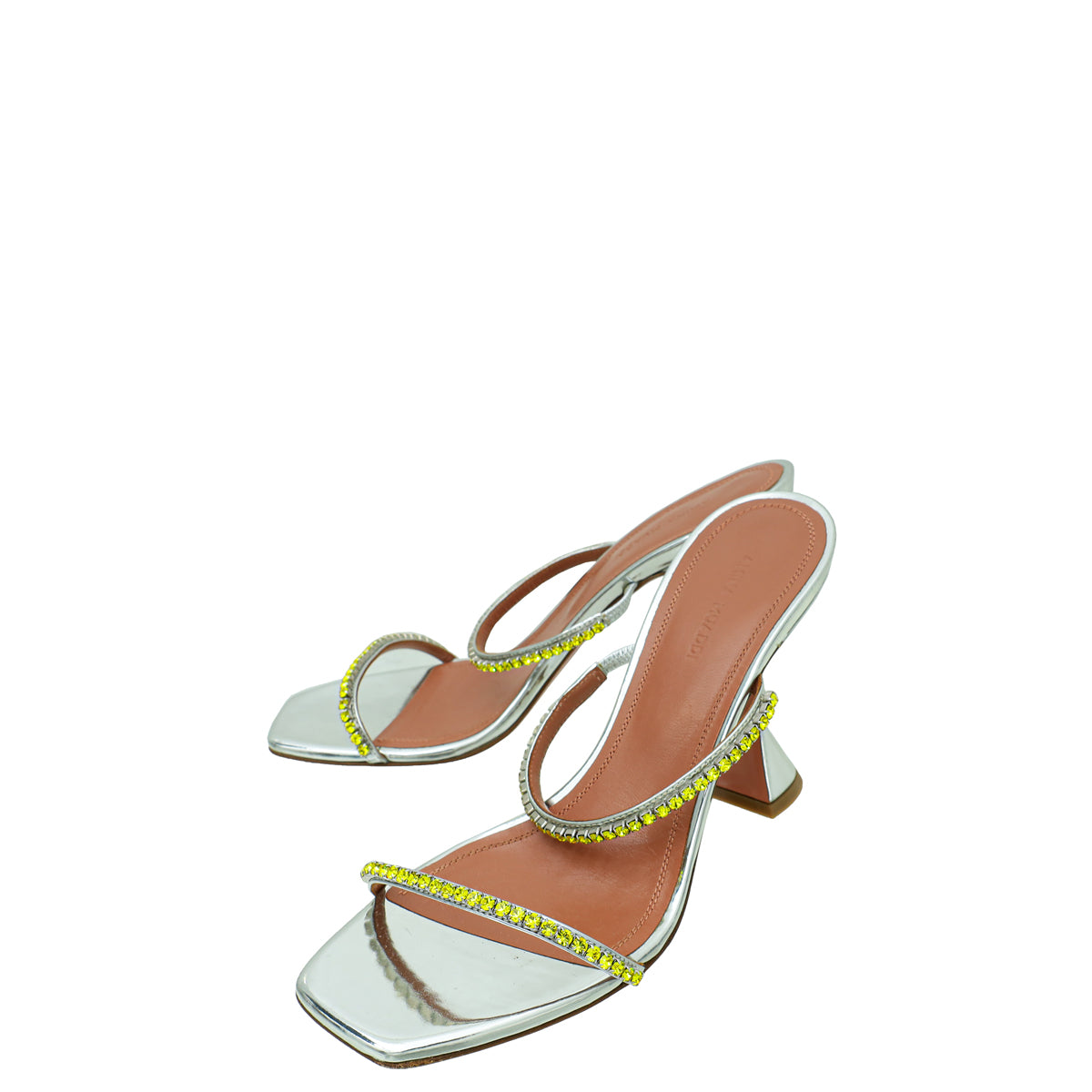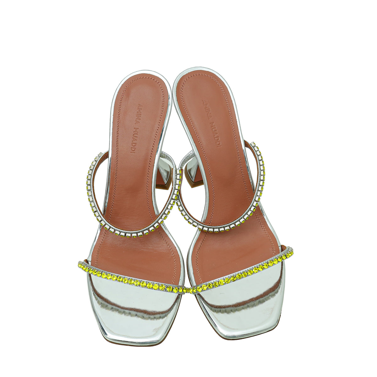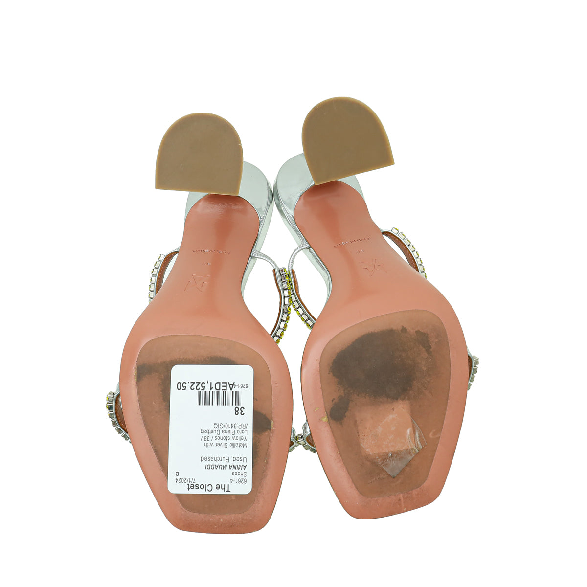 Amina Muaddi Metallic Silver Gilda Sandals 38